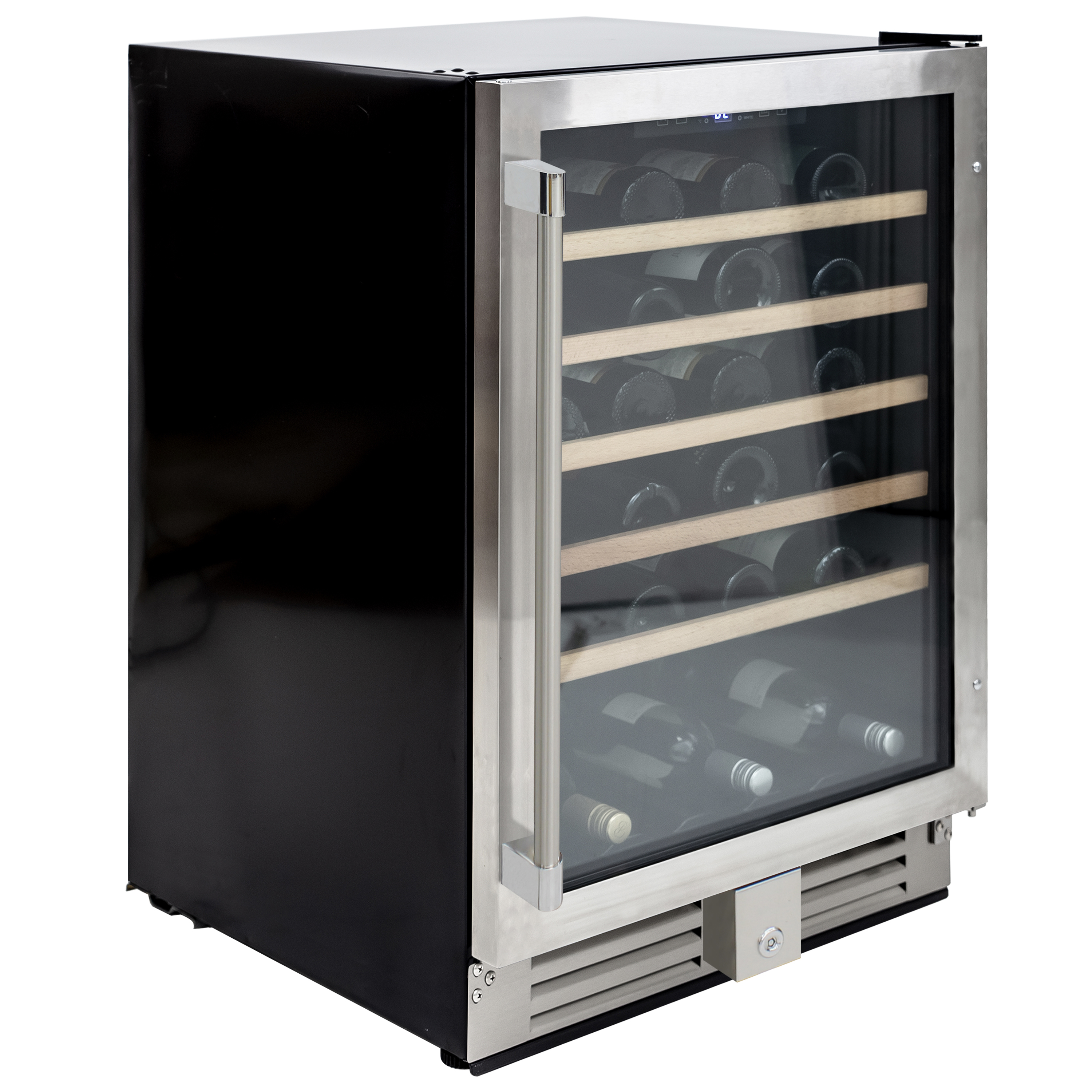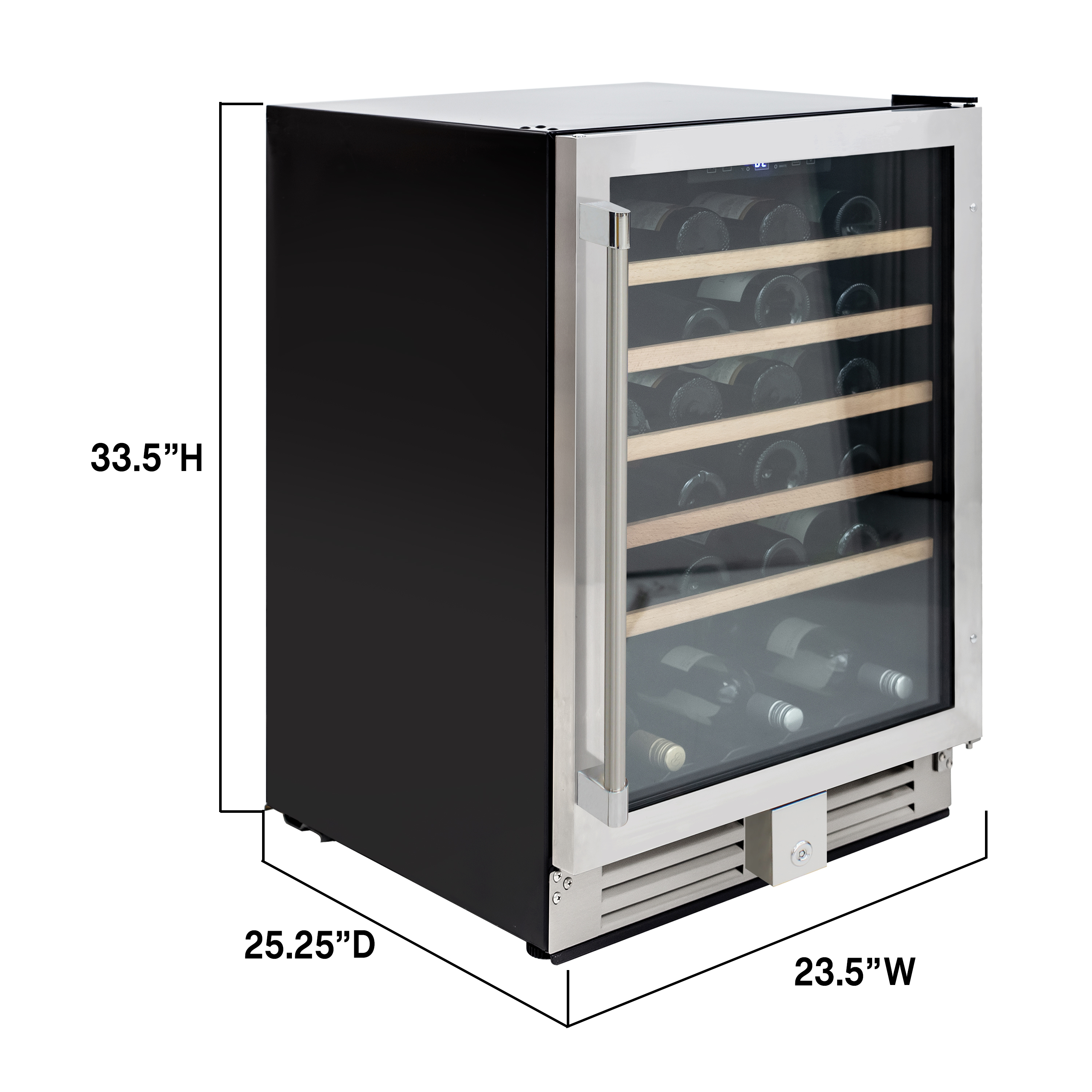 | Long Description | Keep wine perfectly chilled in the 51-bottle capacity wine chiller from Vinotemp. This wine fridge is ideal for the living room, office, man cave, she-shed, bar, basement or anywhere you want to store your wine collection beautifully. Easily view your wine choices through the glass door. This compact wine cooler features automatic defrost, so your wine stays perfectly chilled. Select the right settings at the touch of a button and monitor the temperature (C°/F°) with the temperature monitor display. Covered by the Vinotemp 2 Year Limited Warranty. |