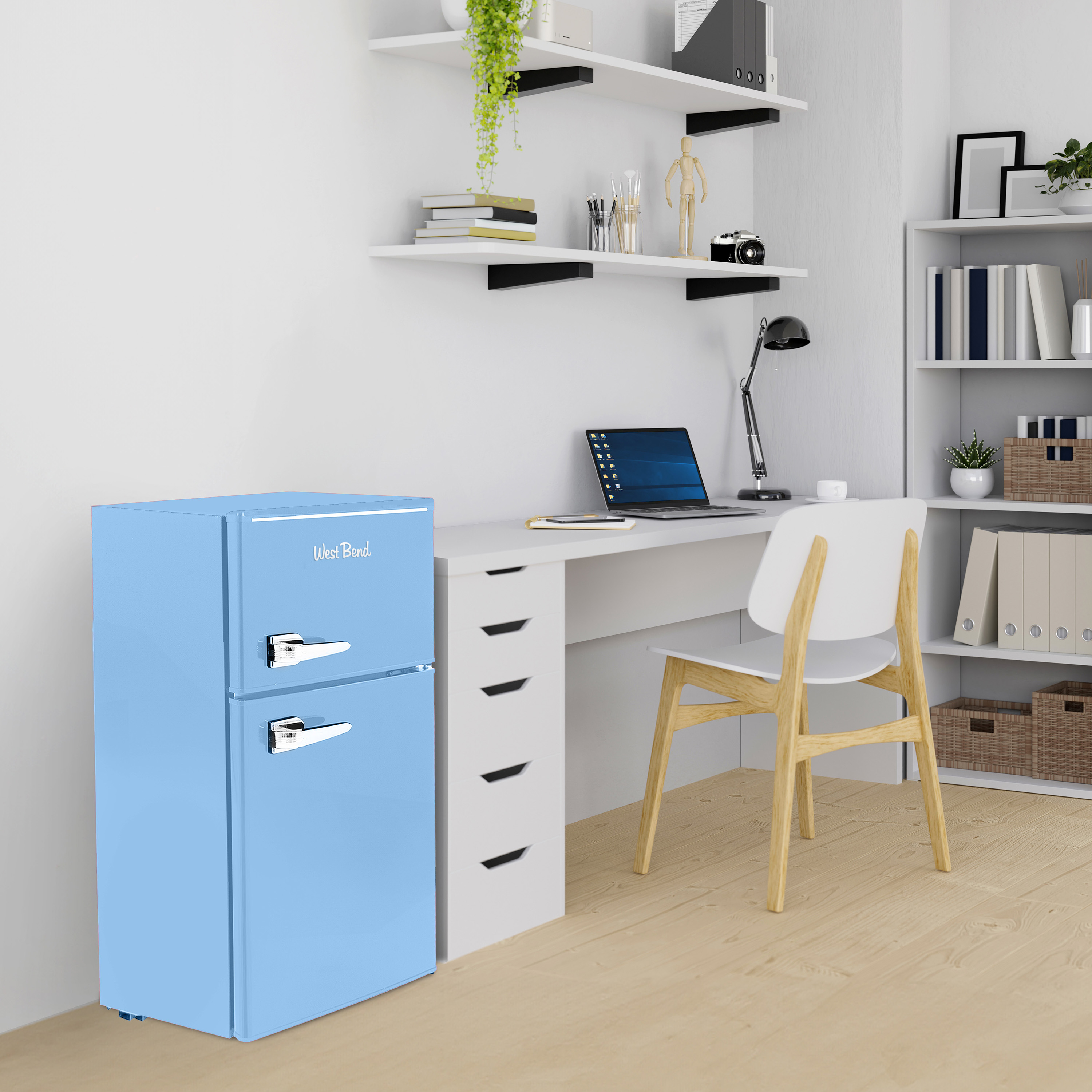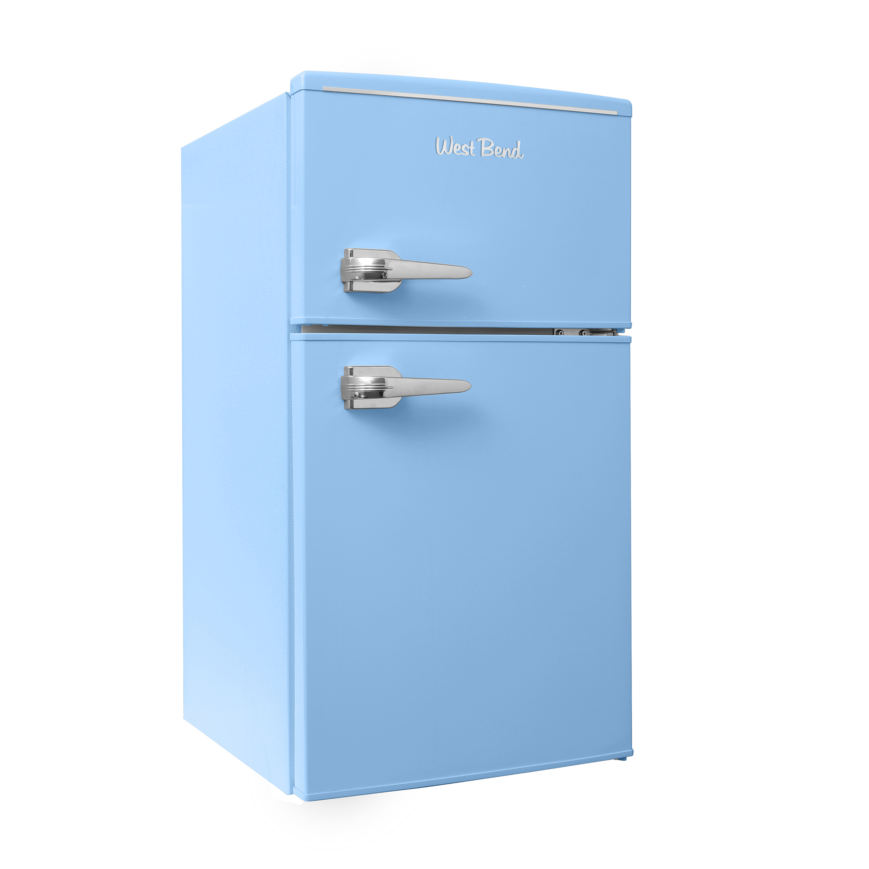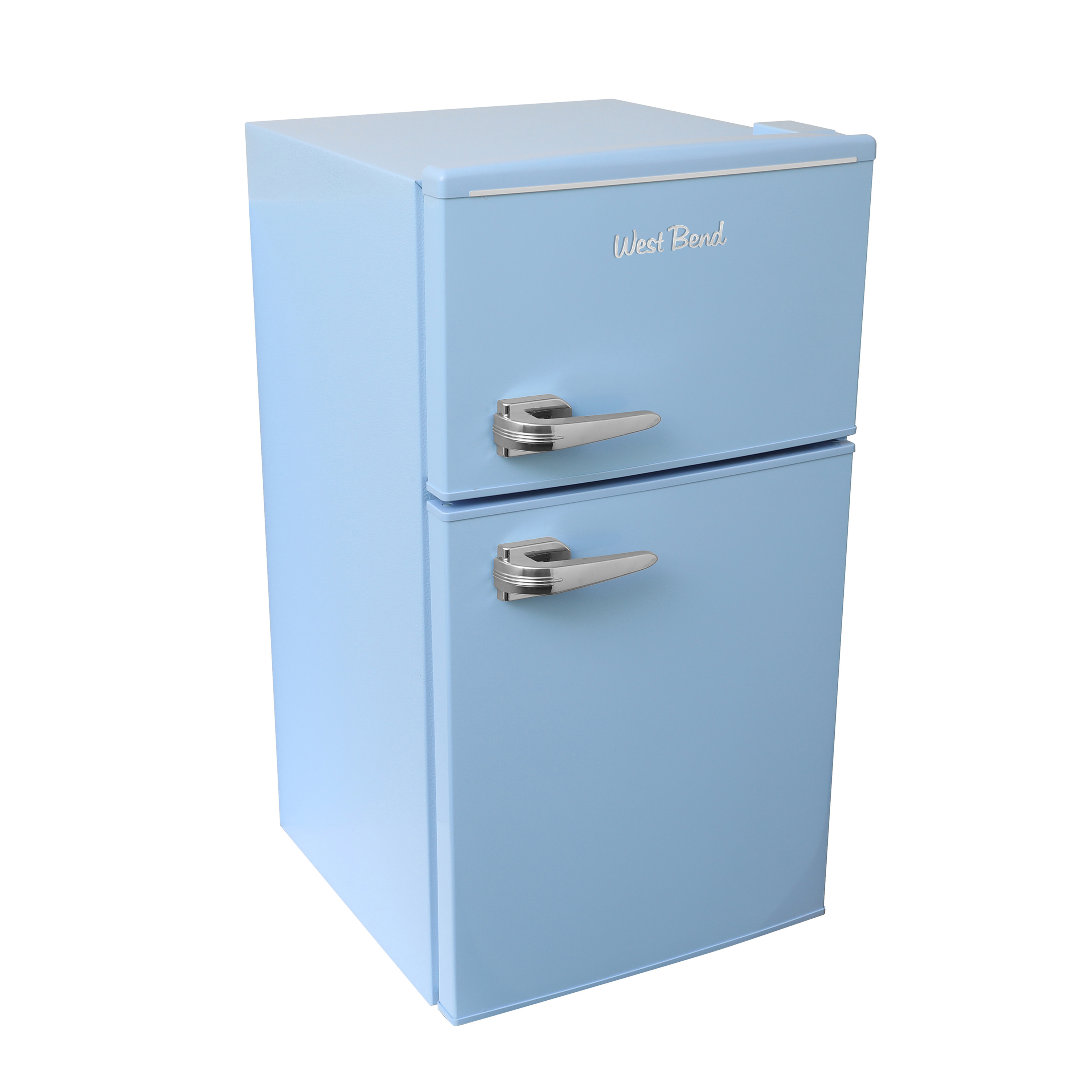 | Long Description | Add a classic look to any space with the West Bend Retro Compact Refrigerator and Freezer in robin egg blue. The fridge features 2.2 cu. ft. of refrigerator space with a .9 cu. ft. top freezer, for a total of 3.1 cu. ft. capacity. This retro-style refrigerator and freezer is an ideal fit for your home, dorm or office, saving space while keeping your favorite foods and beverages within reach. Built-in door shelves provide plenty of storage, accommodating 2-liter and gallon bottles, 12-ounce cans and assorted condiments. Two adjustable, removable glass shelves allow for easy organizing and viewing of your food. Manual defrost keeps food items fresh and cold. The mechanical temperature control lets you adjust the temperature with the turn of a dial. This retro refrigerator and freezer adds a fun and functional vintage look to any space. Covered by the West Bend 12-Month Limited Warranty. |