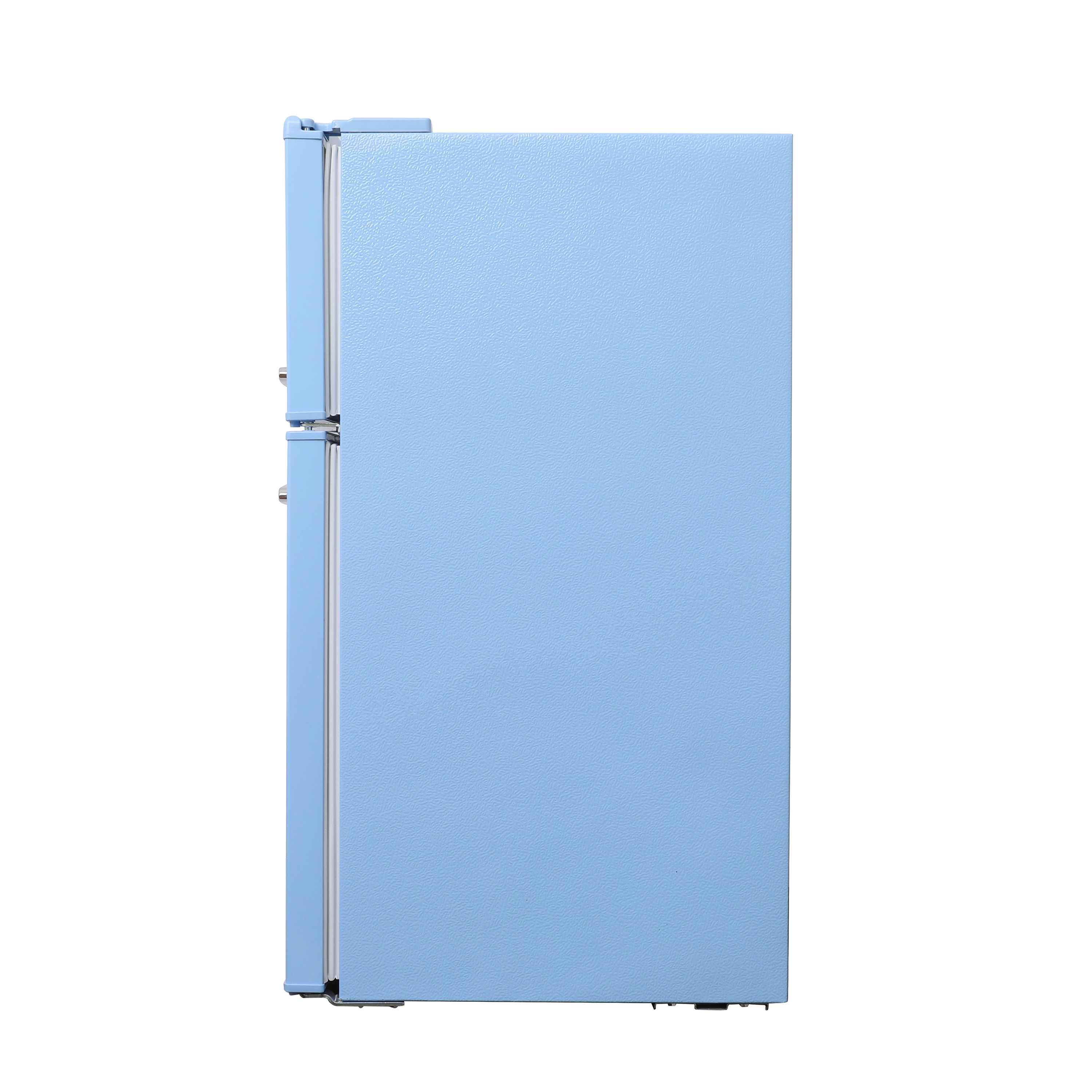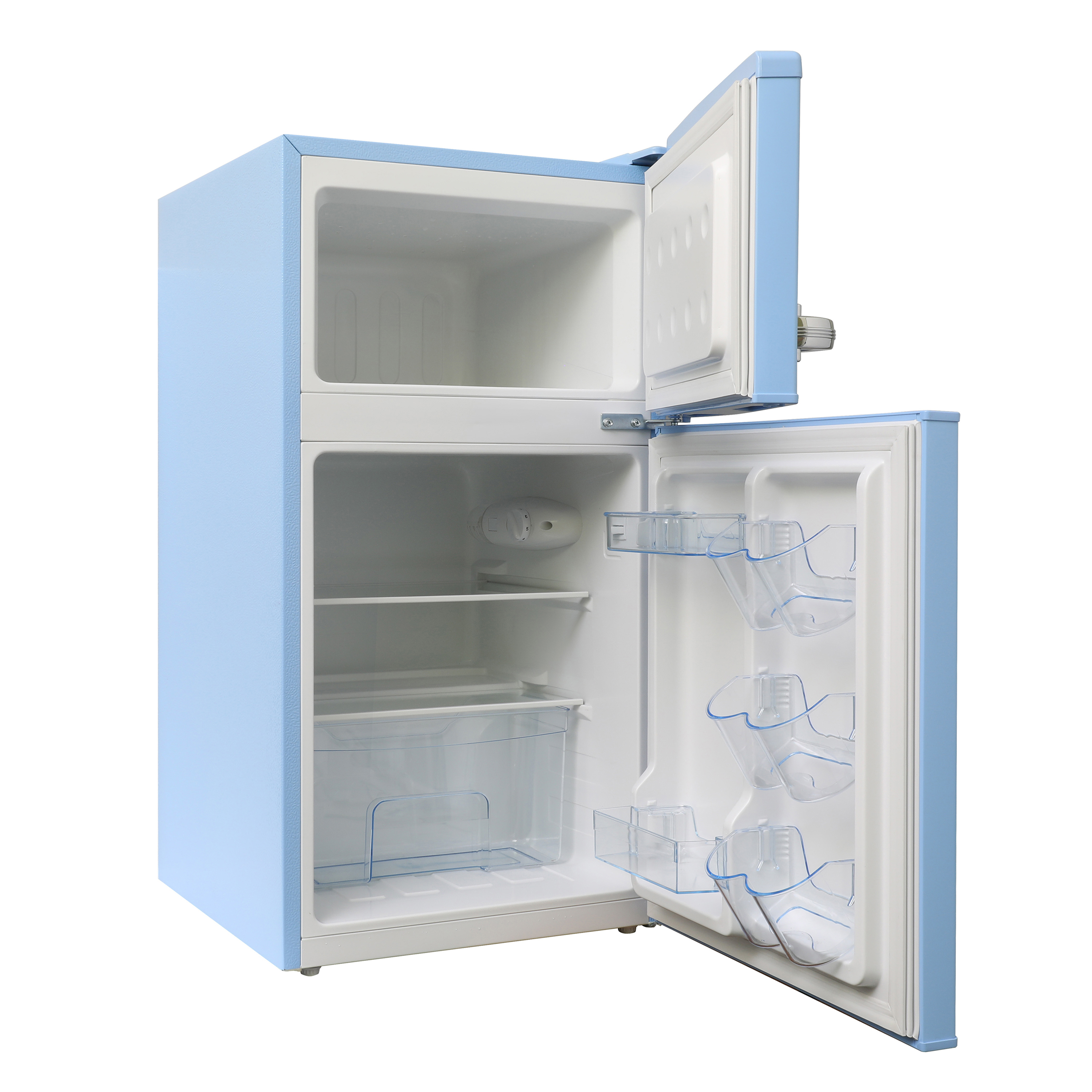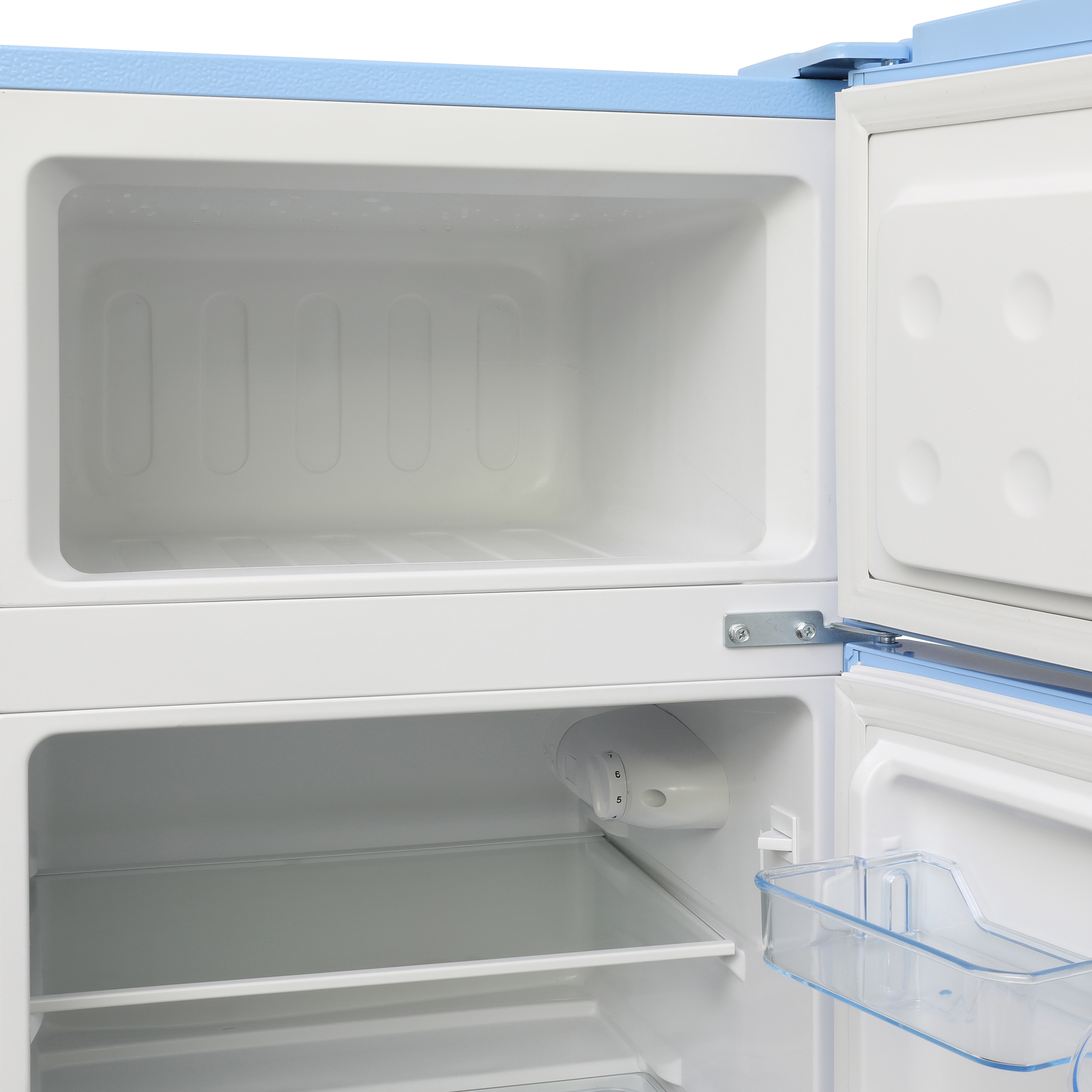 | Long Description | Add a classic look to any space with the West Bend Retro Compact Refrigerator and Freezer in robin egg blue. The fridge features 2.2 cu. ft. of refrigerator space with a .9 cu. ft. top freezer, for a total of 3.1 cu. ft. capacity. This retro-style refrigerator and freezer is an ideal fit for your home, dorm or office, saving space while keeping your favorite foods and beverages within reach. Built-in door shelves provide plenty of storage, accommodating 2-liter and gallon bottles, 12-ounce cans and assorted condiments. Two adjustable, removable glass shelves allow for easy organizing and viewing of your food. Manual defrost keeps food items fresh and cold. The mechanical temperature control lets you adjust the temperature with the turn of a dial. This retro refrigerator and freezer adds a fun and functional vintage look to any space. Covered by the West Bend 12-Month Limited Warranty. |