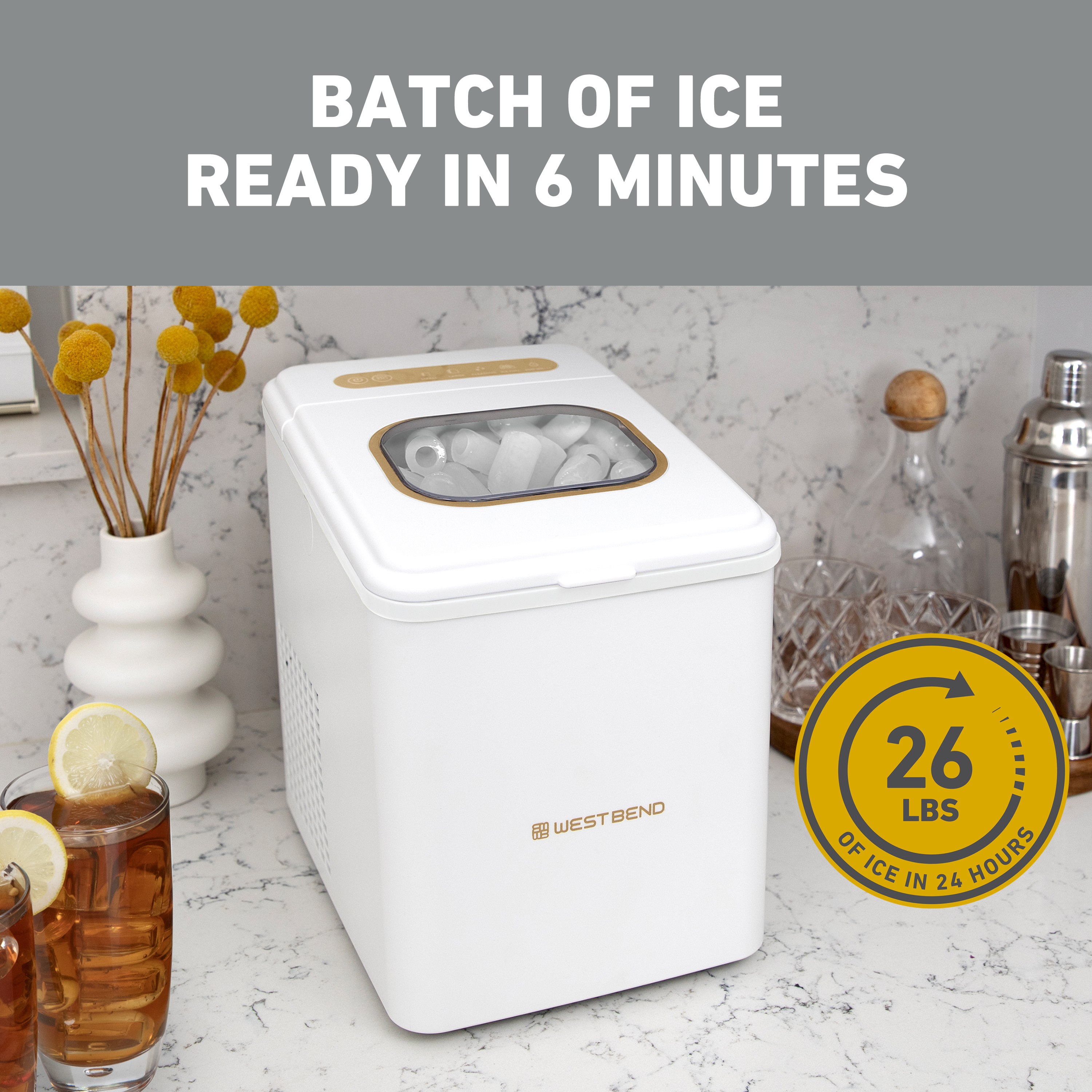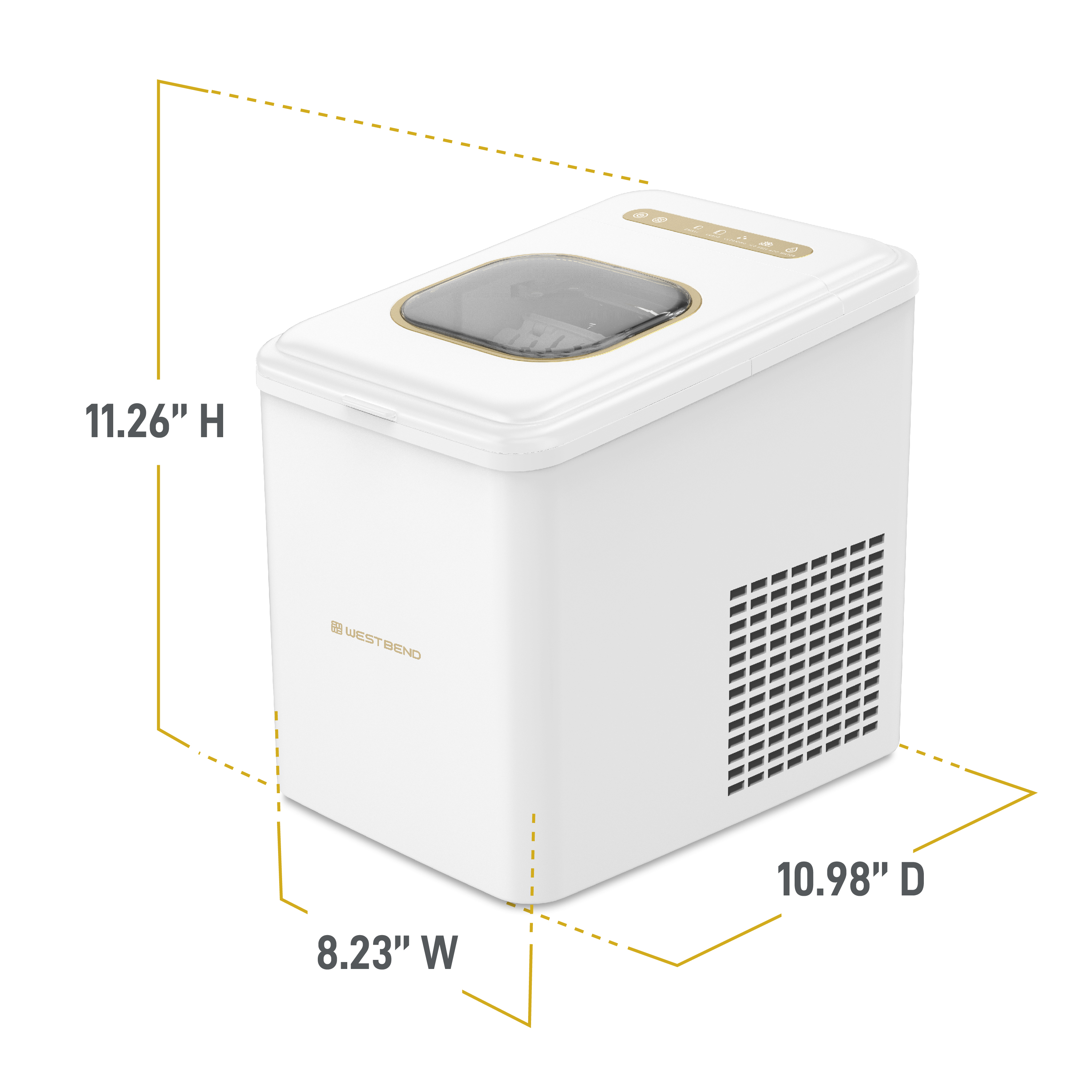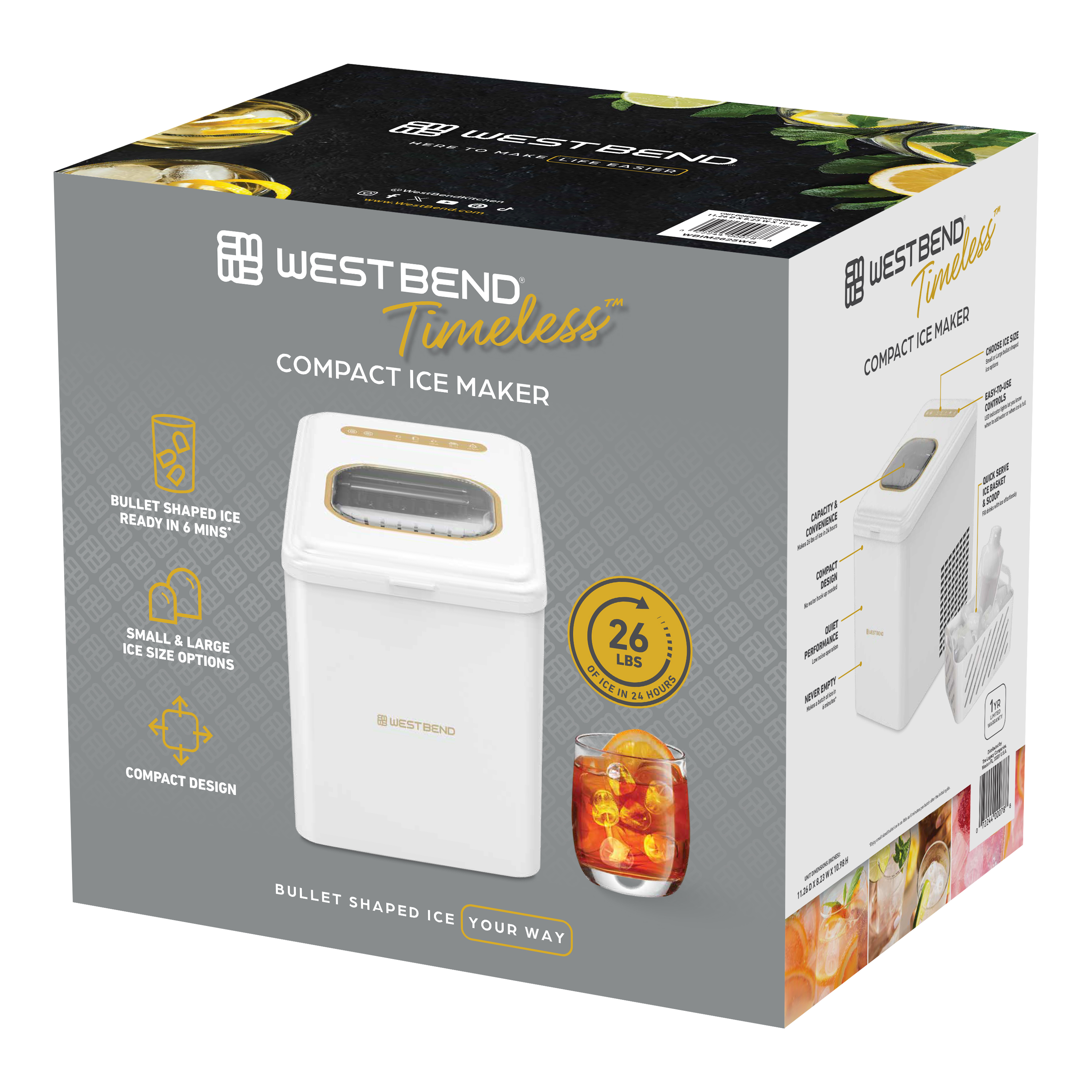 | Long Description | Discover the West Bend Timeless 26lb. Countertop Bullet Shaped Ice Maker, your ultimate solution for ice-making convenience. This dynamic appliance churns out up to 26 pounds of ice daily, ensuring you have plenty for all your beverages and gatherings. Customize your ice with ease, choosing between small and large sizes of round, smooth, bullet-shaped ice to match your needs. With a rapid production time, you can make ice in as little as 6 minutes per batch, so you'll always have ice ready when you need it. The user-friendly digital controls make setting adjustments simple, while the "Add Water" and "Ice Full" indicators keep you informed about the machine's status. Enjoy fresh, clean ice every time, thanks to the self-cleaning function that maintains top-notch hygiene. Compact and stylish, this ice maker fits seamlessly on any countertop, perfect for kitchens and event spaces alike. It comes equipped with an ice scoop and tray for easy serving and handling. Its portability makes it an ideal companion for events at home or on the go—whether you're tailgating, picnicking, or vacationing, you'll never be without ice. Operating quietly at just 49 dB, the West Bend ice maker won't disturb your surroundings. The large transparent lid not only adds a touch of elegance but also lets you monitor the ice-making process effortlessly. Combining efficiency, convenience, style, and performance, the West Bend Timeless 26lb. Countertop Bullet Shaped Ice Maker is the perfect addition to your home or event setup. |