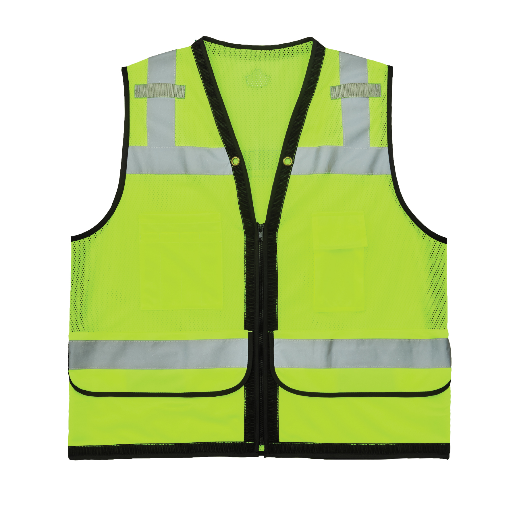 Product Name Glowear 8253HDZ Heavy-Duty Mesh Surveyors Vest - Type R, Class 2, Zipper Product Description The Glowear 8253HDZ Heavy-Duty Surveyors Safety Vest is an ANSI/ISEA 107-2020 Type R, Class 2 vest made of breathable 3.6oz polyester mesh and features 2” reflective tape for enhanced low-light visibility. This Class 2 vest has 2 lower exterior pockets, 2 upper exterior pockets, 1 large zippered rear pocket for documents or tablets, 2 interior hook & loop pockets, single mic tab and grommet holes. A zipper closure makes for easy on and off.