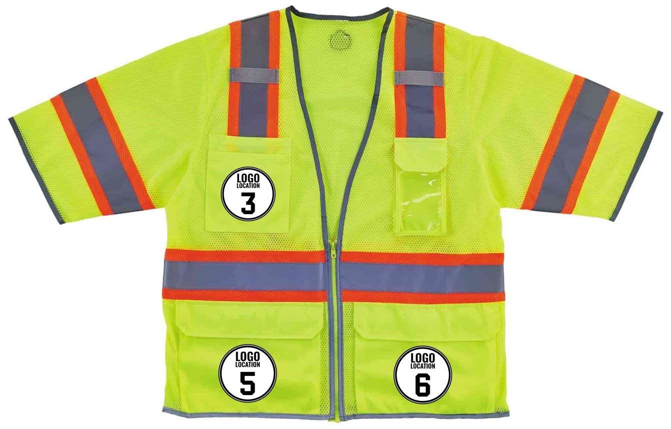 Item # 24155 Model # 8346Z Pillar > Class > Series Protection > Hi-Vis Apparel > Vests - Class 3 Color Orange Size L/XL Logo Type Heat Transfer Heat Transfer Lead Time 2 weeks on first time order > 1 week on repeat orders Heat Transfer MOQ 12