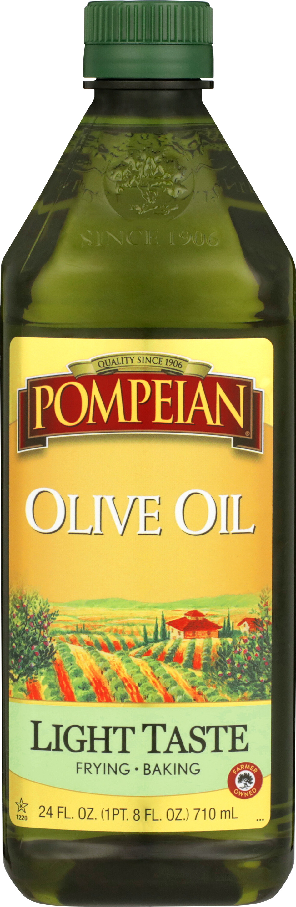 • Long DescriptionExpertly crafted by The Olive Oil People, this light tasting olive oil is authentically crafted by Pompeian’s family of olive farmers and olive oil craftsmen. From start to finish, you can taste the difference in Pompeian olive oils because our olive farmers and olive oil craftsmen have carefully nurtured the world’s best olives from grove to table, creating the best-tasting, highest-quality olive oil. Rooted in authenticity, our olive oils are crafted to help you eat and live well every day. Pompeian Light Taste Olive Oil is perfect for baking and frying.
