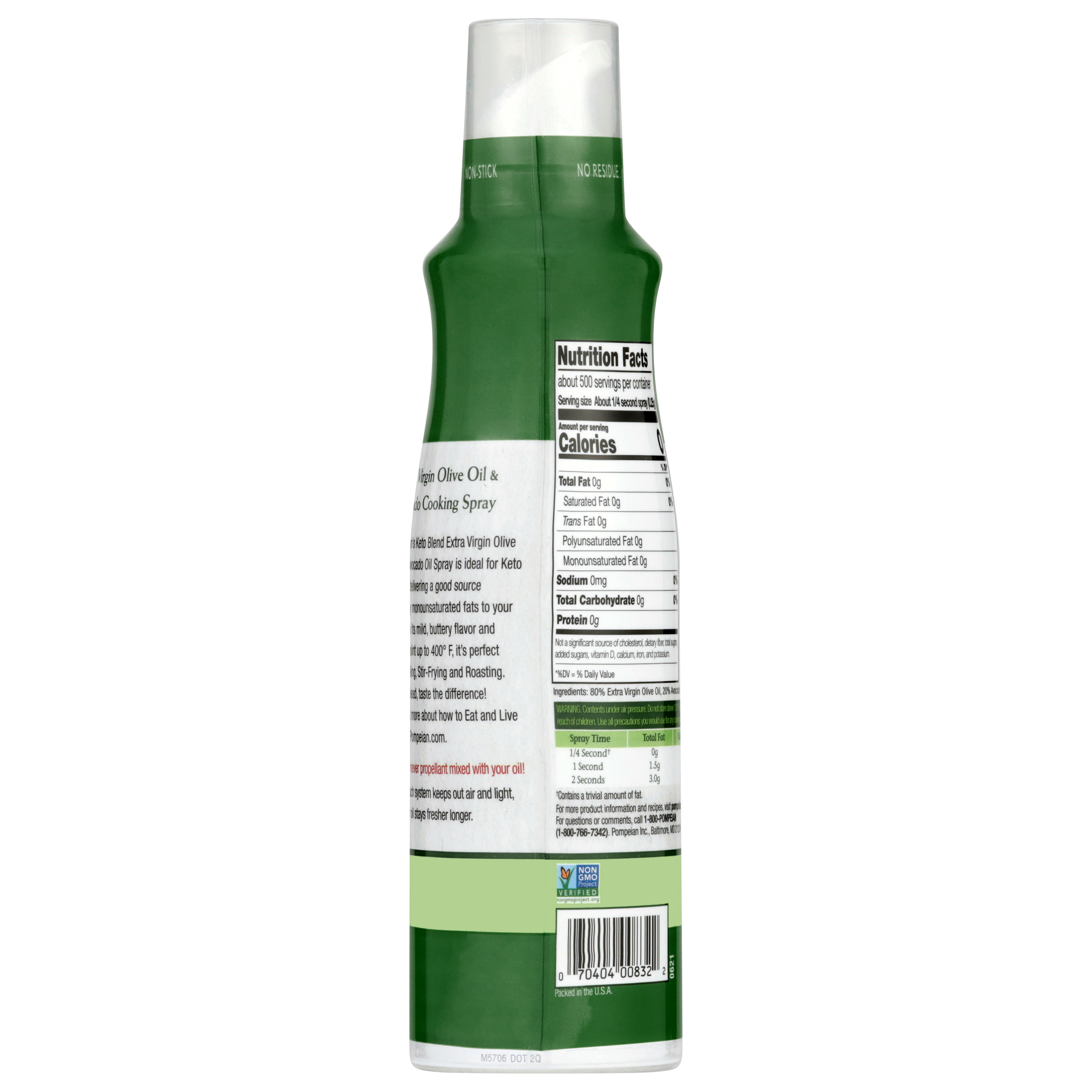 | Long Description | Expertly crafted by The Olive Oil People, this Keto Extra Virgin Olive Oil + Avocado Oil Cooking Spray is authentically crafted by Pompeian’s family of farmers and craftsmen. Each of our cooking sprays utilizes a powerful pouch system so that your oil is never mixed with propellants or other additives and is safe and delicious sprayed directly on food. Pompeian Keto Extra Virgin Olive Oil + Avocado Oil is perfect for sautéing, stir-frying and roasting. |