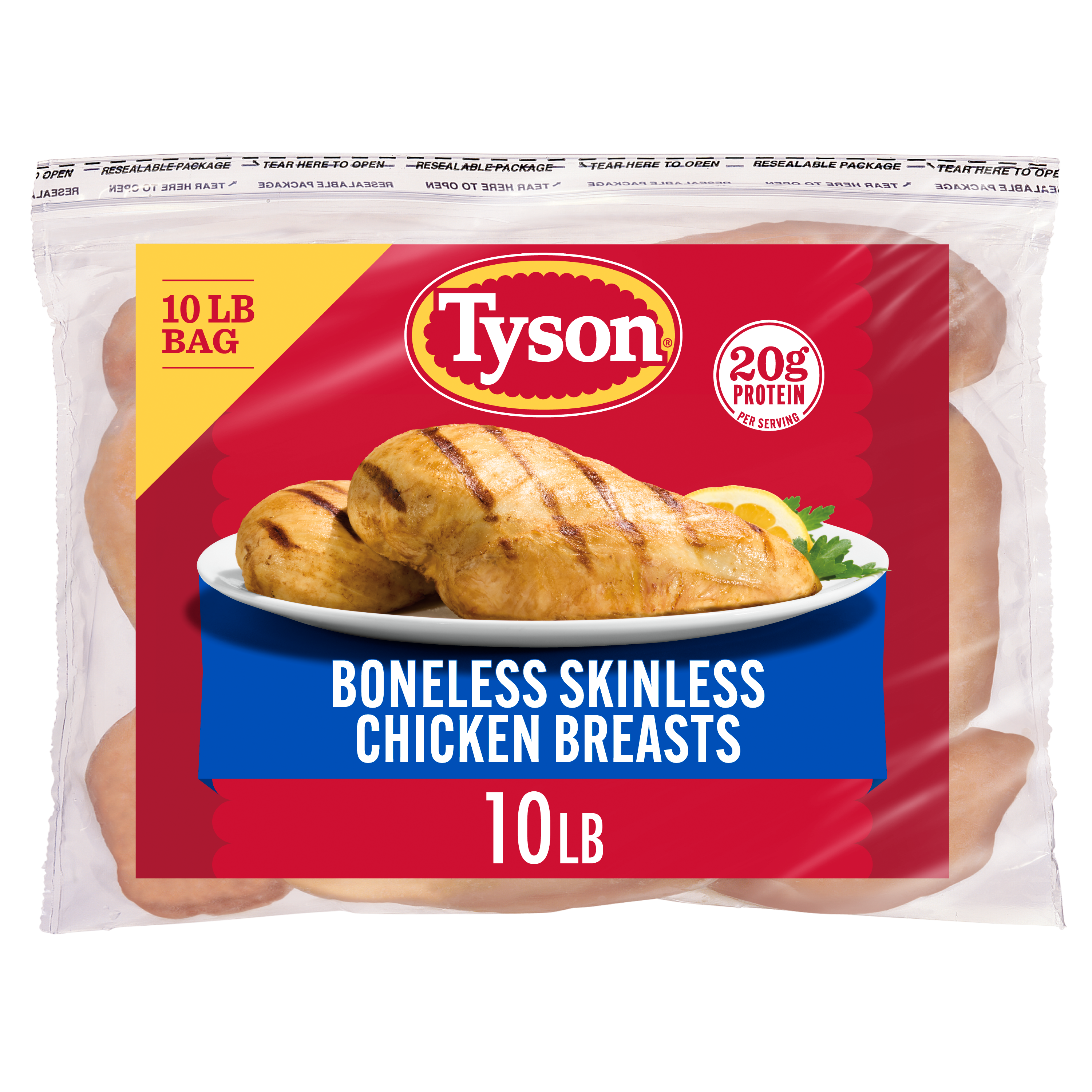 | Retail eCommerce Marketing Message | There's nothing like cooking from scratch, especially when you start with Tyson Individually Frozen Boneless Skinless Chicken Breasts. Our all-natural* chicken is juicy and tender with 20 grams of protein and 0 grams of trans fat per serving. Perfect for grilling and roasting, simply cook and serve our boneless chicken breasts with BBQ sauce for a quick and delicious weeknight dinner. Includes one 10 lb package of individually frozen chicken. Everything seems to turn out a whole lot better when you just keep it simple. No nonsense. Just stick to the good stuff. The 100% real stuff that makes life, and chicken, great. Keep it real. Keep it Tyson. *Minimally processed, no artificial ingredients. |
