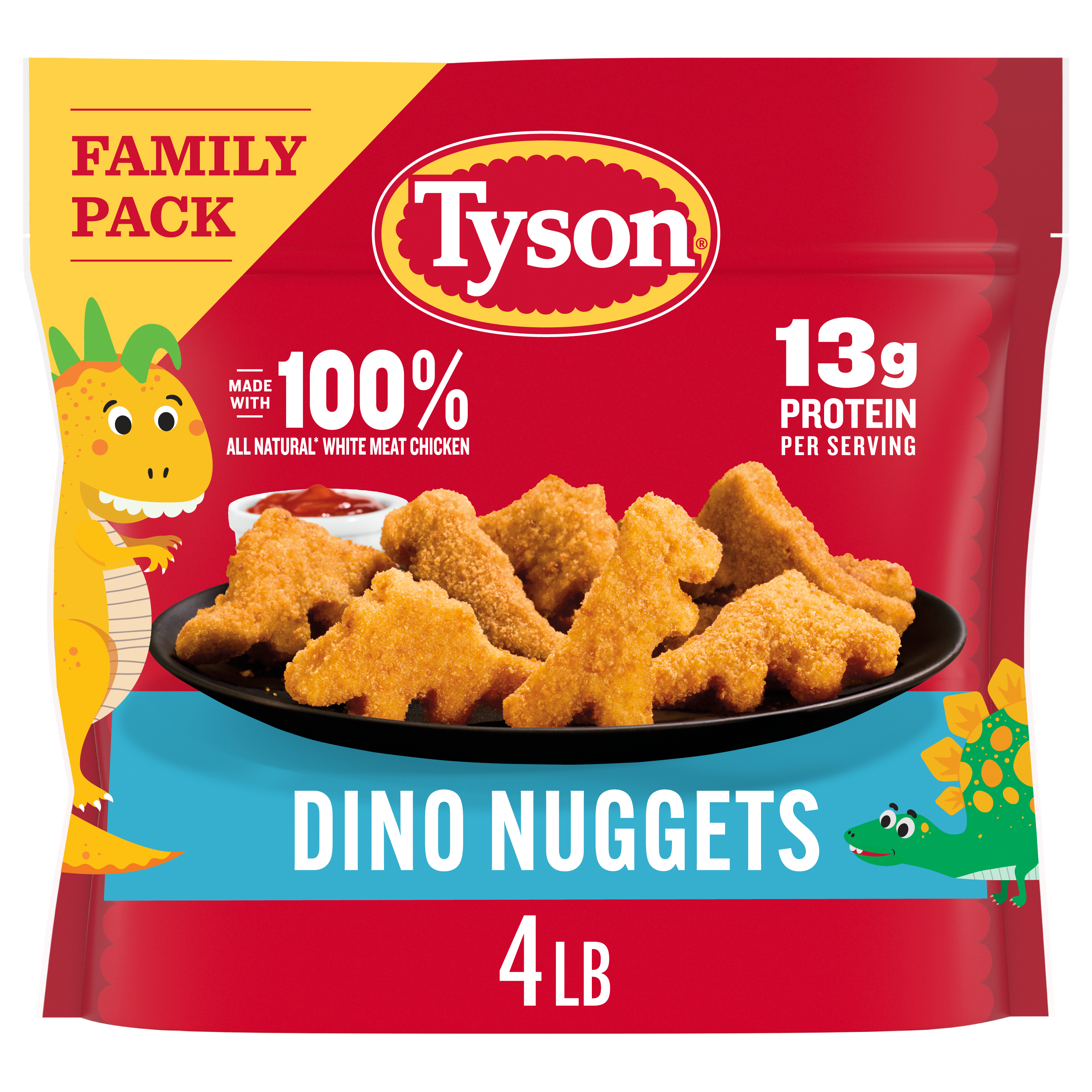 | Catalog Keywords | Tyson, Tyson frozen dino nuggets, frozen dino nuggets, frozen, dino nuggets, protein, all natural chicken, all natural, chicken, no added hormones or steroids, fully cooked, dino-shaped, dino-shaped chicken, chicken patties, dino chicken patties, air fryer, oven, microwave, fun, white meat chicken, white meat, keep frozen, easy, dip, enjoy, prehistoric, breaded chicken patties, epic dinos, easy to make, warm and crispy, easy-to-pack, school lunch, dinner, adventure, dunking, breaded chicken patties, crispy, school, minimally processed, 4 lb, servings, Tyson dino, dino fun, |
