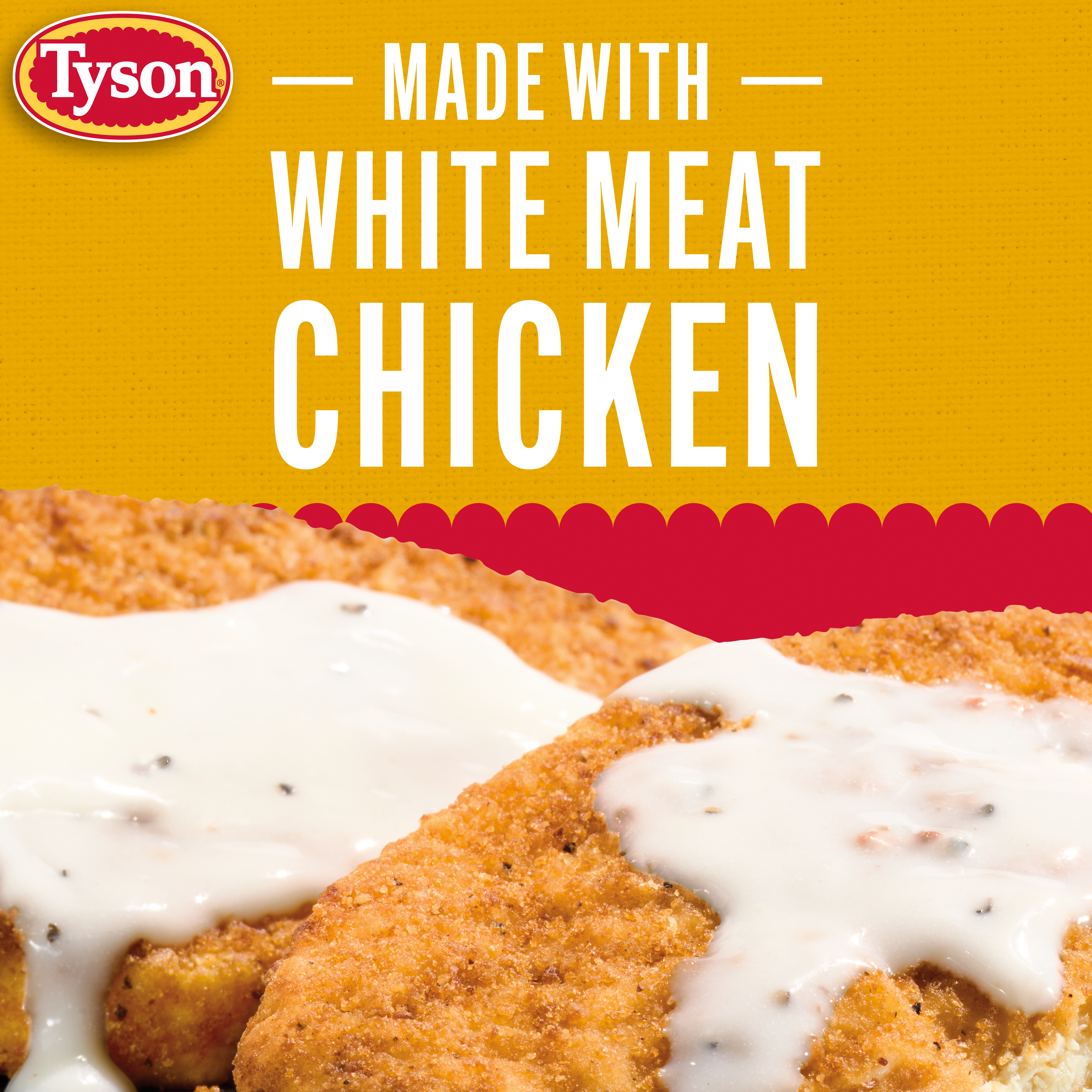 | Retail eCommerce Marketing Message | Beyond just breaded chicken, enjoy the comforting taste of Tyson Frozen Homestyle Chicken Breasts with Gravy Mix. These frozen chicken breasts are made with white meat chicken and have a delicious, crispy breading that pairs perfectly with the included gravy mix. Fully cooked and made with 100% all-natural* chicken raised with no added hormones or steroids**, these homestyle chicken breasts contain 14 grams of protein per serving. Embrace the comfort and enjoy homestyle chicken and rich white gravy as a delicious entrée with biscuits and veggies. Keep frozen until ready to prepare, then heat in an air fryer or oven according to the instructions on the pack. Serve with gravy from the mix. *Minimally processed, no artificial ingredients **Federal regulations prohibit the use of added. hormones or steroids in chicken. |