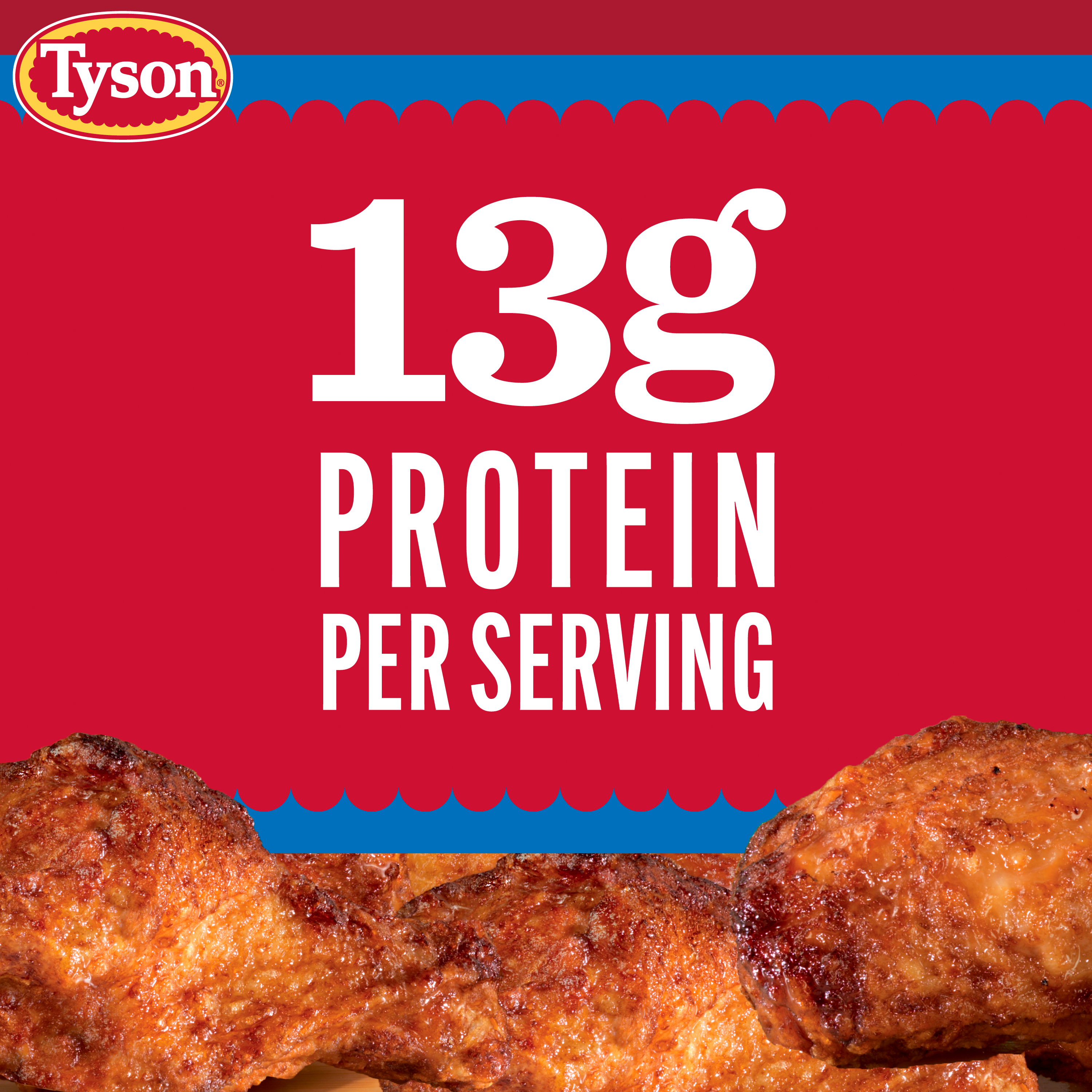 | Retail eCommerce Marketing Message | Enjoy the mouthwatering taste of Tyson Frozen Smoked Jumbo Crispy Wings. The 2.5 lb bag is packed with fully cooked, seasoned chicken wings that have a bold smoky flavor and crispy texture. With 13g of protein per serving and made from 100% all-natural* chicken, these wings are a satisfying snack or meal addition. They contain no added hormones or steroids** and are perfect for game day, family night, or a savory treat. Easy to prepare in an air fryer, oven, or outdoor grill, they deliver restaurant-quality taste at home. Keep frozen until ready to cook. Grab a bag today and make smoked chicken wings a staple in meal planning! *Minimally processed. No artificial ingredients. **Federal regulations prohibit the use of added hormones or steroids in chicken. |