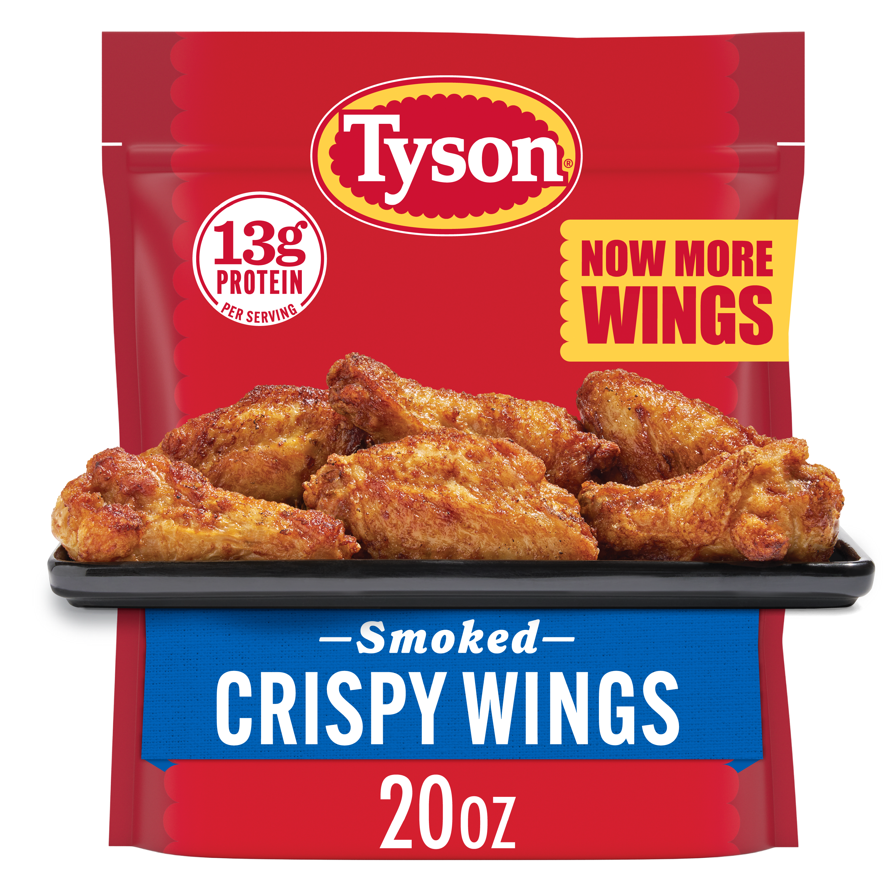 | Retail eCommerce Marketing Message | Treat yourself to the mouthwatering taste of our Tyson Smoked Crispy Wings. Each 20 oz bag comes packed with fully cooked, seasoned chicken wings that boast a bold smoky flavor and an irresistible crispy texture. With 13g of protein per serving and made from 100% all-natural* chicken, our wings offer a satisfying snack or addition to a meal. Perfect for those who appreciate quality, our wings contain no added hormones or steroids**. Whether you're gearing up for game day, planning a family night or simply craving a savory treat, Tyson Smoked Crispy Wings are easy to prepare in an air fryer, oven or outdoor grill, delivering restaurant-quality taste right at home. Keep our delicious wings frozen until you're ready to cook them up and dive into a delicious snack. Grab a bag today and experience the flavor of smoked chicken wings that are sure to become a staple in your meal planning! *Minimally processed. No artificial ingredients.**Federal regulations prohibit the use of added hormones or steroids in chicken. |