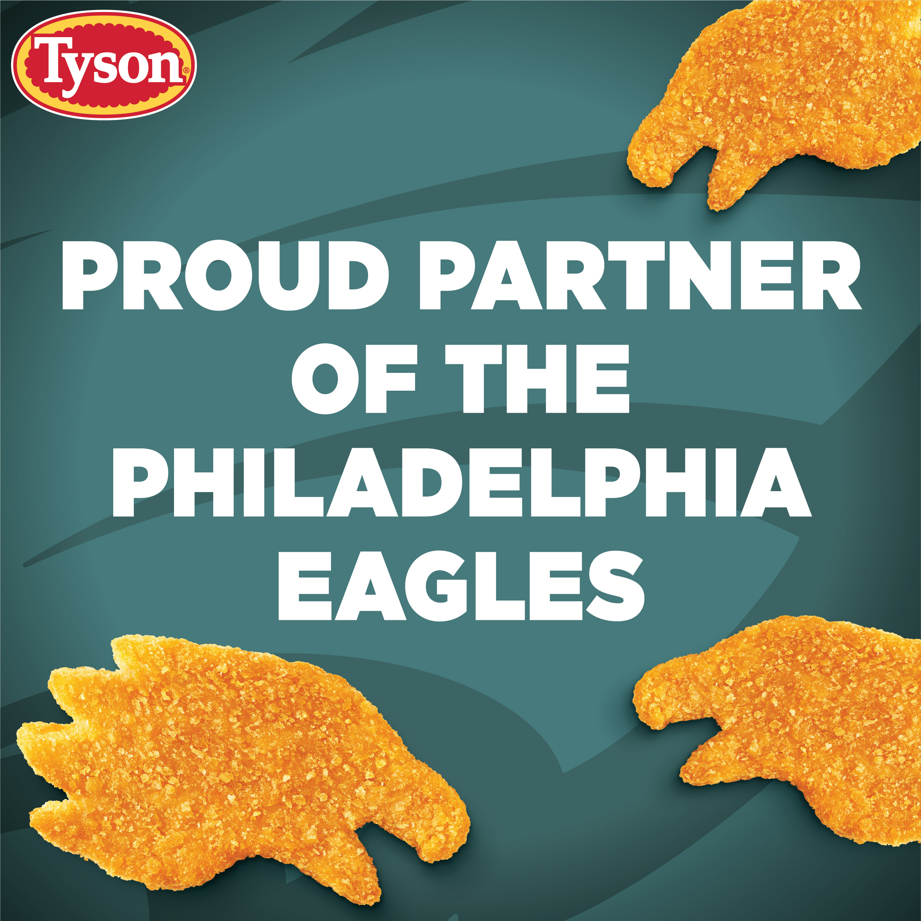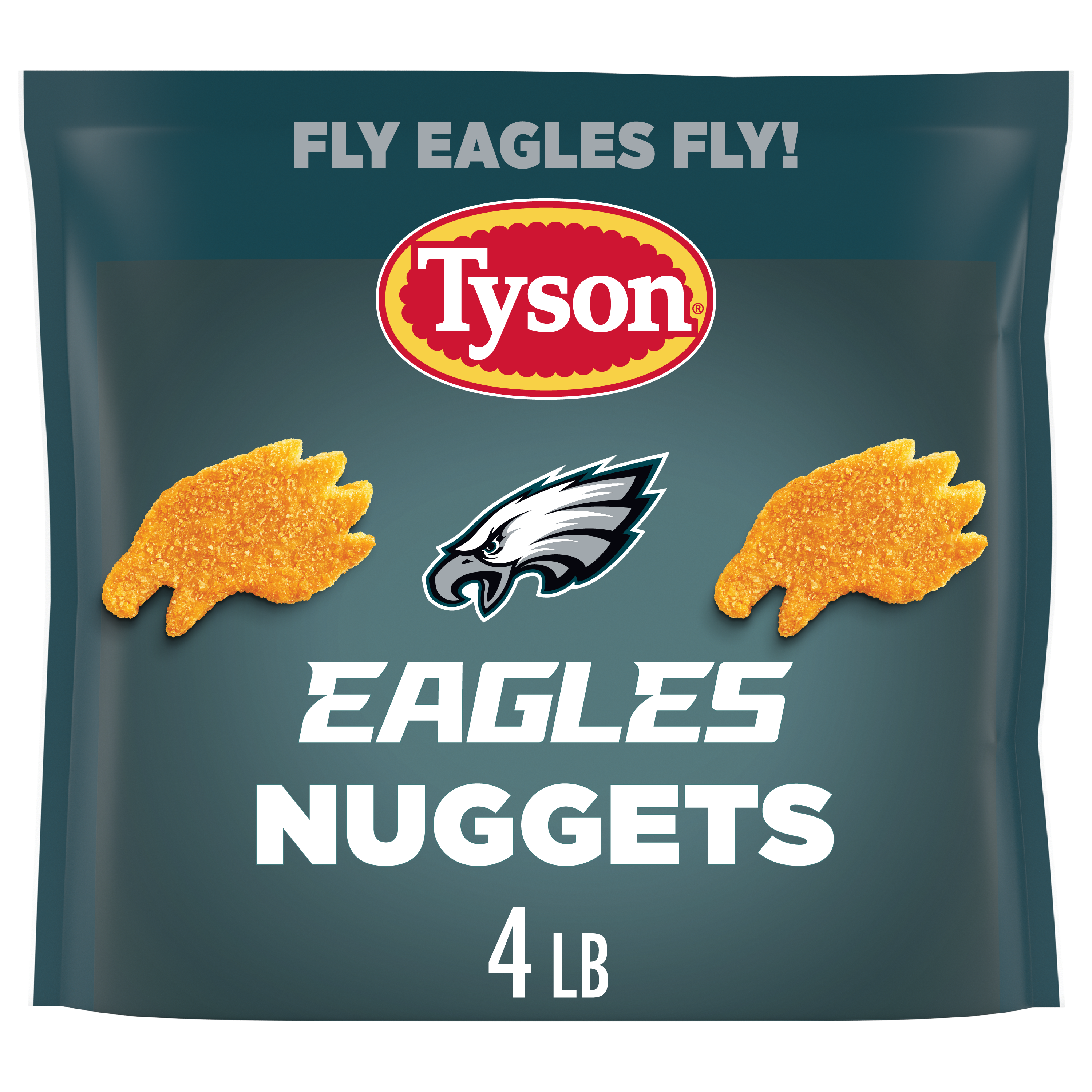 | Catalog Keywords | Fly Eagles Fly, Tyson Eagles inspired Chicken Nuggets, perfect bite-sized snack, game day moment, crispy on the outside, tender on the inside, eagle head-shaped nugget, bold savory flavor, celebration, kickoff to final whistle, air fryer, oven, microwave, deep fryer, crispy golden breaded nuggets, City of Brotherly Love, fuel up for game day, 12 grams of protein, hosting a watch party, tailgating with friends, cheering from the couch, taste and team pride, fans, loud, proud, hungry, game day tradition, new game day tradition snack, frozen and ready to heat and enjoy, perfect for tailgates and watch parties, fully cooked eagle head-shaped chicken nuggets, Official Nugget of the Philadelphia Eagles, 12g protein per serving, 4 lb bag of Tyson Nuggets-Eagles |