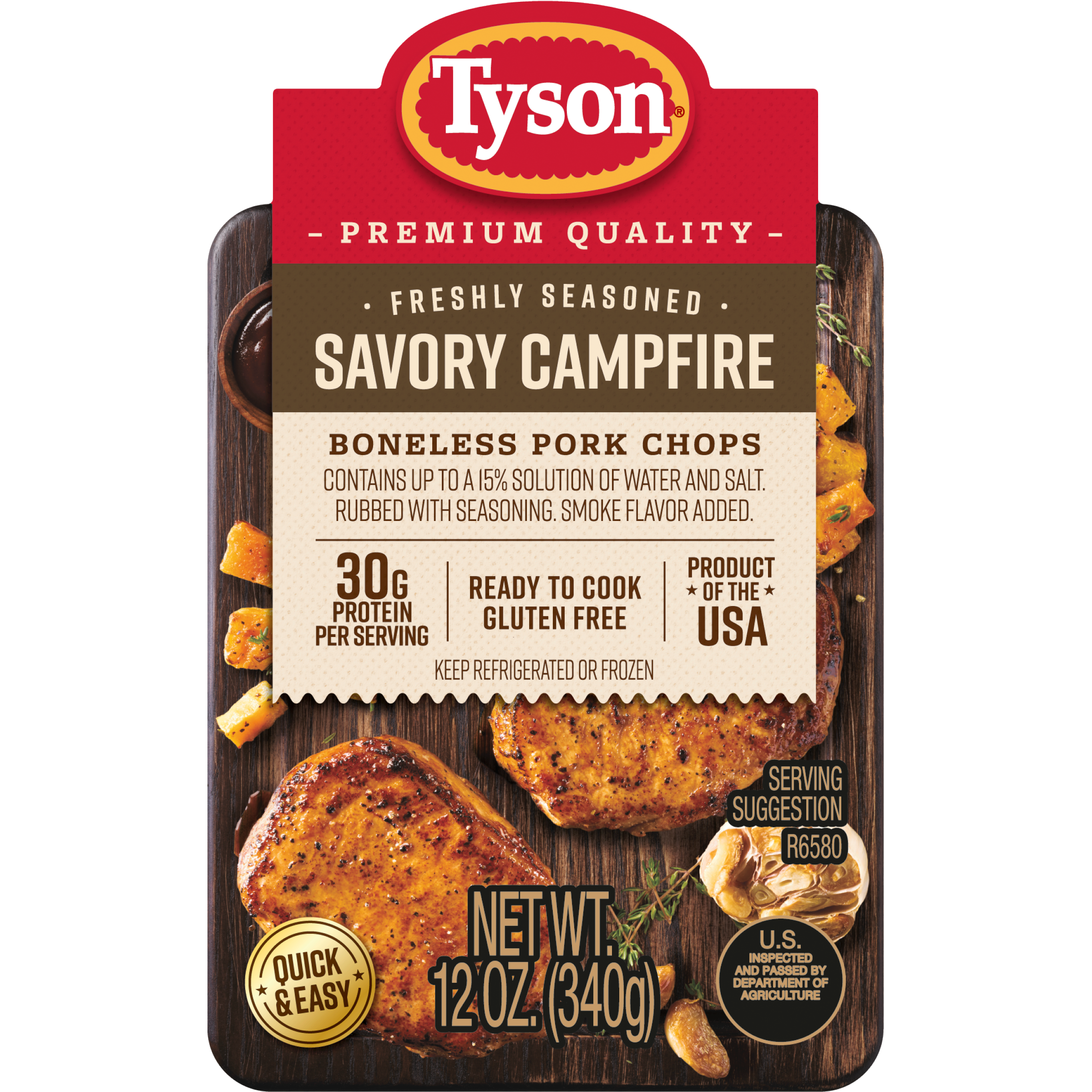 | Catalog Keywords | pork chops;Tyson;Tyson pork chops;quality pork;pork chops;consistently good pork;meal planning;pork meal;pork meal idea;portion control;couples meal idea;couples meal planning;savory herbs and spices;campfire taste;savory ingredients;savory pork;convenient packaging;premium pork cuts;flavorful meat;satisfying pork chop;campfire dining;rustic charm;outdoor cooking;perfectly seasoned pork chops;pork chop recipe;meat recipe;time-saver;meal prep;home-cooked;home cooked |