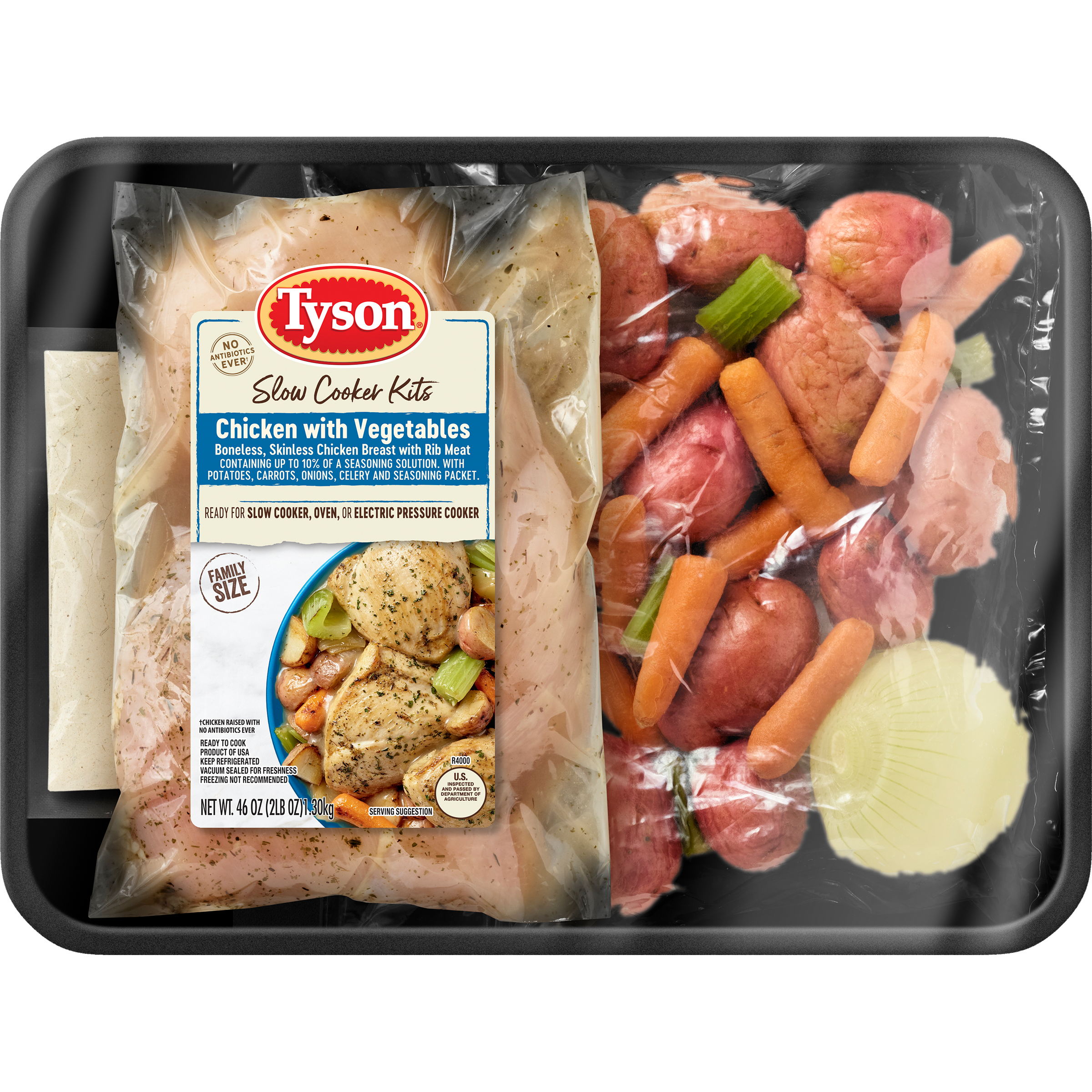 | Retail eCommerce Product Title | Tyson® Slow Cooker Chicken with Vegetables Family Size Meal Kit, 46 oz |