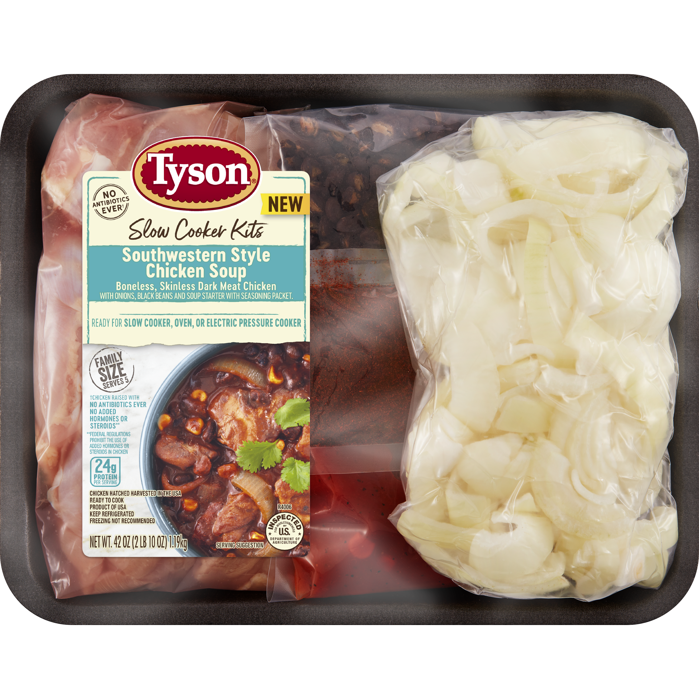 | Retail eCommerce Product Title | Tyson® Slow Cooker Kits Southwestern Style Chicken Soup, Boneless Skinless Dark Meat Chicken with Onions, Black Beans and Soup Starter with Seasoning Mix, 42 oz |