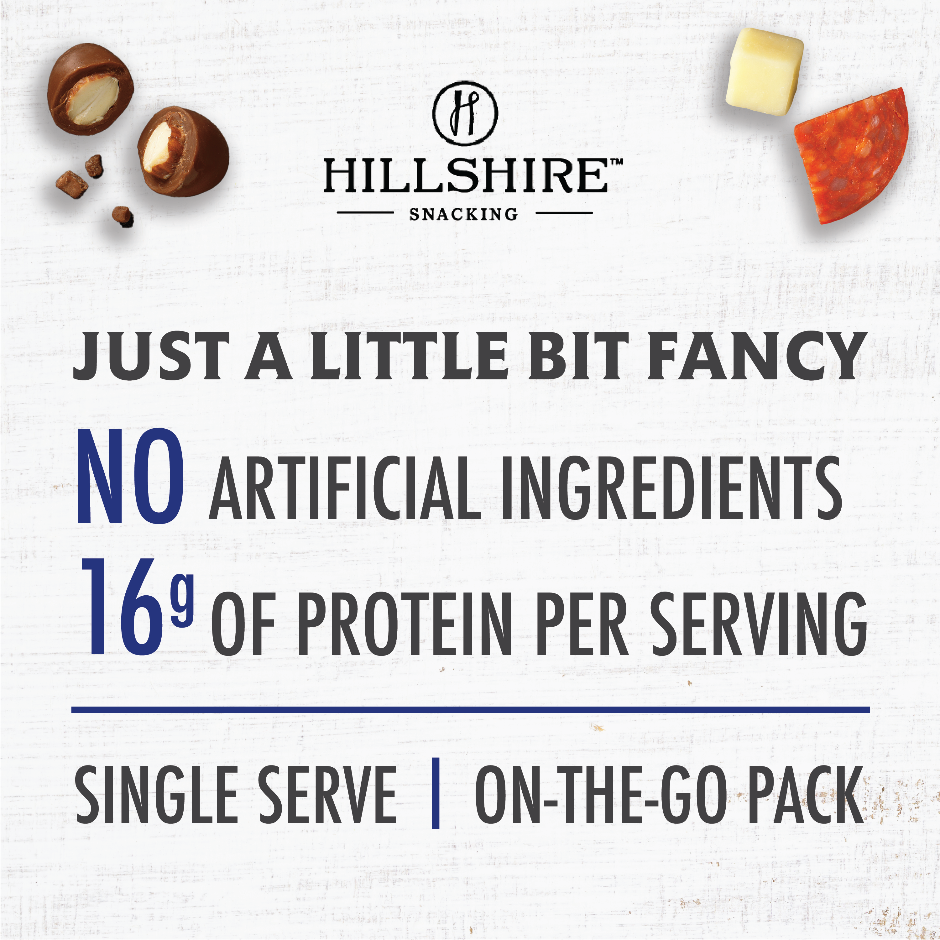 | Retail eCommerce Marketing Message | Enjoy a grown up take on snack time with Hillshire® Snacking Bistro Bites Uncured Pepperoni Monterey Jack Cheese and Cocoa Almond and Walnut Blend. With this fancy snack pack, complementary flavors come together to deliver a gourmet snacking experience with no nitrates or nitrites added* and no artificial ingredients. Ready to eat meat snack and perfectly portioned in a single serve pack for snacking on the go, these Bistro Bites provide 17 grams of protein per serving. For a snack that is a tasty combination of sweet and savory, tear open a package and enjoy. Includes one 2.8 oz package of Bistro Bites pepperoni and Monterey Jack cheese. We are big believers in a little thing called snack time. To us snacking is not about rushing or mindless eating, but about turning a few stolen moments into an elevated celebration worth savoring. We are here to turn snacking into an occasion, and you are invited. *Except for those naturally occurring in celery powder and sea salt |