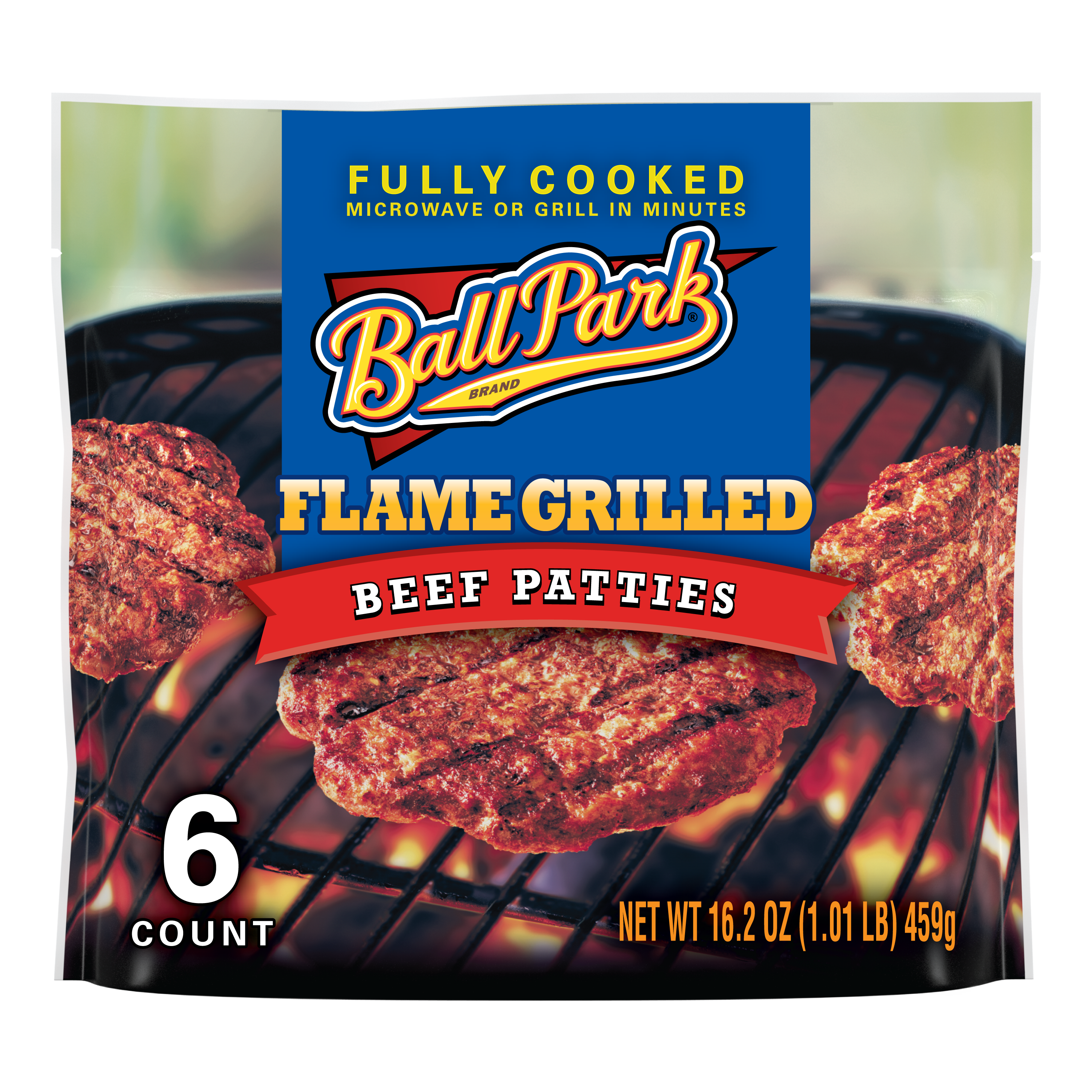 | Retail eCommerce Product Title | Ball Park Fully-Cooked Flame Grilled Original Beef Patties, Frozen, Resealable Package, 6 Count |