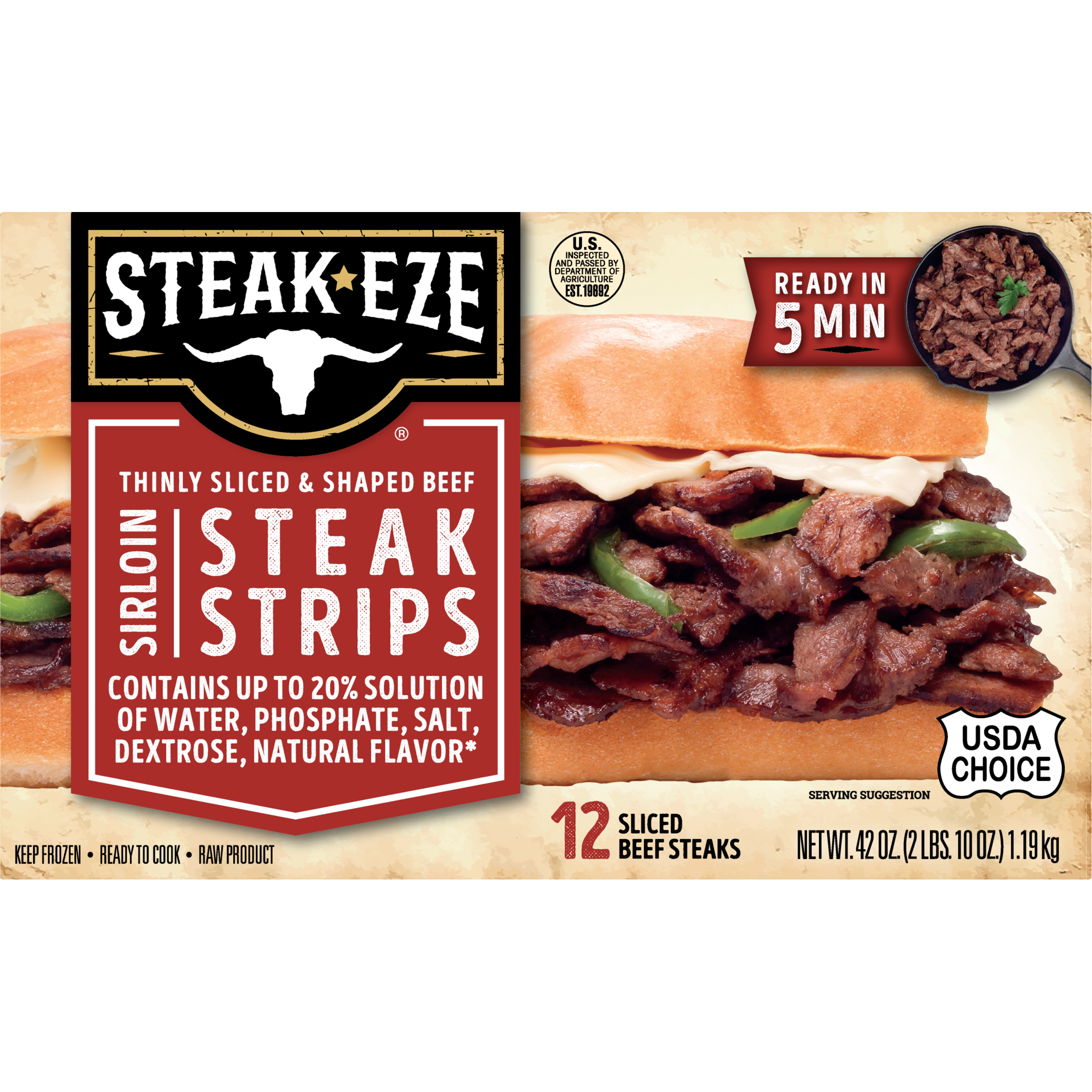 | Retail eCommerce Product Title | Steak-EZE® Thinly Sliced Sirloin Beef Steak Strips, 12 Count (Frozen) |