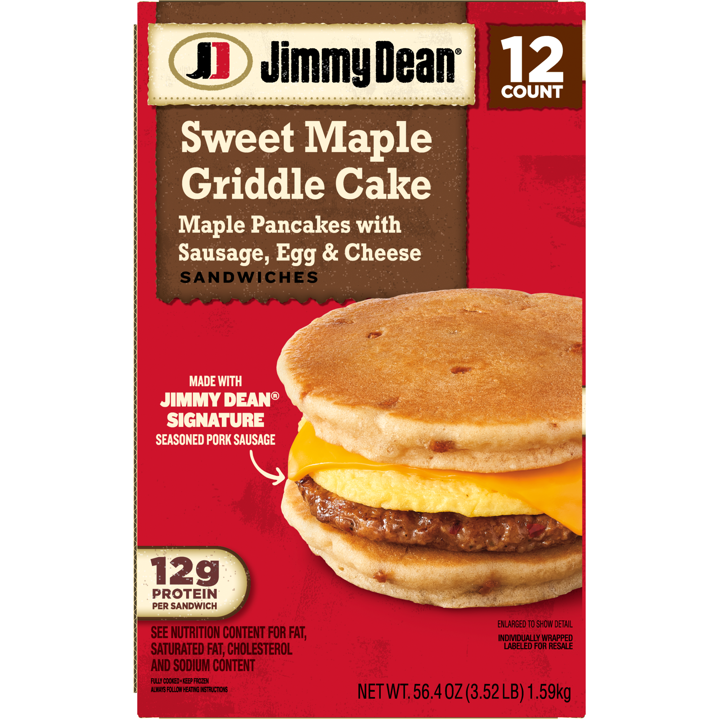 | Retail eCommerce Why Buys | - One 3.52 lb box of 12 Jimmy Dean Sausage, Egg and Cheese Sweet Maple Griddle Cake Sandwiches