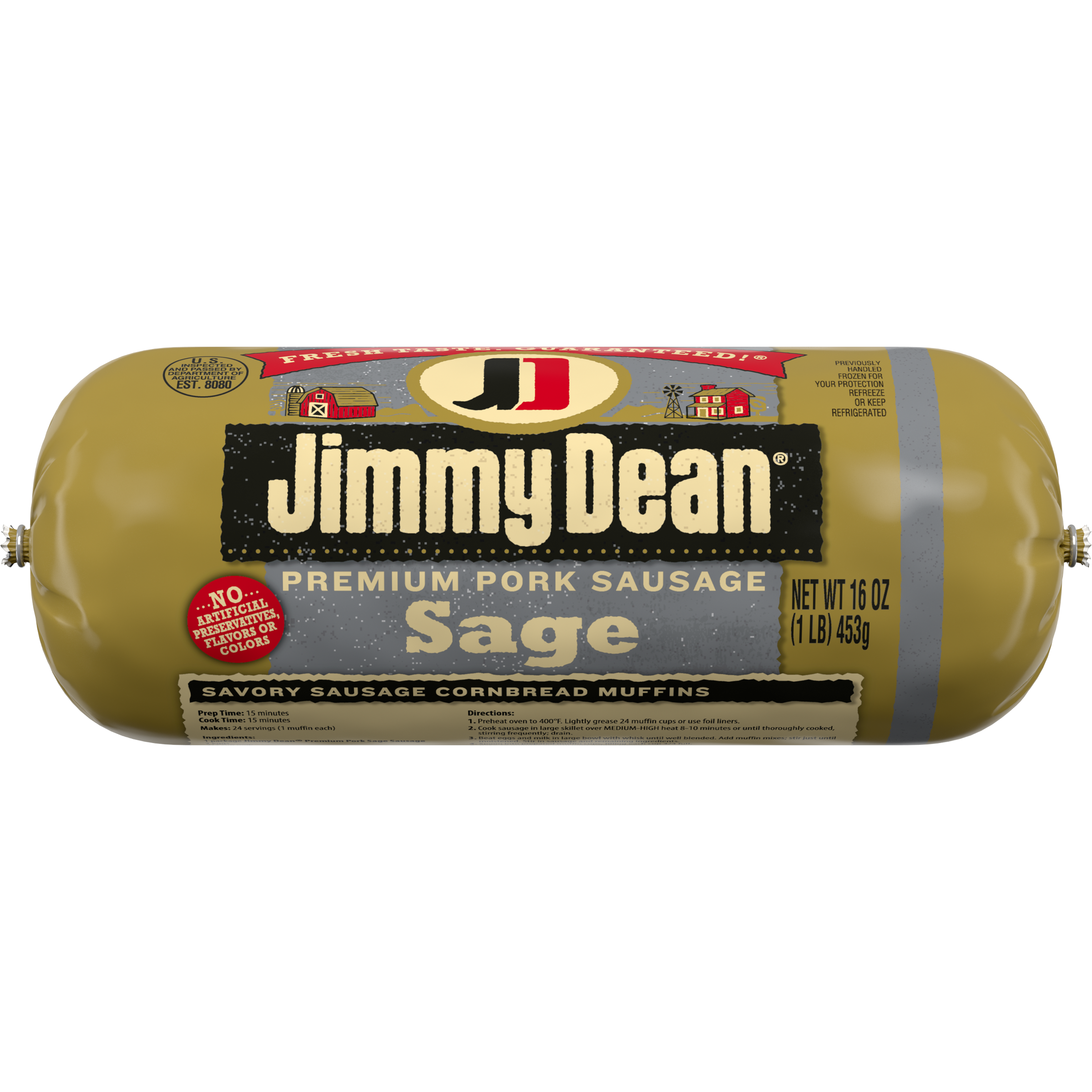 | Retail eCommerce Marketing Message | Jimmy Dean Pork Sage Breakfast Sausage Roll is made with premium pork, seasoned to perfection with sage and a signature blend of spices. This savory breakfast sausage provides more fuel to help power the day. Simply slice into sausage patties, then cook and serve with eggs and toast for a traditional sausage breakfast, or crumble Jimmy Dean pork sausage and add it to a favorite stuffing recipe. |