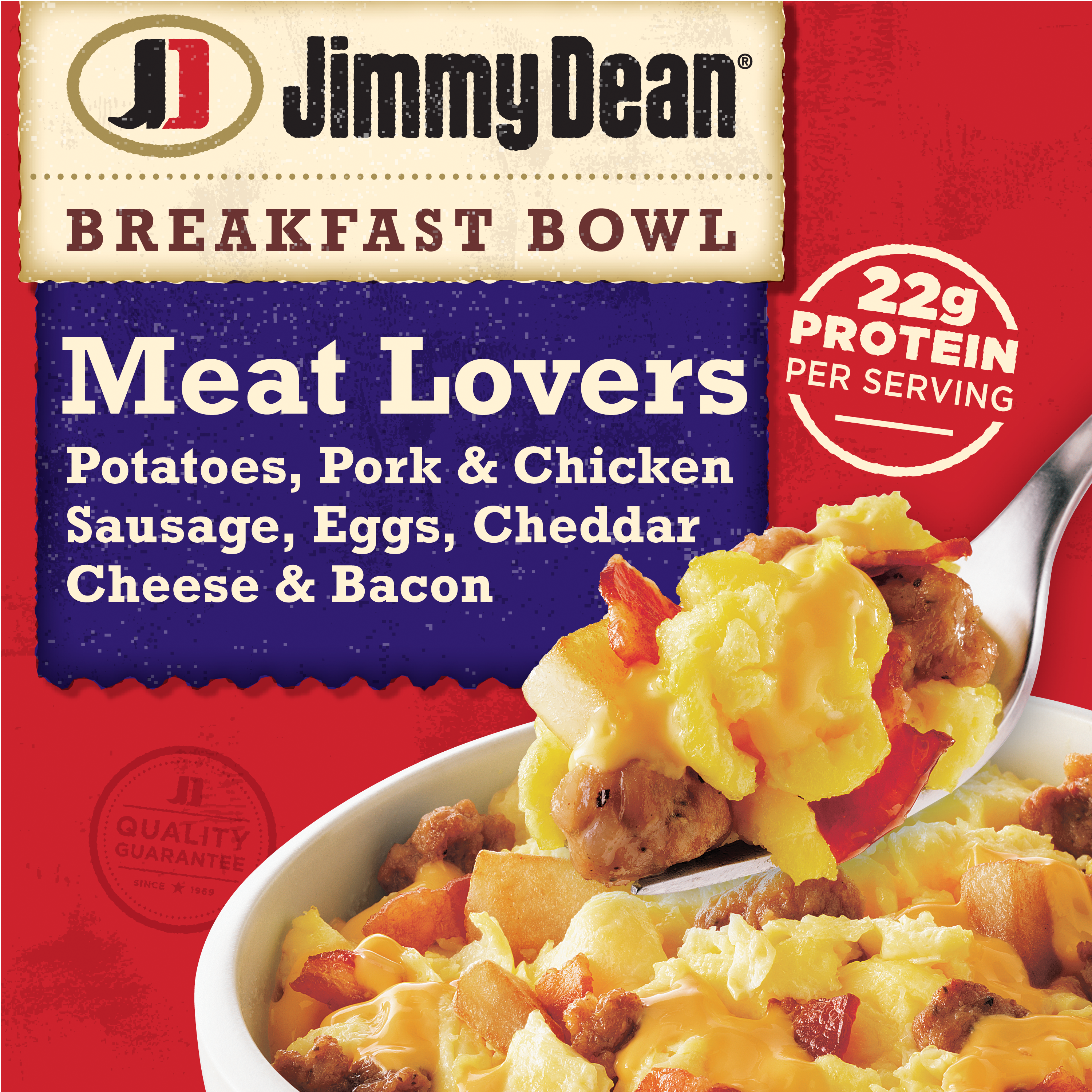 | Retail eCommerce Marketing Message | Jimmy Dean Meat Lovers Breakfast Bowl has all of your breakfast favorites together. It's filled with sausage, bacon, eggs, potatoes, and cheddar cheese. This quick breakfast is simple and ready in minutes. Be sure to fully cook this frozen breakfast. Today, Jimmy Dean Brand brings you many ways to add some sunshine to your morning. Because today's your day to shine on. |