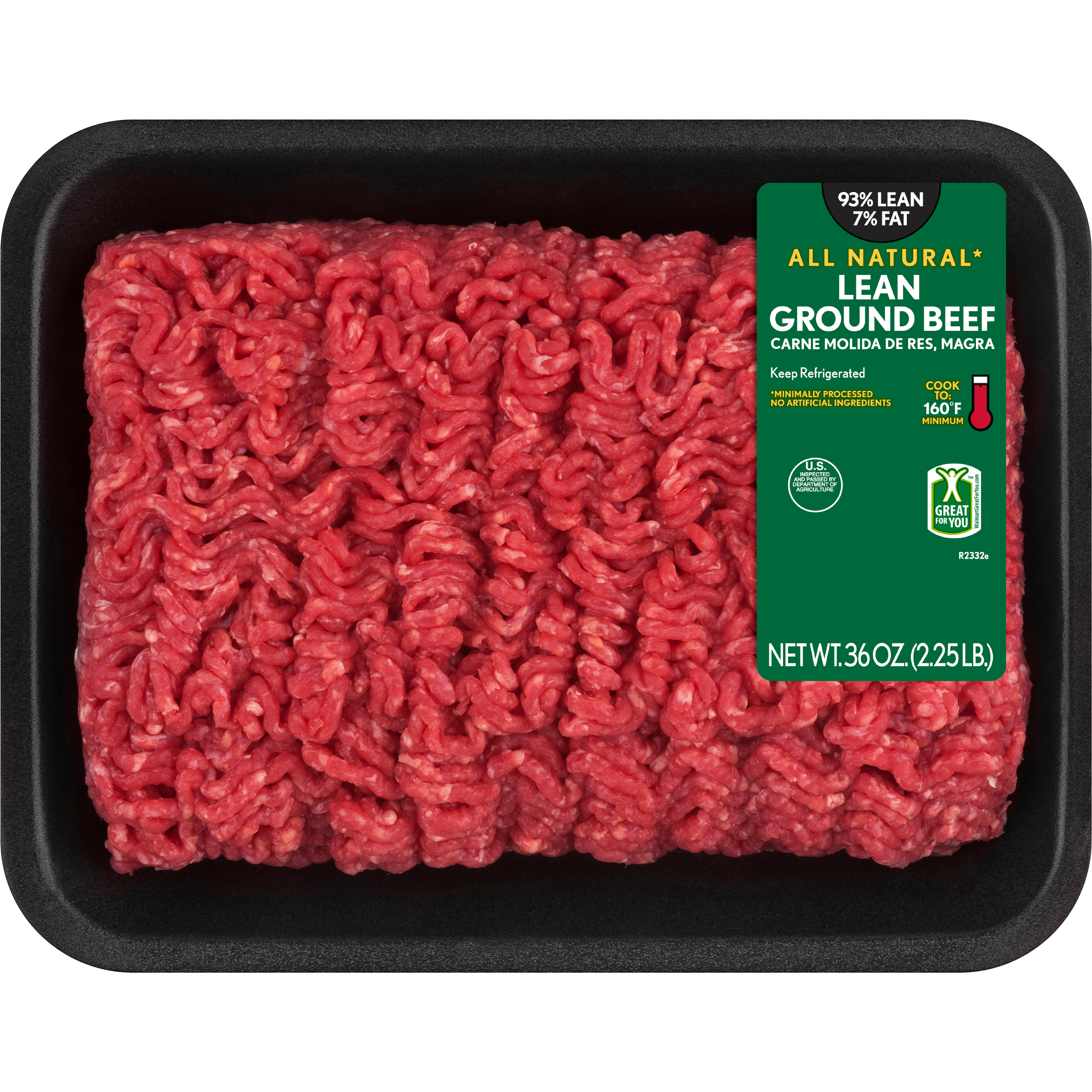 | Retail eCommerce Marketing Message | There's nothing like cooking from scratch, especially when you start with All Natural 93% Lean/7% Fat Lean Ground Beef. Made with quality USDA inspected beef and no artificial ingredients, our all natural* ground beef is juicy, tender and wet aged for flavor. Our beef is an excellent source of protein, vitamin B6, vitamin B12, zinc, niacin, selenium and a good source of phosphorous, riboflavin and iron. All 9 essential nutrients are naturally found in beef and are a flavorful way to give your body nutrients to help power through the day. Great for sautéing or grilling, our ground beef is a delicious addition to your favorite recipes. Simply cook and serve with asparagus, bow tie pasta and pesto sauce for a hearty weeknight dinner. Ground Beef should be cooked to a safe internal temperature of 160°F. Includes one package. *Minimally processed, no artificial ingredients. |