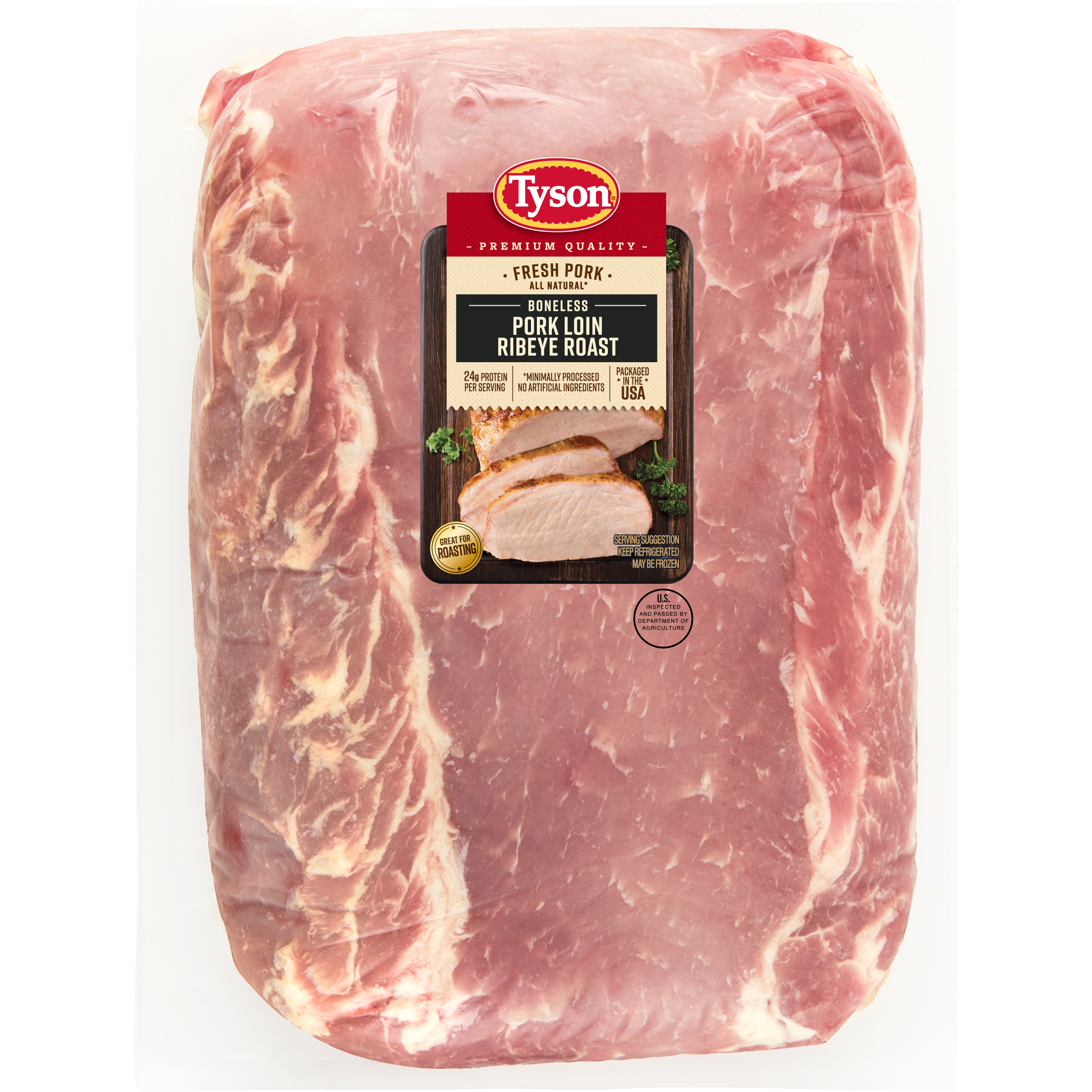 | Retail eCommerce Marketing Message | The Tyson® Ribeye Loin Pork Roast, Boneless is hand-selected quality cuts of USDA inspected fresh pork. Our pork is naturally tender and juicy with no artificial ingredients. Simply prepare in a slow cooker or on the smoker and serve for a hearty dinner. Includes one package of Tyson® Ribeye Loin Pork Roast, Boneless. *Minimally processed, no artificial ingredients |