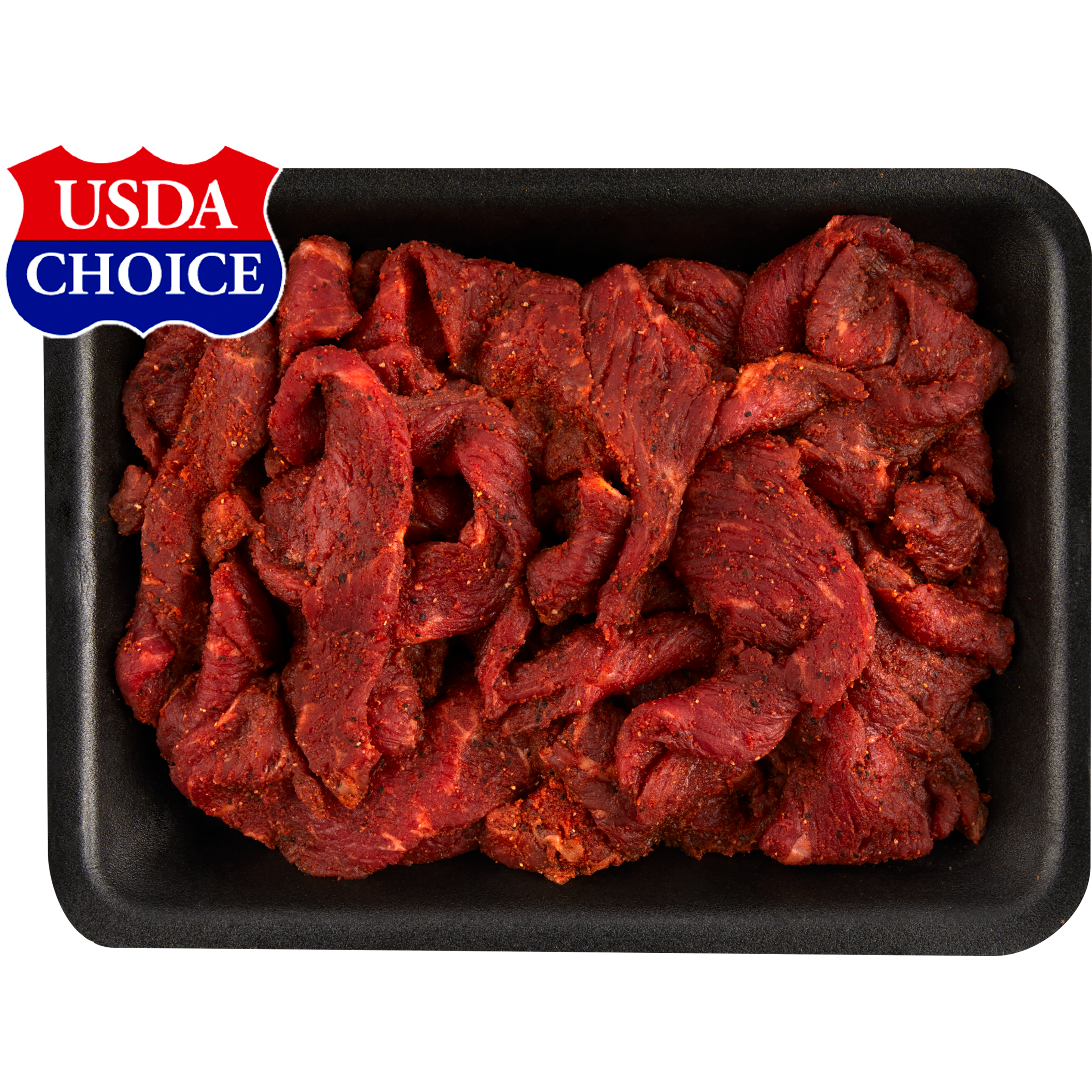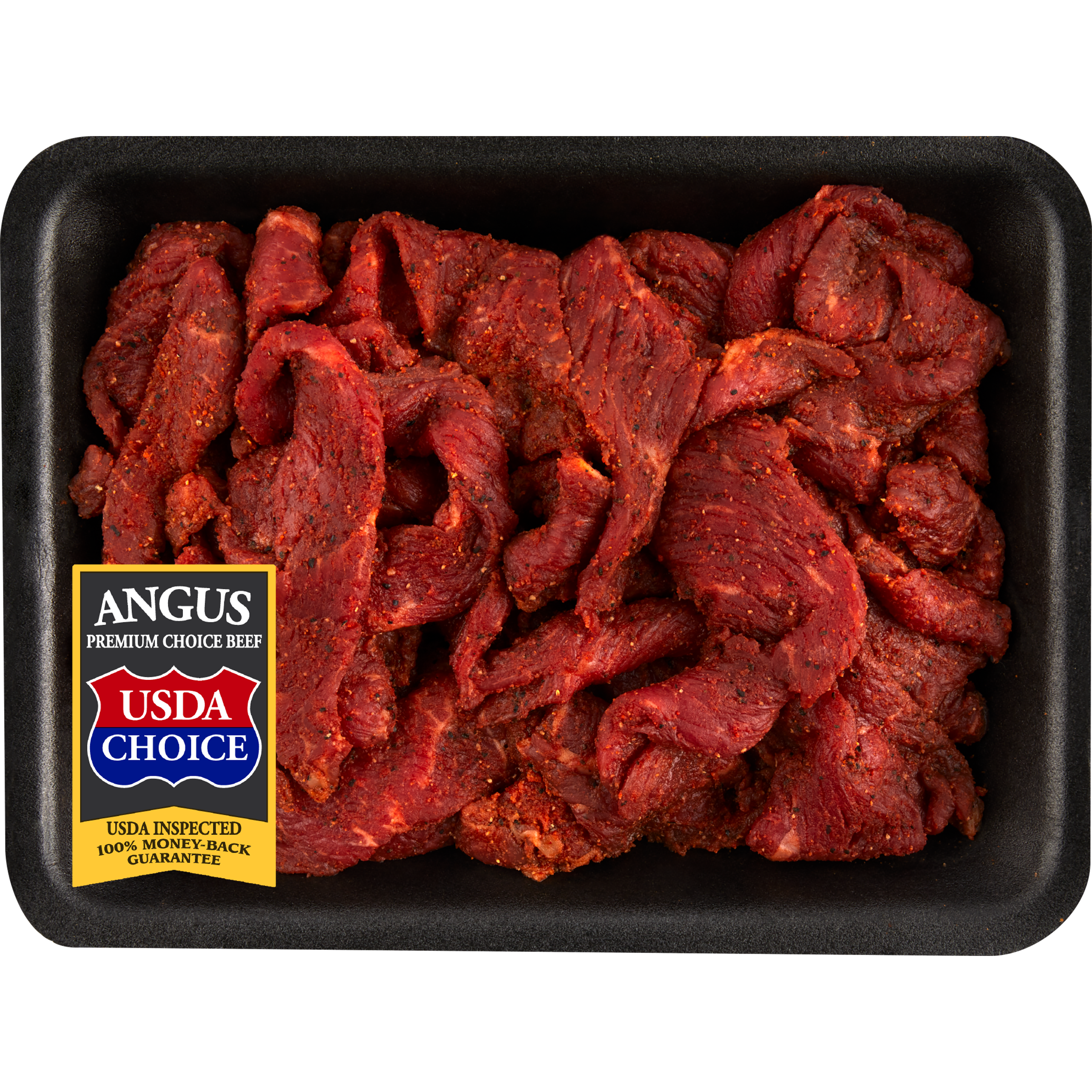 | Retail eCommerce Product Title | Beef Choice Angus Fajita-Seasoned Pre-Cut Strips, 1.12 lb (Avg Weight) |