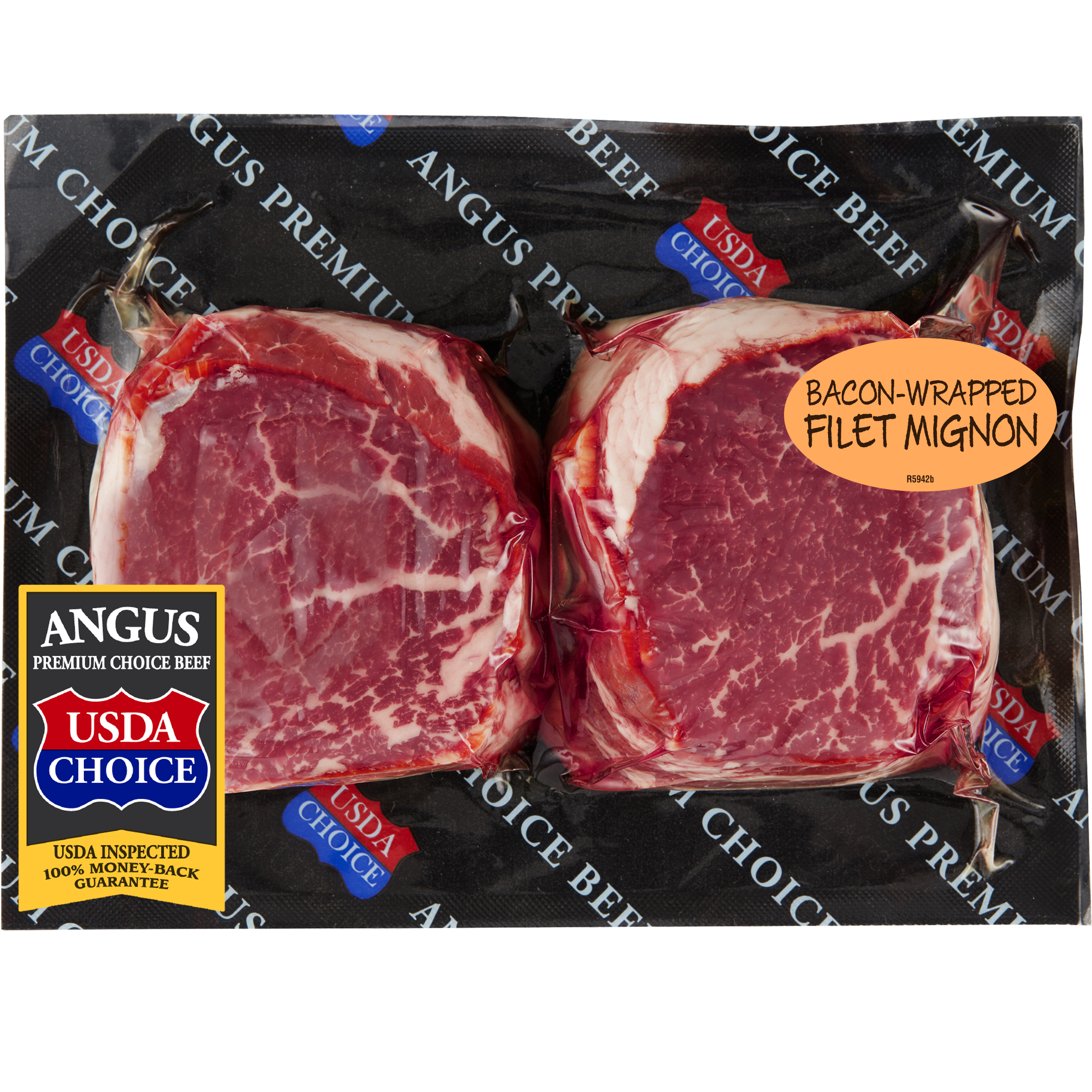 | Retail eCommerce Product Title | Beef Choice Angus Bacon-Wrapped Tenderloin, 0.78 lb (Avg Weight) |