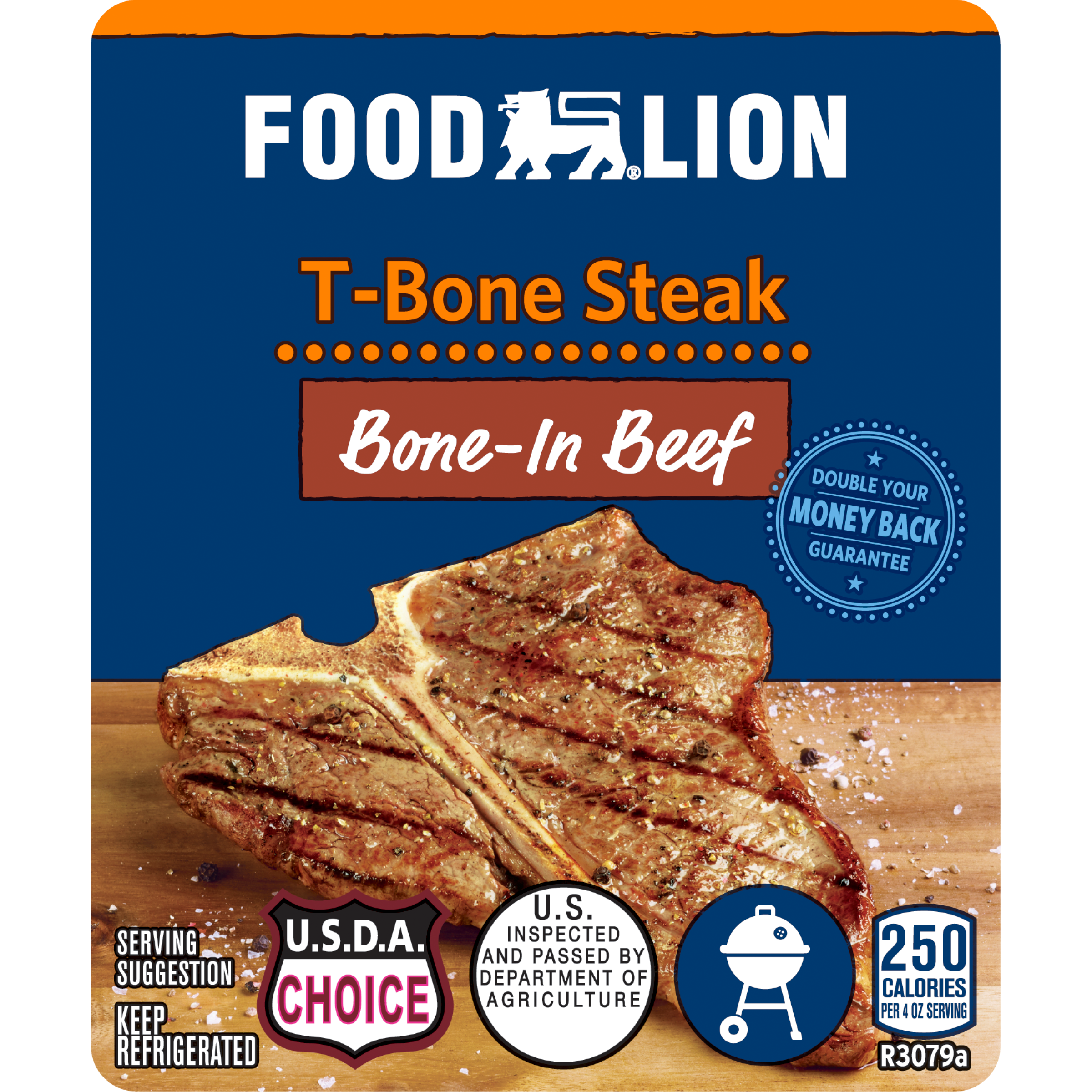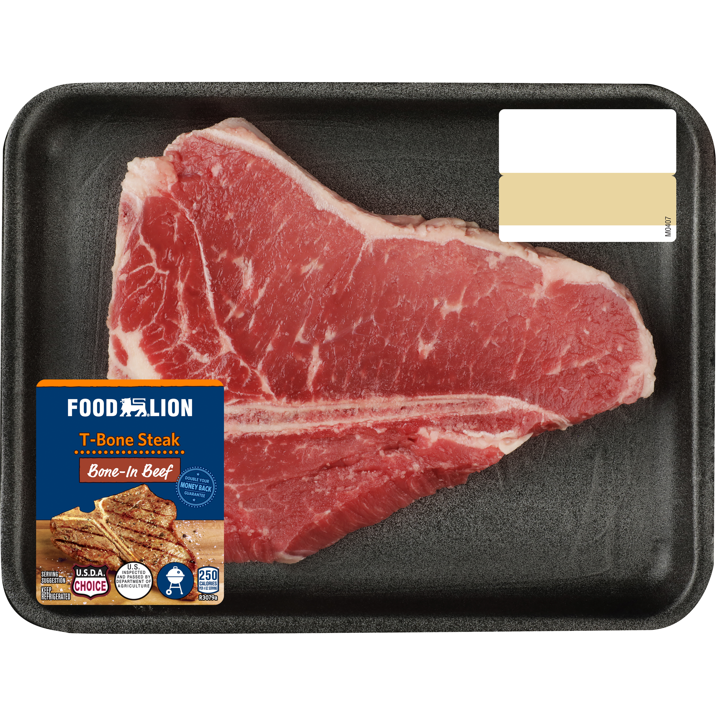 | Retail eCommerce Marketing Message | There's nothing like cooking from scratch, especially when you start with Food Lion Bone-In Beef T-Bone Steak. Our steak is juicy, tender and filled with flavor. Our beef is an excellent source of protein, vitamin B6, vitamin B12, zinc, niacin, selenium and a good source of phosphorous, riboflavin and iron. All 9 essential nutrients are naturally found in beef and are a flavorful way to give your body nutrients to help power through the day. Great for grilling, our steak is a delicious addition to your favorite recipes. Simply cook and serve with red wine sauce and sautéed asparagus and potatoes for a delicious weekend dinner. For medium rare, the internal temperature should read 145°F, the temperature for medium steaks should read 160°F and well done is 170°F. This product is wet aged for flavor. Includes one package of Bone-In Beef T-Bone Steak. |