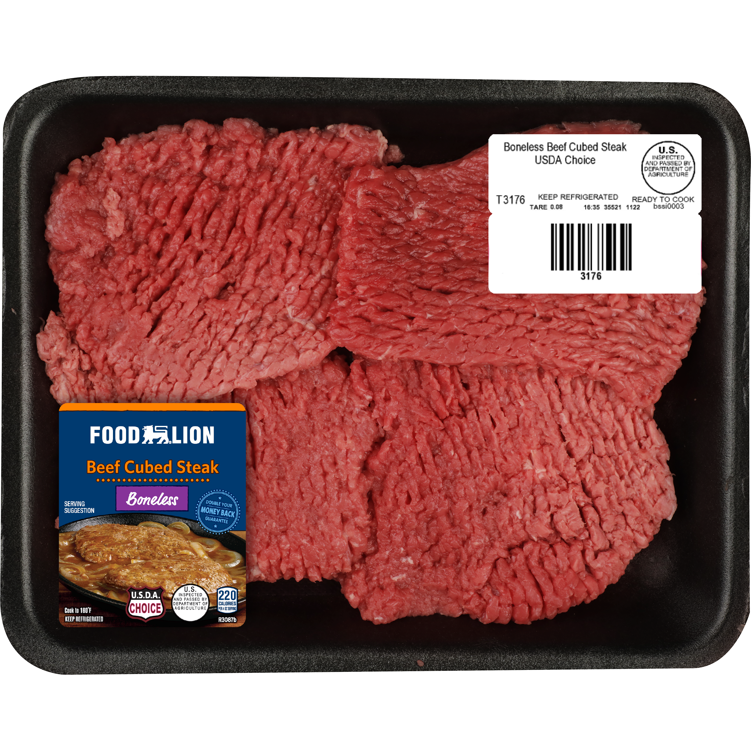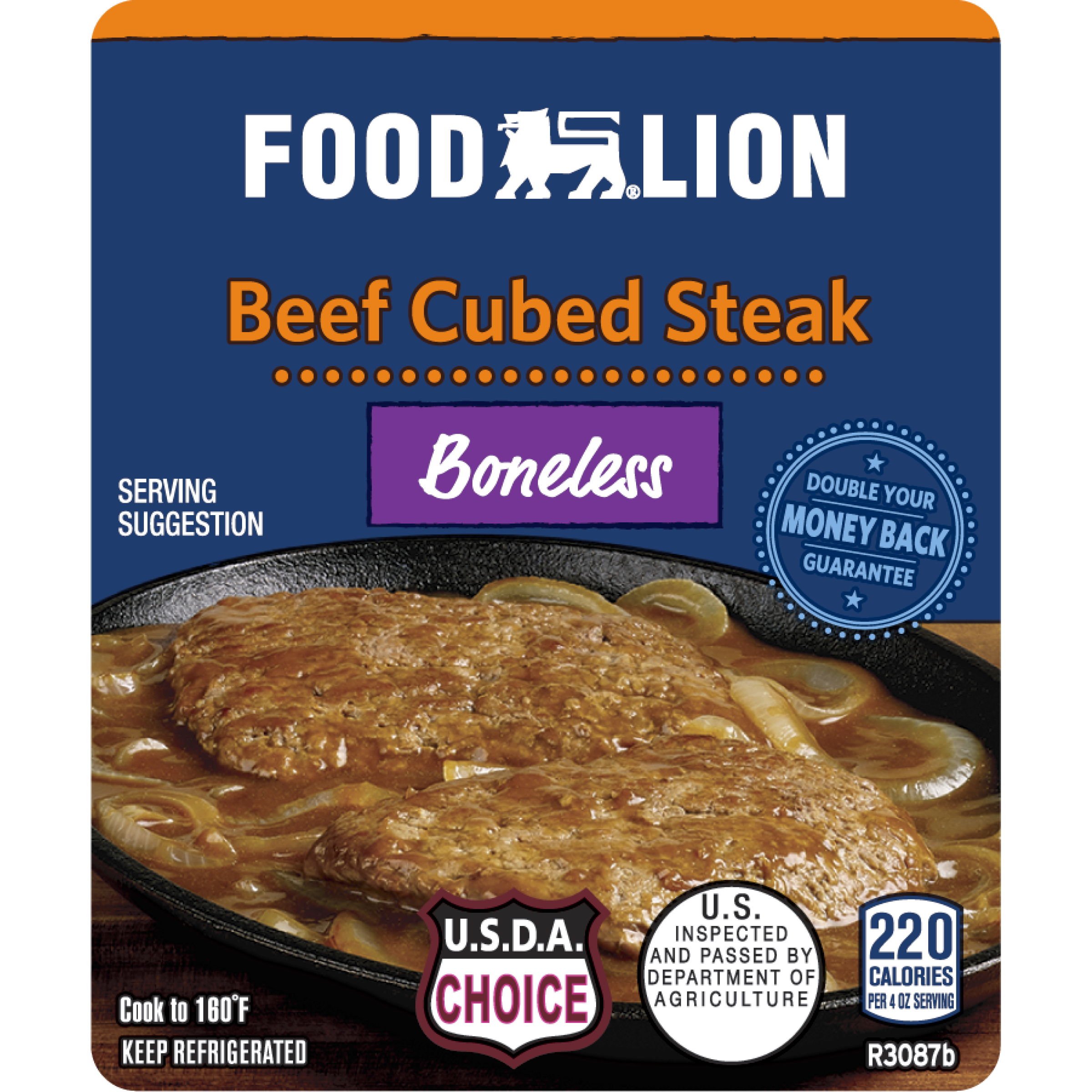 | Retail eCommerce Marketing Message | There's nothing like cooking from scratch, especially when you start with Food Lion Beef Cubed Steak. Made with quality USDA Select beef, our cubed steak is fresh, lean and tender. Our beef is an excellent source of protein, vitamin B6, vitamin B12, zinc, niacin, selenium and a good source of phosphorous, riboflavin and iron. All 9 essential nutrients are naturally found in beef and are a flavorful way to give your body nutrients to help power through the day. Great for grilling, our steak is a delicious addition to your favorite recipes. Simply cook and serve with grilled onion wedges and sliced pepper for a kabob appetizer. This product is wet aged for flavor. Includes one package. |