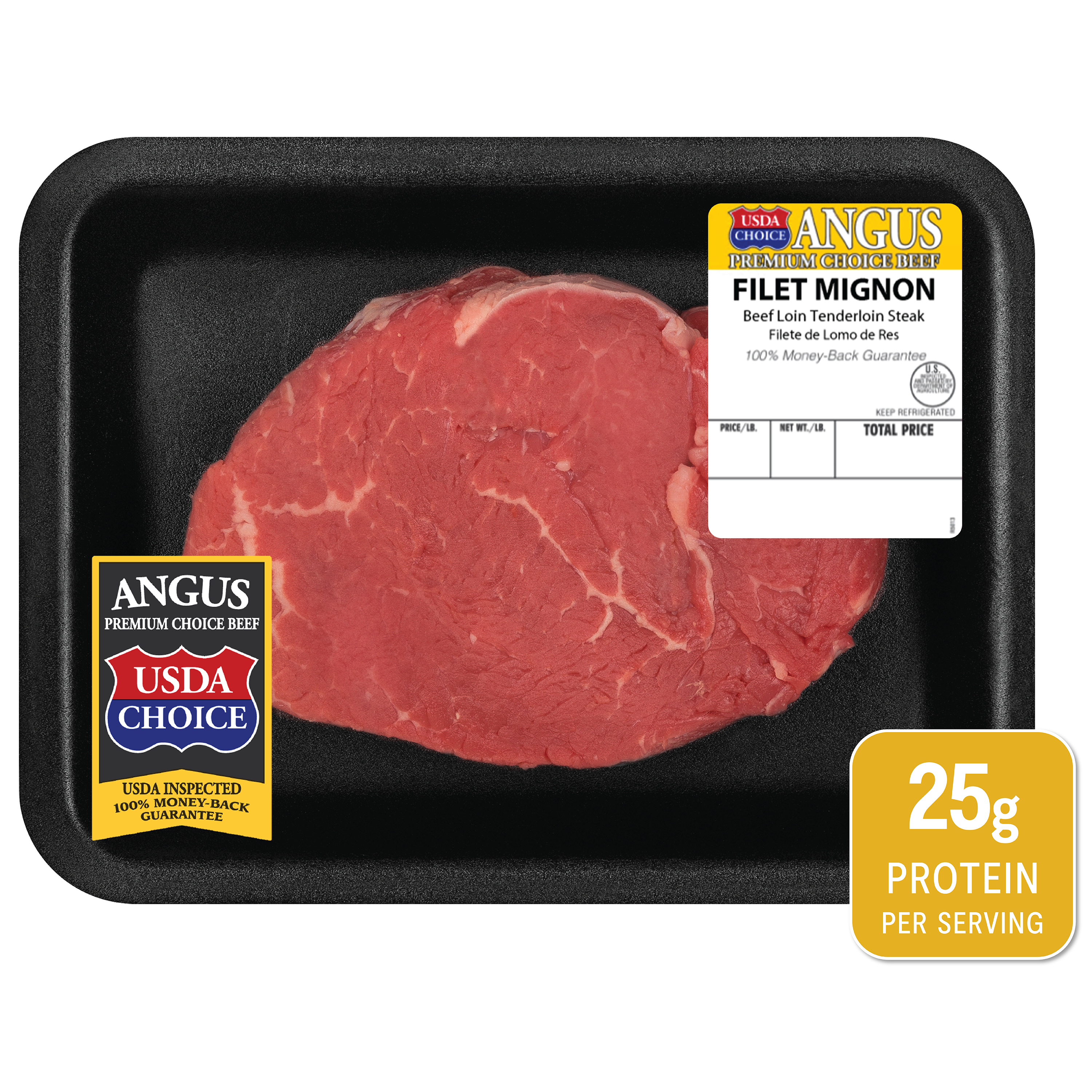 | Retail eCommerce Marketing Message | There's nothing like cooking from scratch, especially when you start with Beef Choice Angus Filet Mignon. Made with quality USDA Choice Angus beef, our steak is tender and succulent, with a fine buttery texture. Our beef is an excellent source of protein, vitamin B6, vitamin B12, zinc, niacin, selenium and a good source of phosphorous, riboflavin and iron. All 9 essential nutrients are naturally found in beef and are a flavorful way to give your body nutrients to help power through the day. Great for grilling, our steak is a delicious addition to your favorite recipes. Simply cook and serve with red wine sauce and sautéed asparagus and potatoes for a delicious weekend dinner. This product is wet aged for flavor. Includes one package of Beef Choice Angus Filet Mignon. |