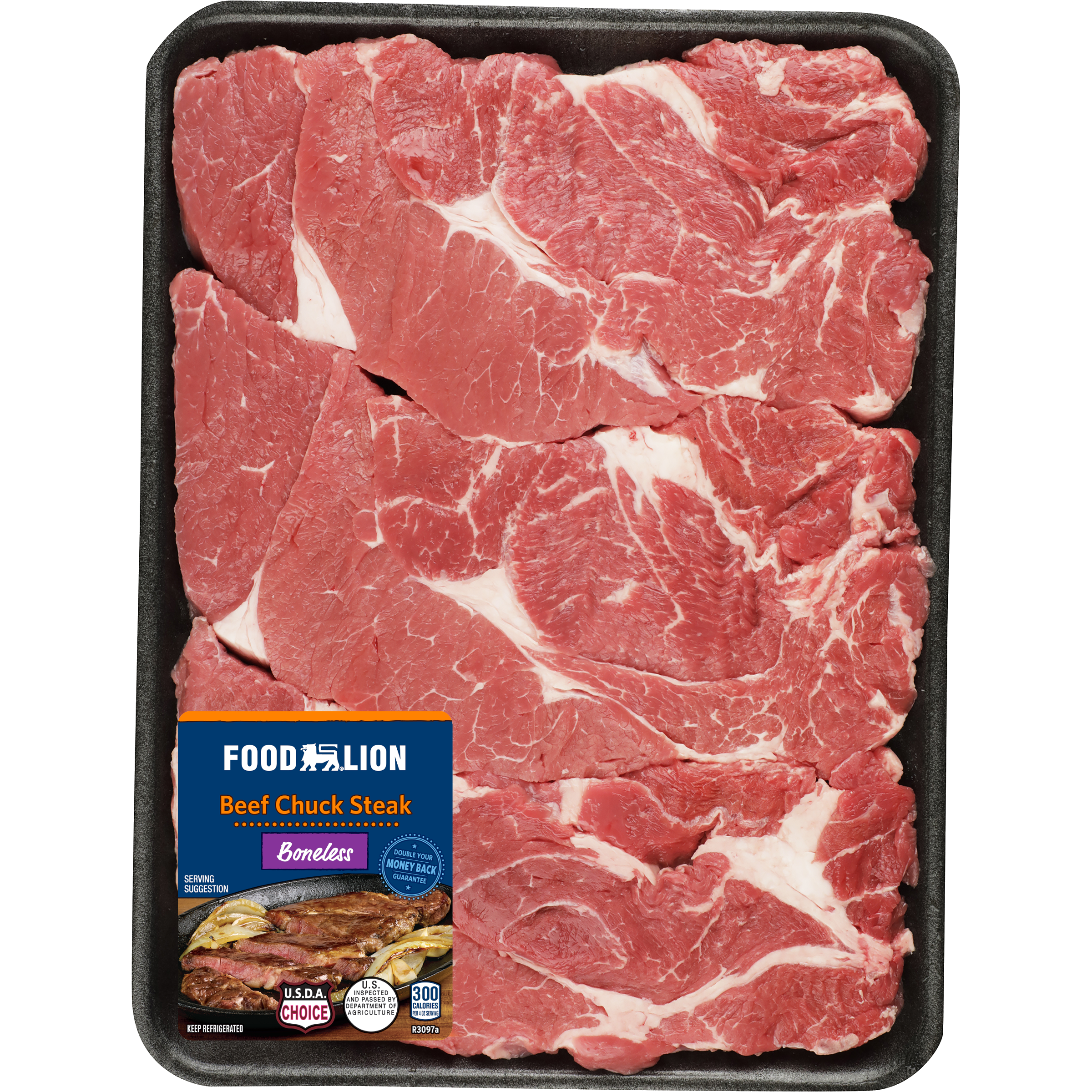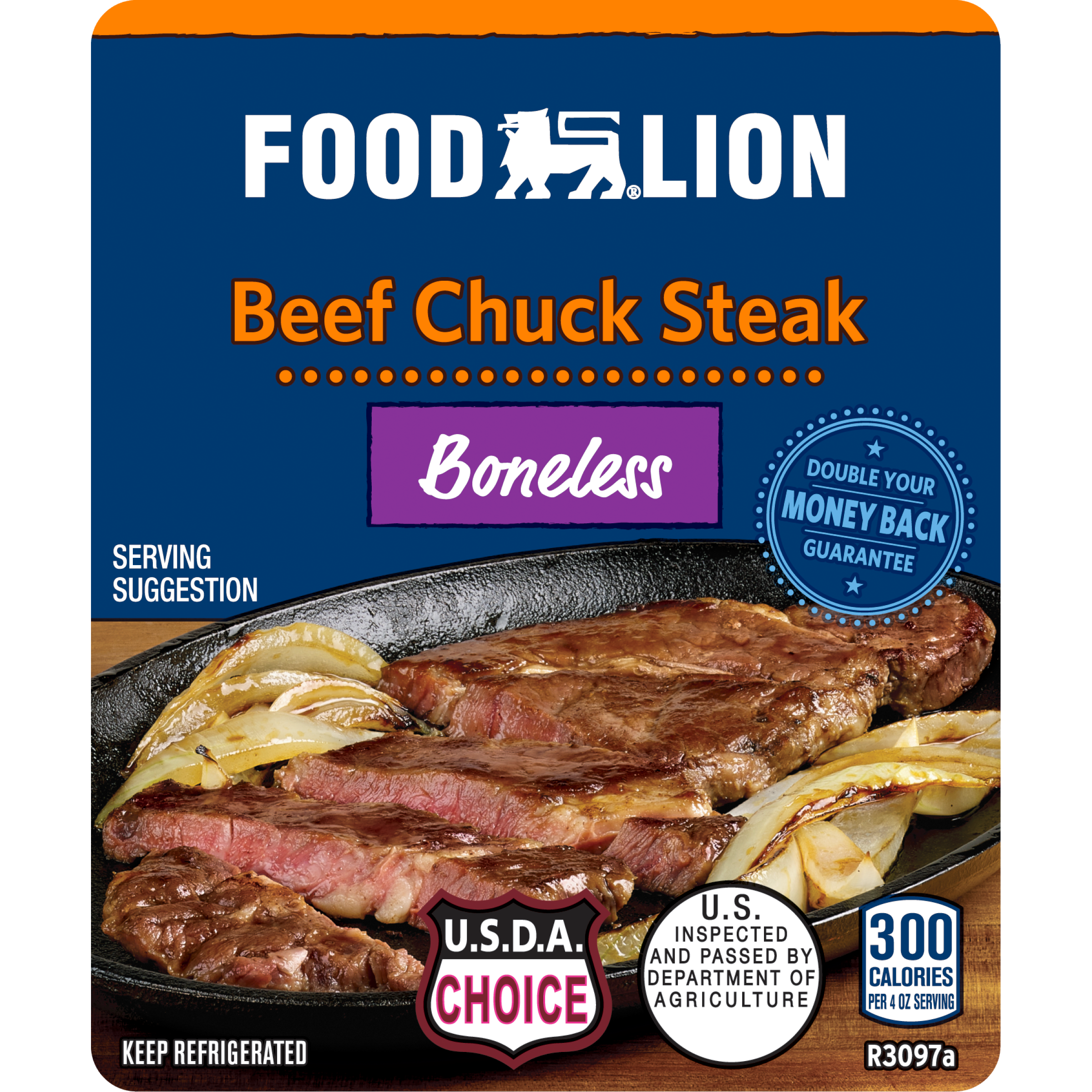 | Retail eCommerce Marketing Message | There's nothing like cooking from scratch, especially when you start with Food Lion Beef Chuck Steak. Made with quality USDA inspected beef, our steak yields cuts known for their rich, savory flavor. Our beef is an excellent source of protein, vitamin B6, vitamin B12, zinc, niacin, selenium and a good source of phosphorous, riboflavin and iron. All 9 essential minerals are naturally found in beef and are a flavorful way to give your body nutrients to help power through the day. Great for grilling, our steak is a delicious addition to your favorite recipes. Simply cook and serve with spicy cheddar grits and corn for a flavorful weeknight dinner. For medium rare, the internal temperature should read 145°F, the temperature for medium steaks should read 160°F and well done is 170°F. Includes one package of Beef Chuck Steak. |