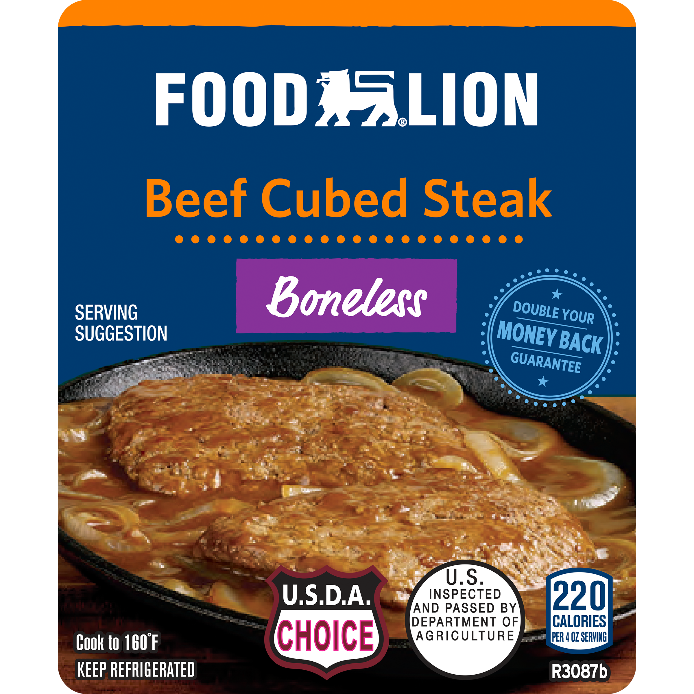 | Retail eCommerce Marketing Message | There's nothing like cooking from scratch, especially when you start with Food Lion Beef Cubed Steak. Made with quality USDA Select beef, our cubed steak is fresh, lean and tender. Our beef is an excellent source of protein, vitamin B6, vitamin B12, zinc, niacin, selenium and a good source of phosphorous, riboflavin and iron. All 9 essential nutrients are naturally found in beef and are a flavorful way to give your body nutrients to help power through the day. Great for grilling, our steak is a delicious addition to your favorite recipes. Simply cook and serve with grilled onion wedges and sliced pepper for a kabob appetizer. This product is wet aged for flavor. Includes one package. |