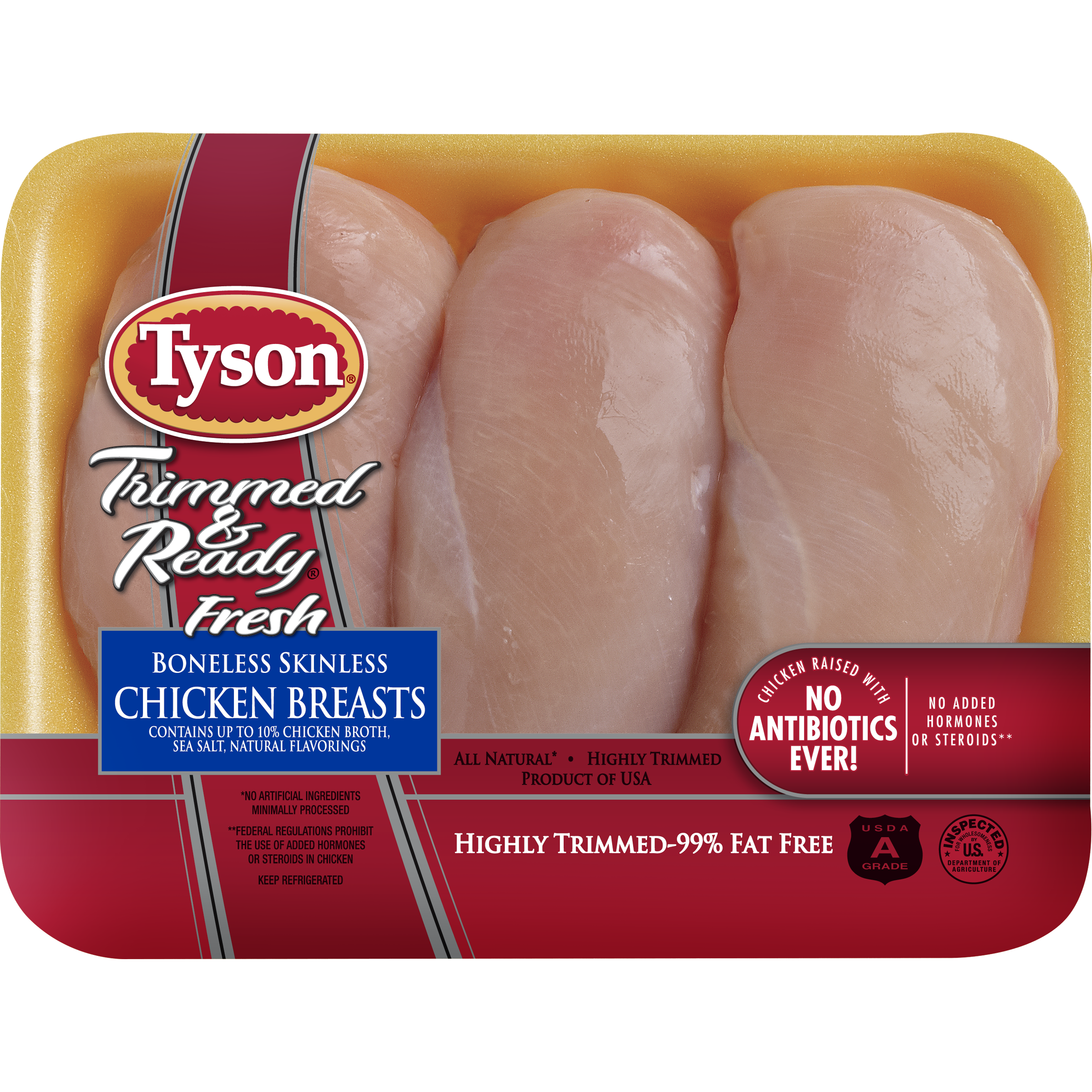 | Retail eCommerce Marketing Message | There's nothing like cooking from scratch, especially when you start with Tyson Boneless Skinless Chicken Breasts with Rib Meat. Raised with no antibiotics ever and no added preservatives, our all-Natural Boneless chicken breasts with BBQ sauce for a quick and delicious weeknight dinner. Includes one package, weight may vary. Everything seems to turn out a whole lot better when you just keep it simple. No nonsense. Just stick to the good stuff. The 100% real stuff that makes life, and chicken, great. With farm raised chicken of the highest quality, with no antibiotics ever, we keep it real in everything we do. Keep it real. Keep it Tyson. *Minimally processed, no artificial ingredients. |