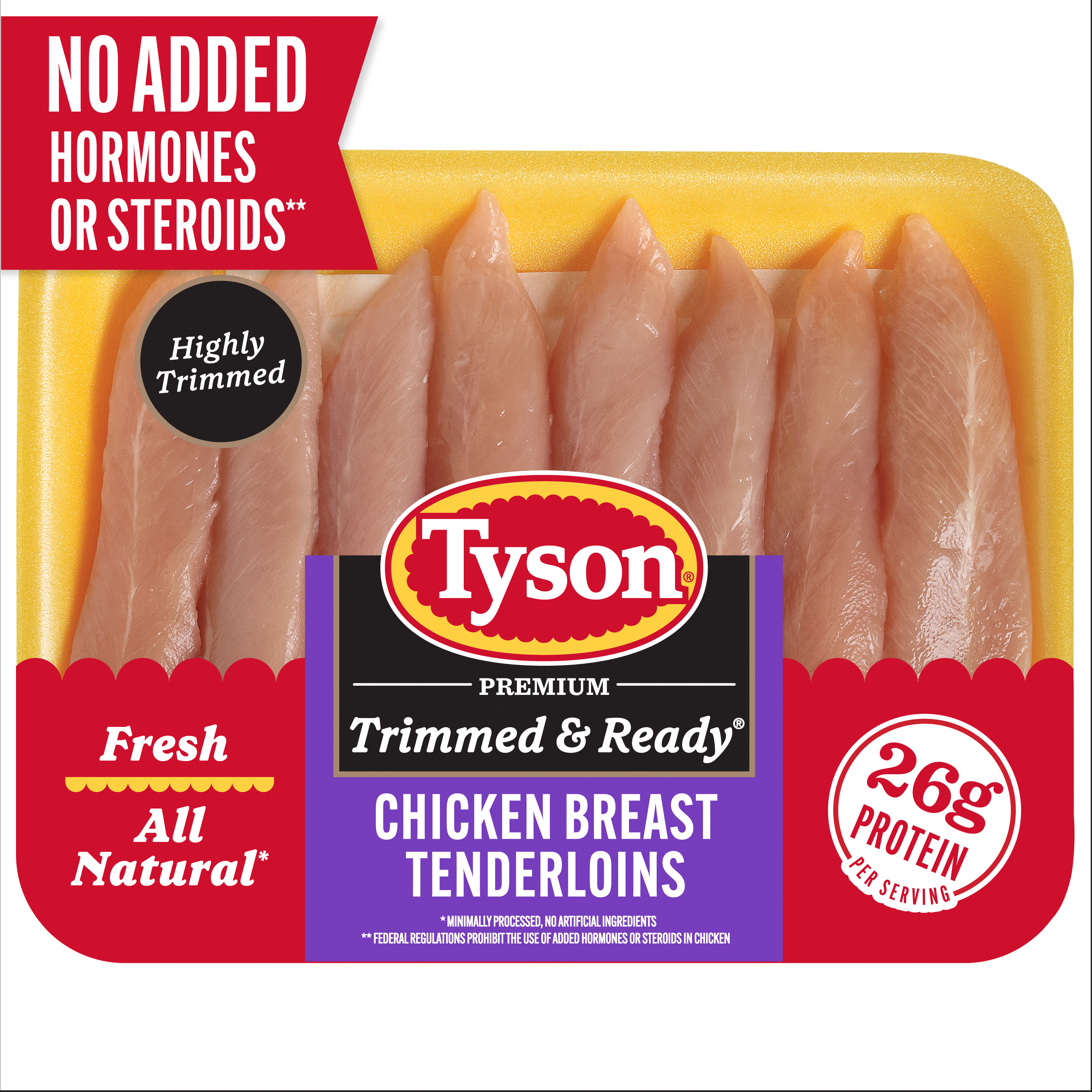 | Retail eCommerce Marketing Message | There's nothing like cooking from scratch, especially when you start with Tyson Trimmed & Ready All Natural* Chicken Breast Tenderloins. Our all-natural* chicken is juicy and tender. Perfect for grilling and frying, simply cook and serve our chicken breast tenderloins with Teriyaki sauce for a quick and delicious weeknight dinner. Includes one package Tyson Trimmed & Ready All Natural* Chicken Breast Tenderloins. Everything seems to turn out a whole lot better when you just keep it simple. No nonsense. Just stick to the good stuff. The 100% real stuff that makes life, and chicken, great. With high quality farm raised chicken, we keep it real in everything we do. Keep it real. Keep it Tyson. *No Artificial Ingredients, Minimally Processed |