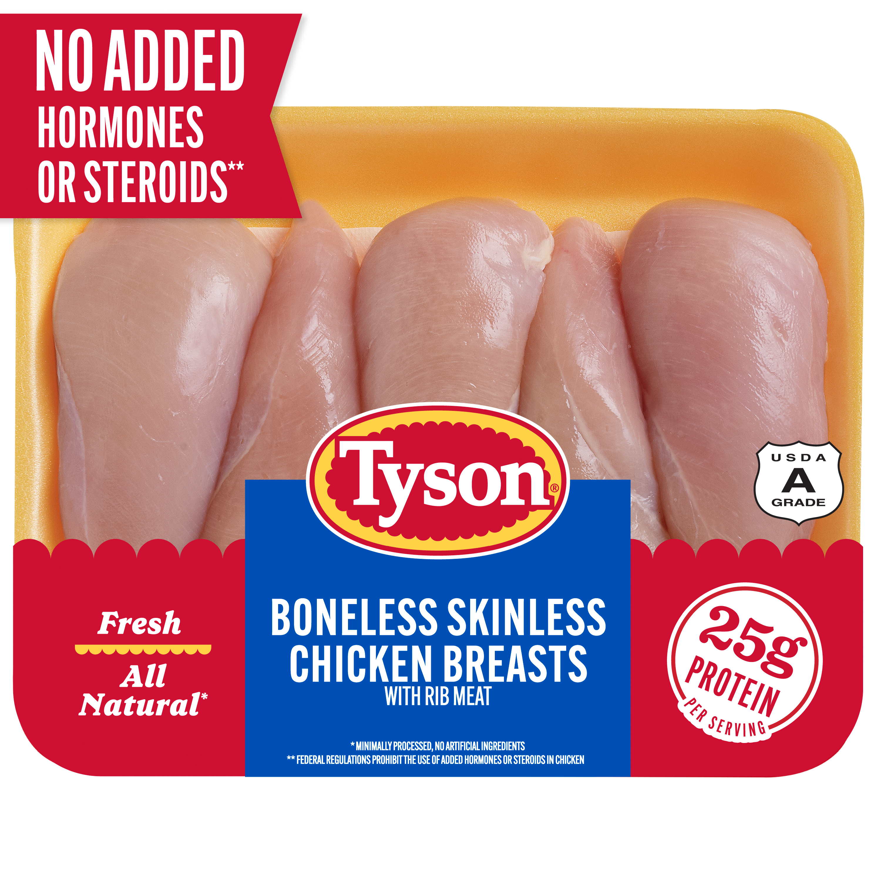 | Retail eCommerce Product Title | Tyson All Natural, Fresh, Boneless, Skinless Chicken Breasts, 2.5 - 4.0 lb Tray |