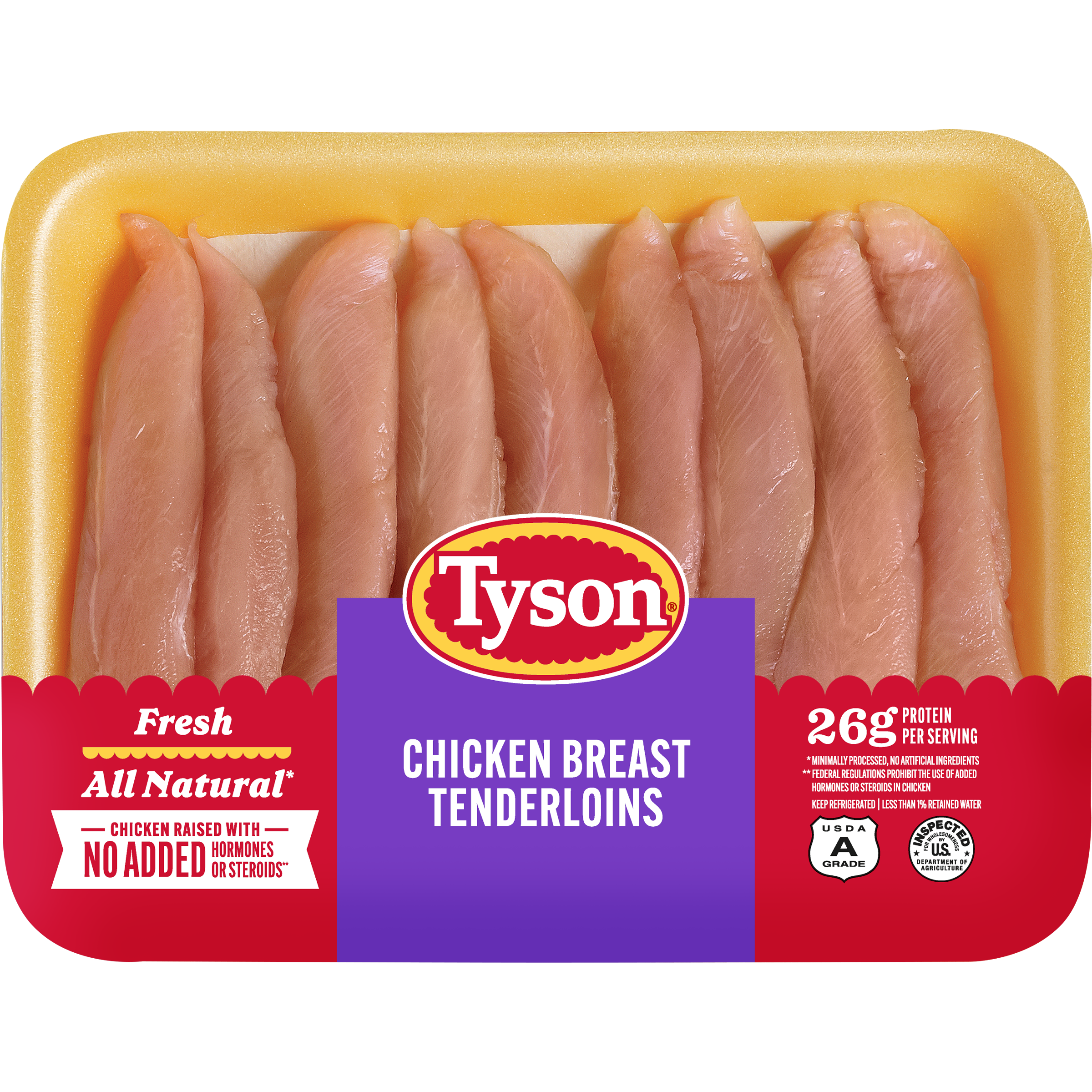 | Retail eCommerce Marketing Message | There's nothing like cooking from scratch, especially when you start with Tyson Boneless Skinless Chicken Breast Tenderloins. Our all-natural* chicken is juicy and tender. Perfect for grilling and frying, simply cook and serve our chicken breast tenderloins with Teriyaki sauce for a quick and delicious weeknight dinner. Includes one 1.25 lb package, weight may vary. Everything seems to turn out a whole lot better when you just keep it simple. No nonsense. Just stick to the good stuff. The 100% real stuff that makes life, and chicken, great. With farm raised chicken of the highest quality, we keep it real in everything we do. Keep it real. Keep it Tyson. *Minimally processed, no artificial ingredients. |
