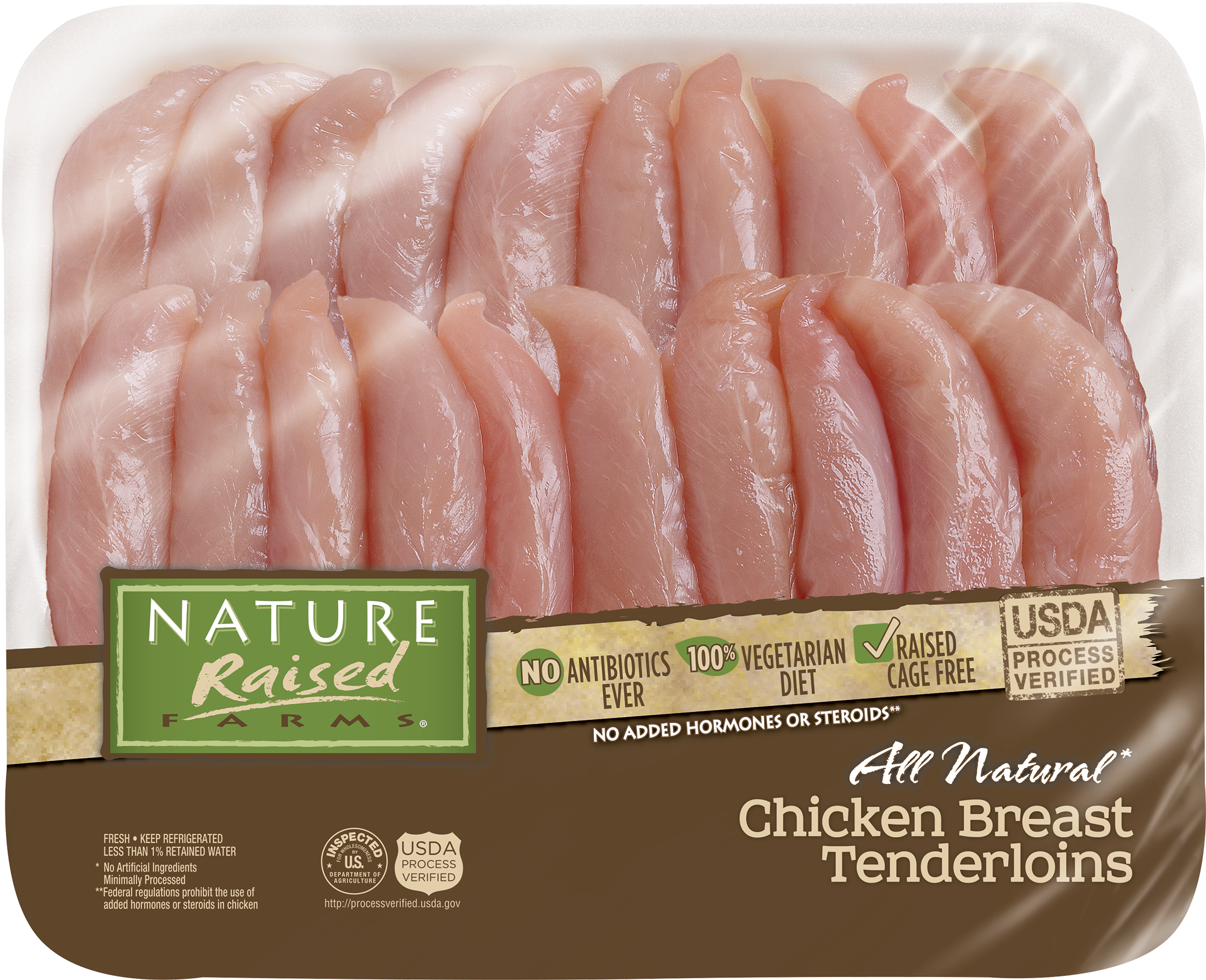 | Retail eCommerce Marketing Message | Start your grill and get cooking with NatureRaised Farms Boneless Skinless Chicken Breast Tenderloins. Our USDA Grade A Chicken is raised on a 100% vegetarian diet with no antibiotics ever for juicy, all-natural* chicken tenderloins that are perfect for all your favorite sauces, spice rubs, and marinades. Simply grill and serve with your favorite barbecue sauce for a quick weeknight dinner. At NatureRaised Farms, we believe the meats you set on your table should be as good as the care that goes into raising our animals. Our farmers share our commitment to bring you only tasty, wholesome chicken with no added hormones**, steroids**, or antibiotics ever. We think this is the right way to farm, and we hope you'll agree. At NatureRaised Farms, our values come through in every delicious bite. *Minimally processed, no artificial ingredients. **Federal regulations prohibit the use of added hormones or steroids in chicken. |