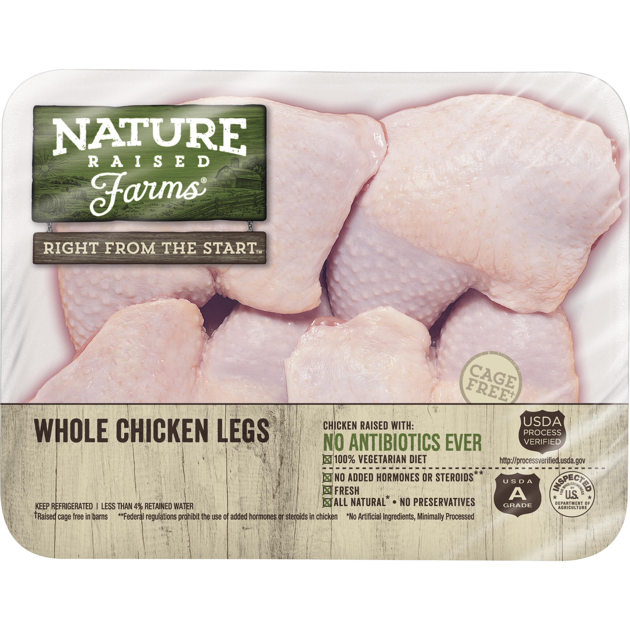| Retail eCommerce Marketing Message | Start your grill and get cooking with NatureRaised Farms Whole Chicken Legs. Our USDA Grade A Chicken is raised on a 100% vegetarian diet with no antibiotics ever for juicy, all-natural* chicken legs that are perfect for all your favorite sauces, spice rubs, and marinades. Simply grill and serve with your favorite barbecue sauce for a quick weeknight dinner. Includes one package of chicken legs. At NatureRaised Farms, we believe the meats you set on your table should be as good as the care that goes into raising our animals. Our farmers share our commitment to bring you only tasty, wholesome chicken with no added hormones**, steroids**, or antibiotics ever. We think this is the right way to farm, and we hope you'll agree. At NatureRaised Farms, our values come through in every delicious bite. *Minimally processed, no artificial ingredients. **Federal regulations prohibit the use of added hormones or steroids in chicken. |