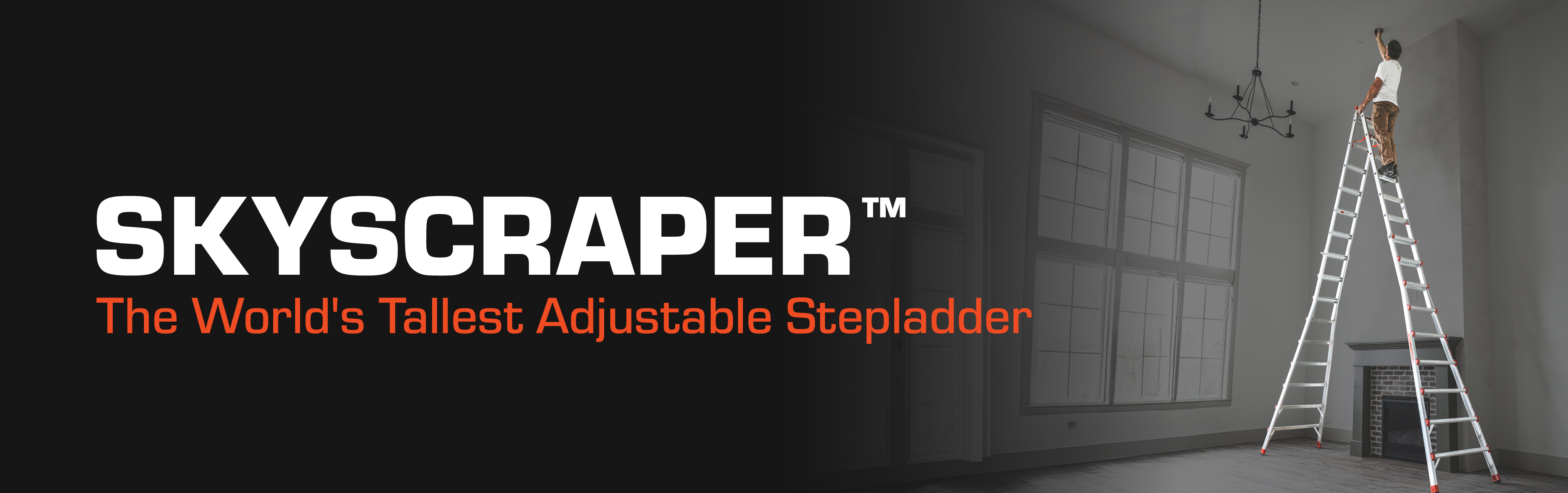 Material Aluminum Duty Rating (Type) ANSI Type IA-300lbs Duty Rating (Weight) 300 lbs. Country of Origin USA Ladder Weight (lbs) 71.3 Stepladder Max Reach (in.) 225 Stepladder Max Highest Standing Level (in.) 147 Stepladder Min Highest Standing Level (in.) 69 Stepladder Minimum Footprint (in.) 65.5 Stepladder Maximum Footprint (in.) 130 Storage Height (in.) 103 Storage Width (in.) 37.5 Storage Depth (in.) 8 Top Width (in.) 18.875 Clear Width (in.) 13 Inside Clear Width (in.) 13 Inner Rung Width (in.) 1 Outer Rung Width (in.) 1.125 Double Rung Width (in.) 3.25 Marketing Collateral http://images.salsify.com/image/upload/s--jZYLzaFh--/mtqvp3i1krwnttfz2ccx.pdf Marketing Description Skyscraper Adjustable Stepladders, Type IA - Extra Heavy Duty, 15ft Long Marketing Copy Your job has tall ceilings and hard-to-reach places which require you to use lifts or scaffolding to perform maintenance. Sometimes these options are bulky, preventing you from getting the work done. The Little Giant® SkyScraper™ adjustable stepladder helps you complete those tasks more easily. The SkyScraper is a stepladder designed to help you reach chandeliers, skylights and other difficult positions in rooms with high vaulted ceilings. Since the SkyScraper is adjustable, it works around obstacles like benches and stadium seating. While the SkyScraper reaches all those hard-to-reach jobs, it stores in just over half of its maximum extended height. The SkyScraper is rated to hold 300 lbs. on both sides and meets or exceeds all OSHA and ANSI standards. Marketing Bullet 1 Skyscraper, 21 ft Model - ANSI Type IA - 300 Lb rated, aluminum adjustable stepladder Marketing Bullet 2 Two-sided, two-person stepladder ANSI rated to hold up to 300-lbs Marketing Bullet 3 Fully adjustable for stable use on stairs, curbs ramps, and more Marketing Bullet 4 Complies with all applicable OSHA and ANSI standards Marketing Bullet 5 Ultra-light and strong aerospace-grade aluminum construction Marketing Bullet 6 A-frame height: 11 to 21 ft Marketing Bullet 7 Stores at 11 ft 7 in Marketing Bullet 8 Assembled in the USA Marketing Bullet 9 5-Year limited warranty Freight Class 300 Freight Class Description AL and/or FG Ladder NMFC 108775-05 Shipping Method LTL Shipping Length (Ft.) 8' 10" Shipping Length (in.) 106 Shipping Width (Ft.) 3' 5" Shipping Width (in.) 41 Shipping Height (Ft.) 0' 8" Shipping Height (in.) 8 Ship Weight 81.5 Pallet Size 48 x 40 x 5 Palletized Length 119 Palletized Width 48 Palletized Height 80 Palletized Weight 755 Qty per Pallet 10 Number of Pallets 2 Stackable Pallets No HTS Code 7616.99.5190 Warranty Statement Little Giant Warranty Terms and Conditions: Little Giant Ladder Systems warrants each new product t