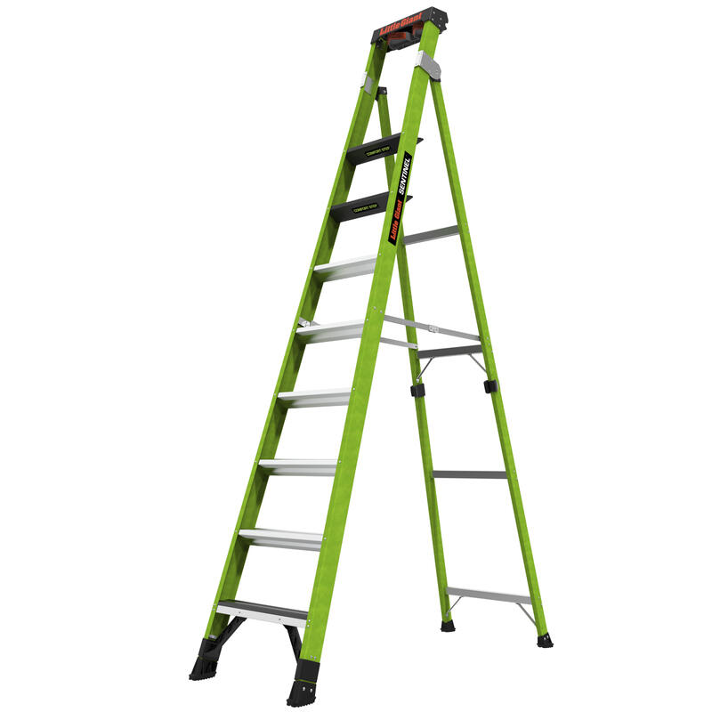 Material Fiberglass Duty Rating (Weight) 375 lbs. Country of Origin USA Ladder Weight (lbs) 40 Stepladder Max Reach (in.) 170 Stepladder Max Highest Standing Level (in.) 92 Stepladder Min Highest Standing Level (in.) 92 Stepladder Minimum Footprint (in.) 64 Stepladder Maximum Footprint (in.) 64 Extension Max Reach (in.) 158 Extension Max Highest Standing Level (in.) 80 Extension Minimum Highest Standing Level (in.) 80 Extension Max Working Length (in.) 120 Extension Minimum Working Length (in.) 120 Extension Total Length of Sections (in.) 104 Leaning Max Reach (in.) 158 Leaning Highest Standing Level (in.) 80 Storage Height (in.) 125 Storage Width (in.) 26 Storage Depth (in.) 7 Top Width (in.) 15 Clear Width (in.) 13.5 Inside Clear Width (in.) 13.5 Inner Rung Width (in.) 6 Outer Rung Width (in.) 3 Freight Class 300 Freight Class Description AL and/or FG Ladder NMFC 108775-05 Shipping Method LTL Shipping Length (Ft.) 10' 6" Shipping Length (in.) 126 Shipping Width (Ft.) 2' 3" Shipping Width (in.) 27 Shipping Height (Ft.) 0' 8" Shipping Height (in.) 8 Ship Weight 41.7 Pallet Size 48 x 40 x 5 Palletized Length 126 Palletized Width 48 Palletized Height 73 Palletized Weight 842 Qty per Pallet 20 Number of Pallets 2 Stackable Pallets No Marketing Collateral Marketing Description Sentinel Step Ladder, Type IAA - Special Duty, 10ft Marketing Bullet 1 Multi-position ladder converts from A-frame to leaning ladder Marketing Bullet 2 Rotating wall pad allows you to lean the ladder on inside and outside corners, walls and studs Marketing Bullet 3 Equipped with Ground Cue® bottom-rung signal for a safe descent from the ladder Marketing Bullet 4 Non-conductive, high-viz green fiberglass increases visibility and promotes safety Marketing Bullet 5 Top two standing rungs are extra wide, at 6.25” for optimal comfort Marketing Bullet 6 Available in 10’ and 12’ models Marketing Bullet 7 Rated Type IAA ladder to hold up to 375 lbs Marketing Bullet 8 This ladder meets or exceeds all OSHA and ANSI standards HTS Code 3926.90.9930 Warranty Statement Little Giant Warranty Terms and Conditions: Little Giant Ladder Systems warrants each new product t