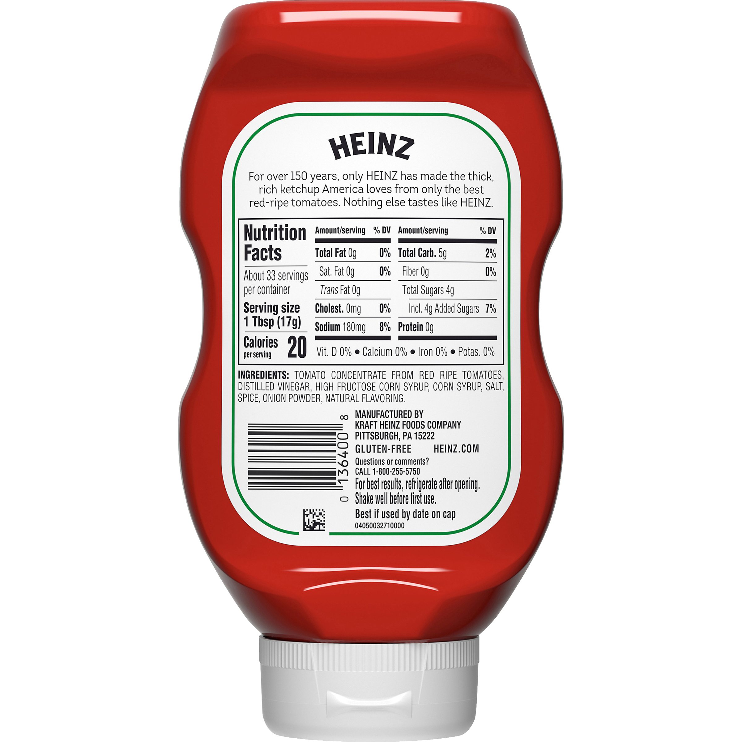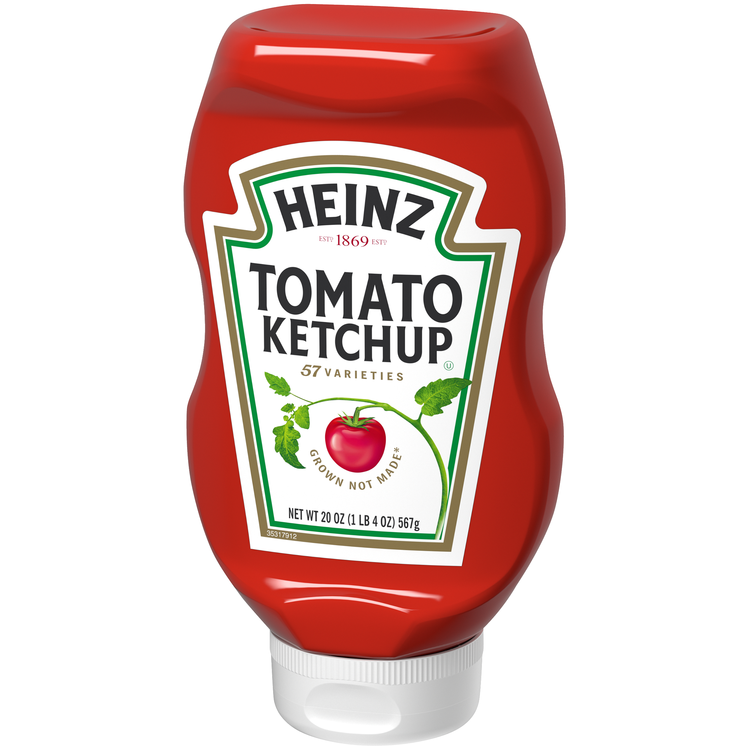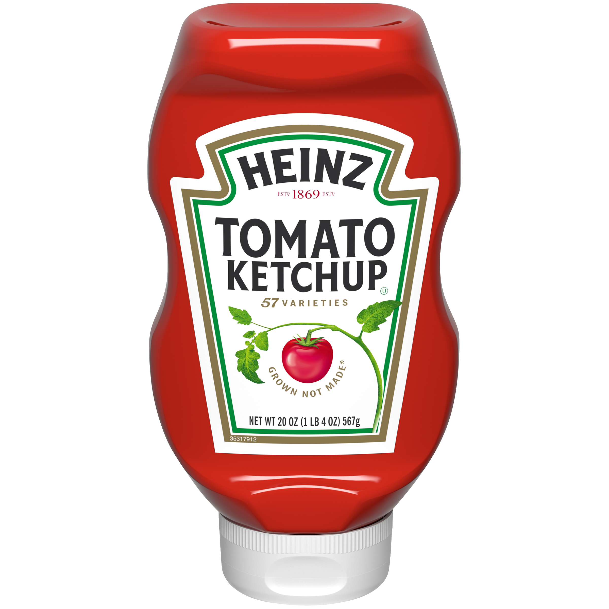 Product Description Heinz Tomato Ketchup is made only from sweet, juicy, red ripe tomatoes for the signature thick and rich taste of Americas Favorite Ketchup. Did you know that every tomato in every bottle of Heinz Ketchup is grown from Heinz seeds? Grown not made... One reason why nothing else tastes like Heinz! The thick texture makes our ketchup perfect as a topping or for dipping. It's gluten free and great for those keeping Kosher to fit your preferences. Reach for our ketchup at every cookout to top your favorite burgers, hot dogs and fries. Packed in 20-ounce ketchup bottles for easy sharing, this condiment is your go-to option for gatherings and everyday meals.