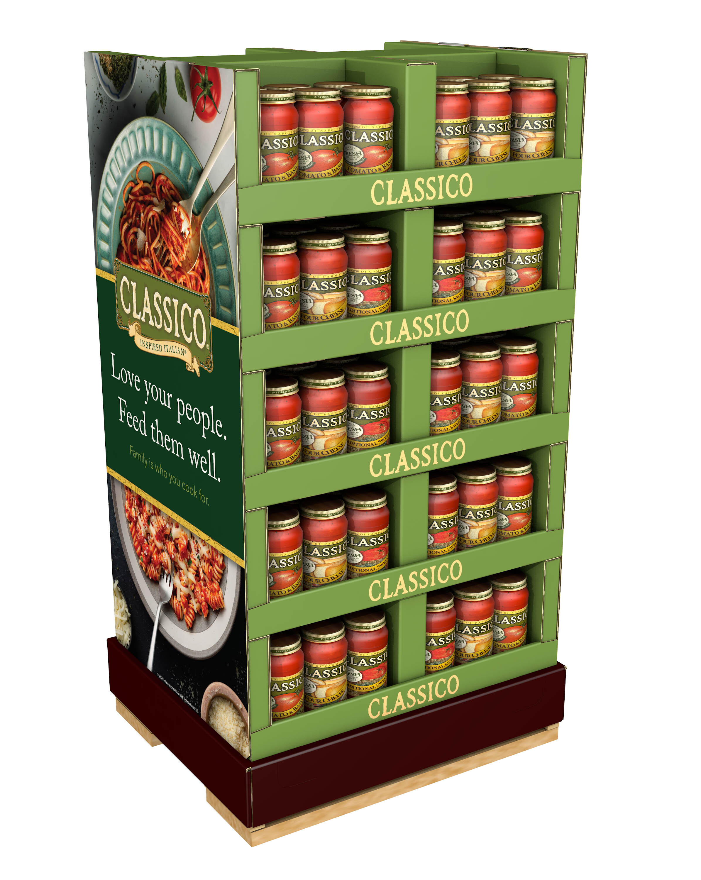 Parent Relation PALLET_20013000012281 Cases per Tier 4 Tiers per Pallet 1 Cases per Pallet 4 Pallet Stack Limit 2 Product Title 24Z CLASSICO CK IN SAUCE eCommerce Product Name (Generic Name) Tomato & Basil Pasta Sauce Product Benefits (Includes Seasonal + Formatting) - One 24 oz jar of Classico Tomato & Basil Pasta Sauce