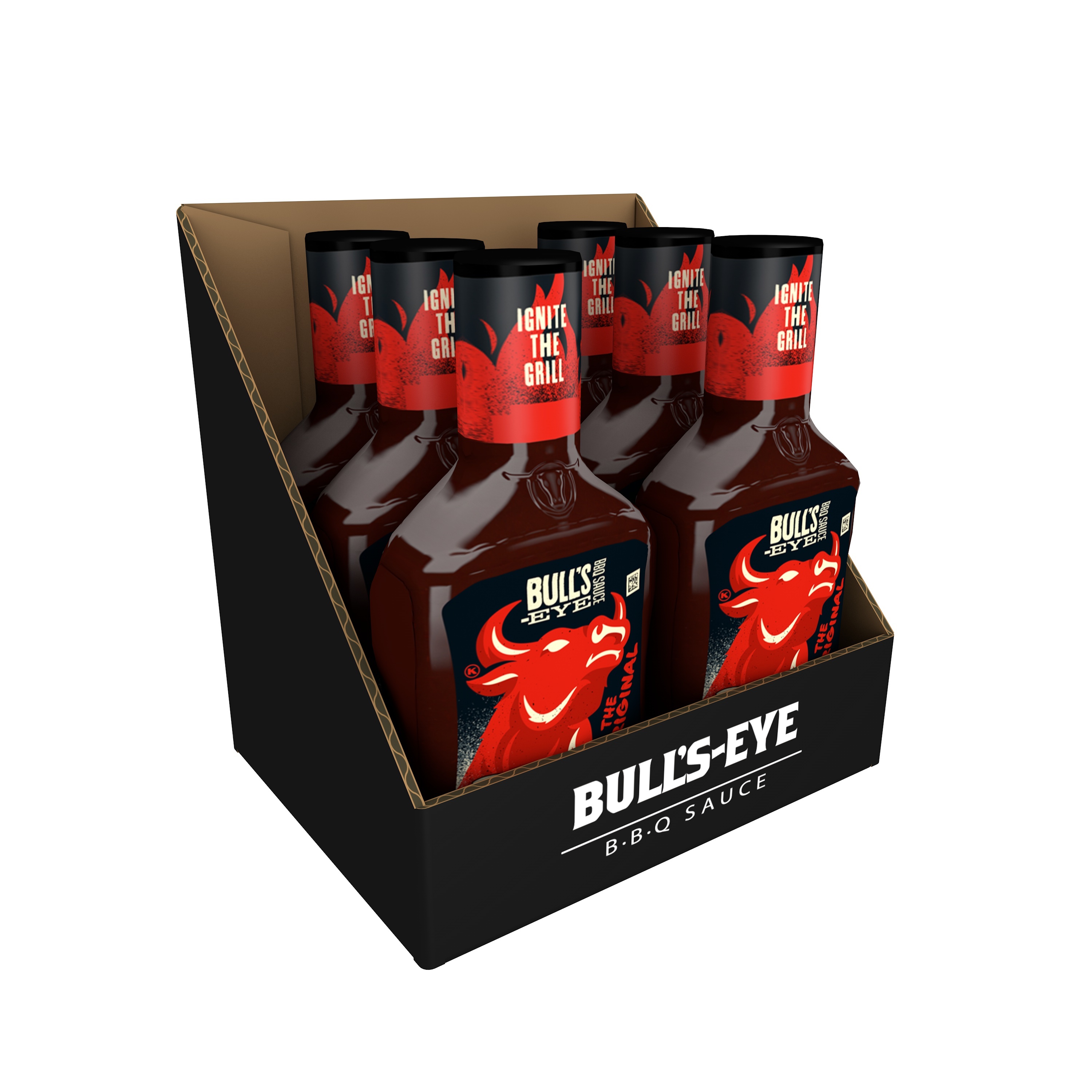 GTIN 00019582000667 Kraft Item Code (SKU) 00195820006600 Product Status Active Pack Level CASE Brand Name Bull's-Eye Business Unit Elevation Catalog Platform Taste Elevation Consumer Unit Size 18 Consumer Unit Size UOM OZ Packaging Type (Computed) Box Packaging Type Code BOX/CARTON Sub Units Per Item 6 Variant Original Global Product Classification Sauces Dipping/Condiments/Savoury Toppings/Savoury Spreads/Marinades (Shelf Stable) Global Product Classification Code 10000280 Computed Exports - Ingredients HIGH FRUCTOSE CORN SYRUP, TOMATO PUREE (WATER, TOMATO PASTE), VINEGAR, MOLASSES, MODIFIED FOOD STARCH, APPLE CIDER VINEGAR, CONTAINS LESS THAN 2% OF SALT, NATURAL HICKORY SMOKE FLAVOR, MUSTARD FLOUR, SPICE, HONEY, DRIED ONION, DRIED GARLIC, POTASSIUM SORBATE (TO PRESERVE FRESHNESS). Parent Reference 20019582000661 Child Reference 00019582411104 Customer Guarantee 120 Temperature Classification Ambient Prevailing Conditions Temperature Classification Code 01 Net Weight 6.75 Gross Weight 7.2 Weight UOM LB Height (in) 7.875 Length/Depth (in) 7.5 Width (in) 5.875 Case Cube 0.201 Child Relation EACH_00019582411104 Parent Relation PALLET_20019582000661 Cases per Tier 41 Tiers per Pallet 5 Cases per Pallet 205 Pallet Stack Limit 2 Product Title Bull's-Eye Original Barbecue BBQ Sauce, 6 ct. Case Product Description Bull's-Eye Barbecue Sauce is the original Western Barbecue Sauce with over 25 years of BBQ experience and is one of the six largest BBQ brands in the U.S. We are putting it in a 6ct case for easier placement on shelf.
