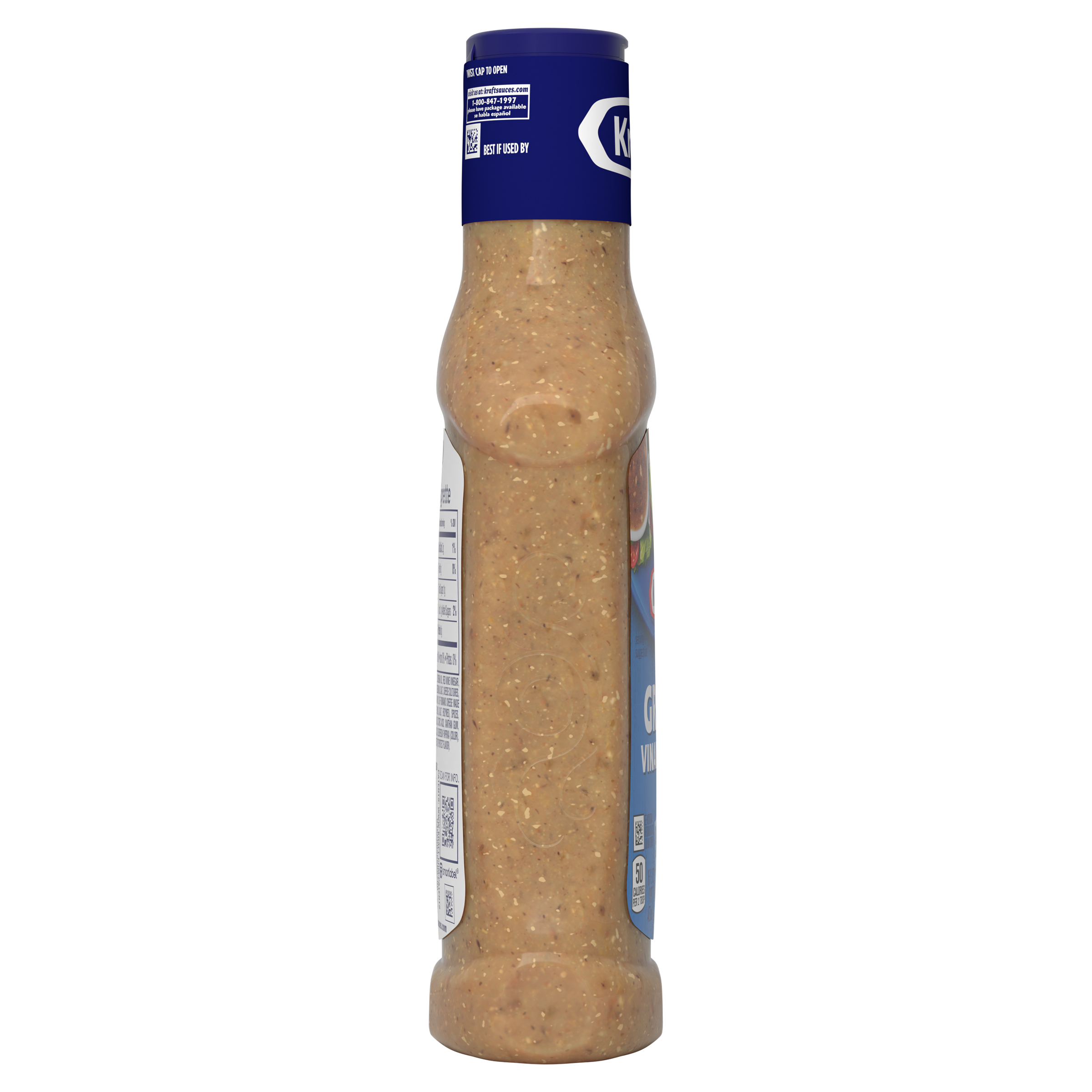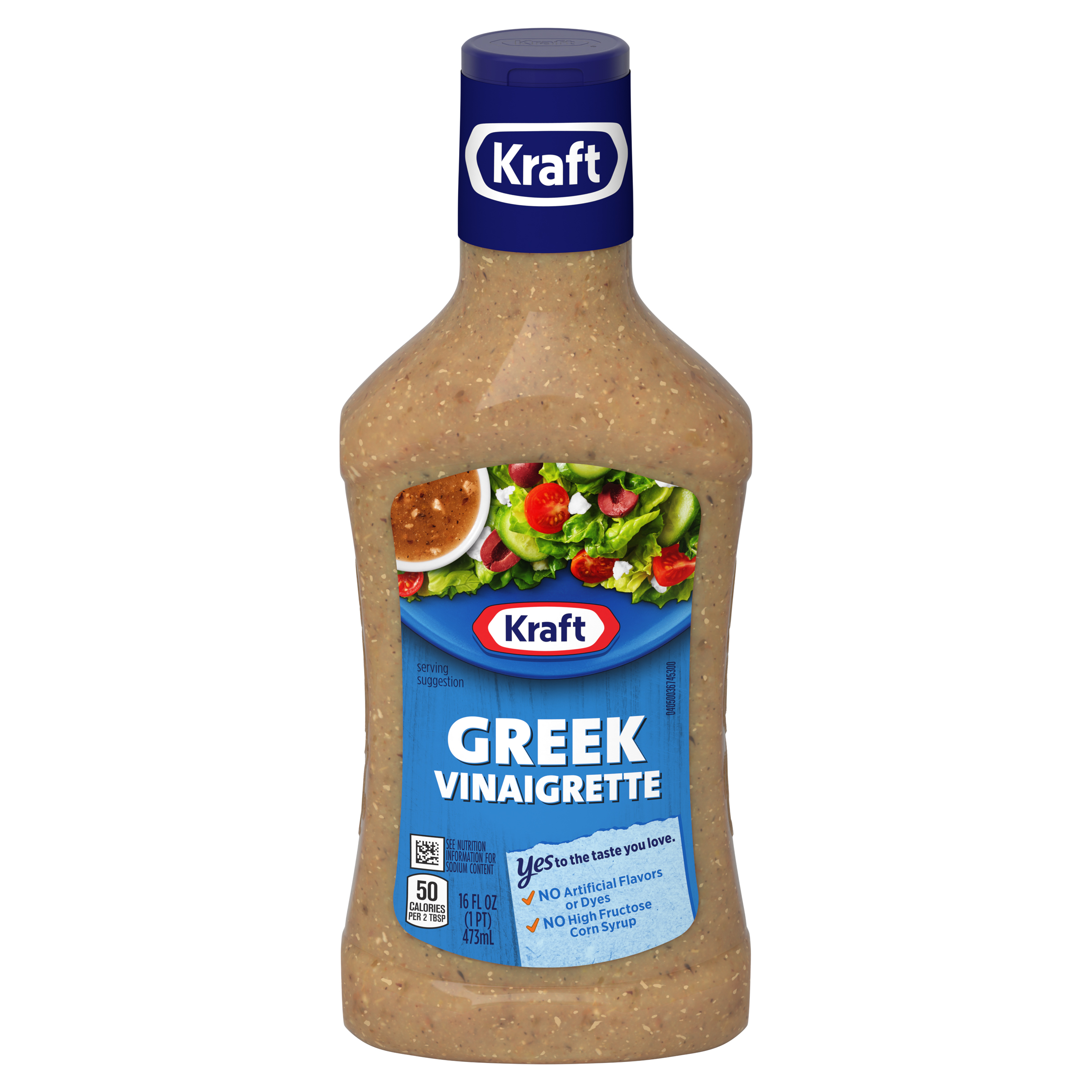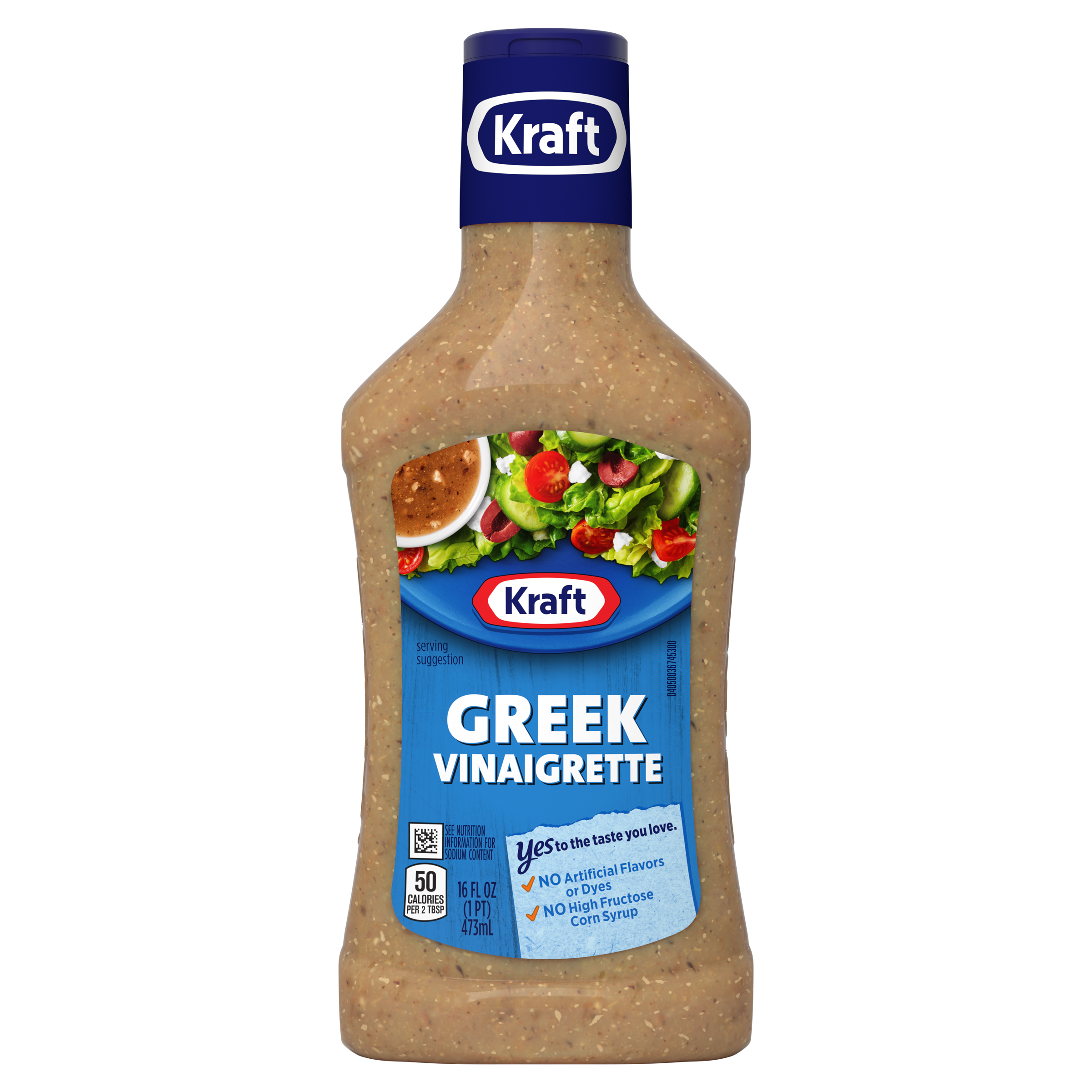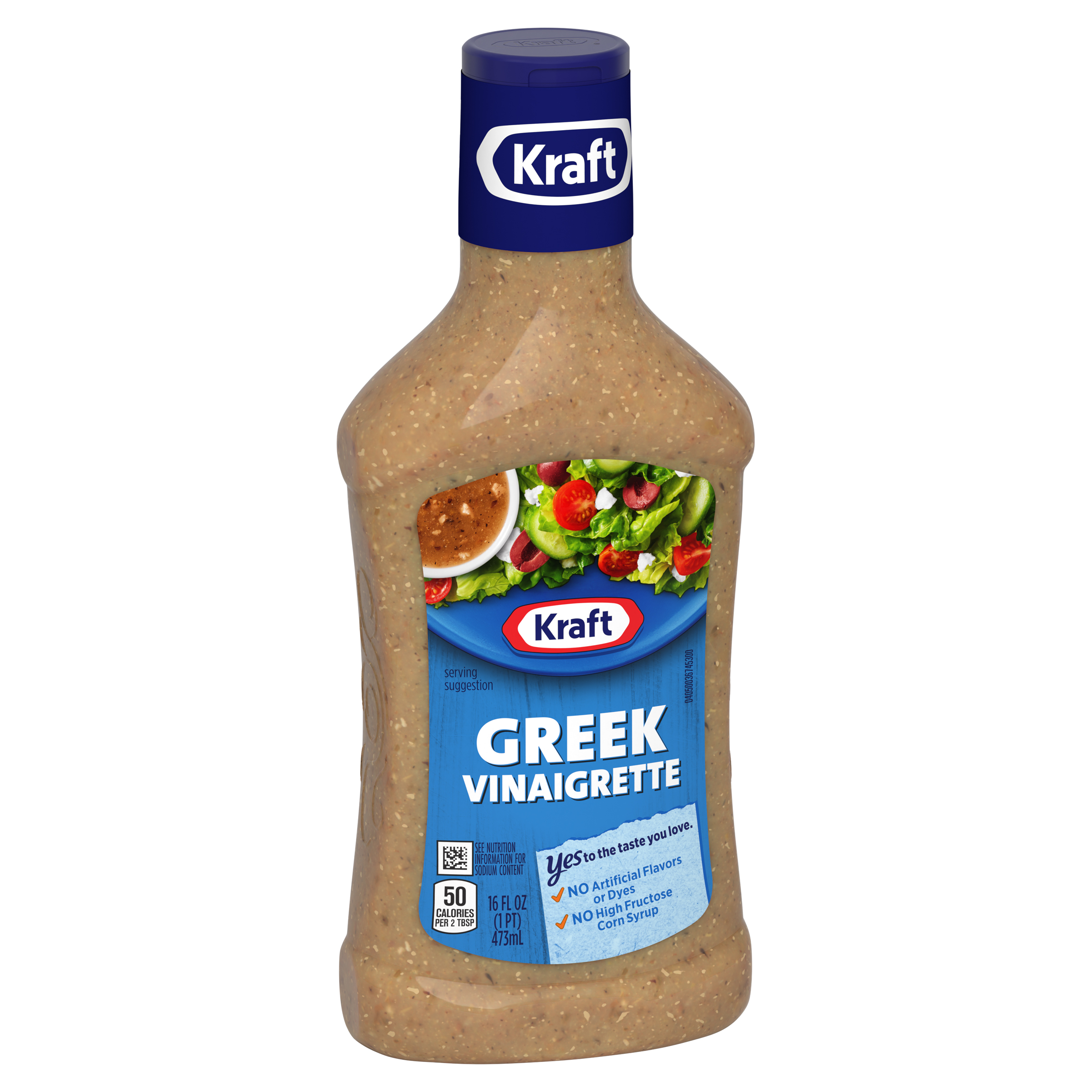 Product Description Kraft Greek Vinaigrette offers a delectable taste perfect for salads, marinades and more. Our Greek vinaigrette features quality ingredients such as red wine vinegar, spices and feta cheese for a bold flavor. Pre-mixed for convenient use, our Kraft vinaigrette has no artificial flavors or high-fructose corn syrup and no artificial dyes. Each serving of our vinaigrette is 50 calories. Use our vinaigrette to prepare a quick cucumber-tomato salad or drizzle it over as a marinade for roast chicken. Each 16 fluid ounce squeezable bottle comes with a convenient applicator top so you can add the perfect amount to all your favorite dishes.