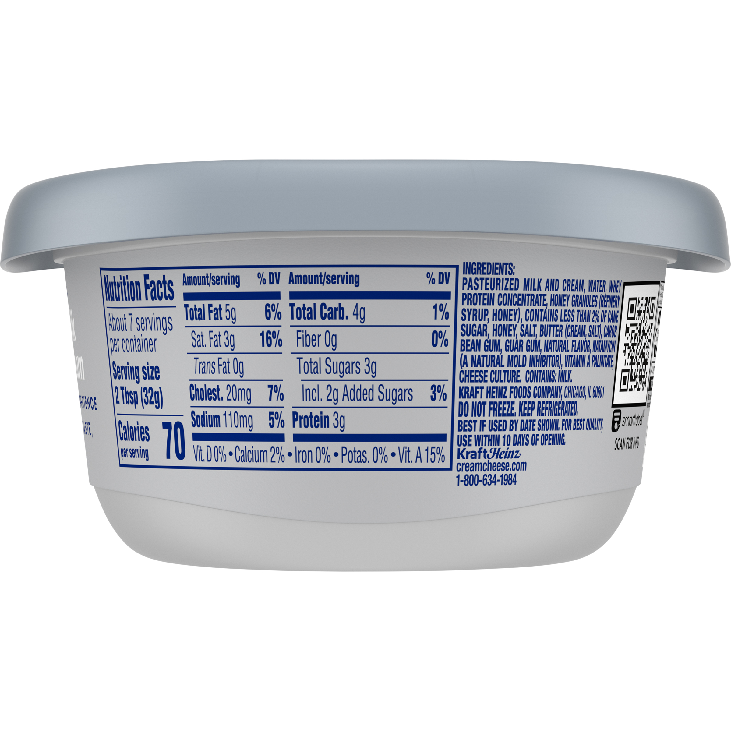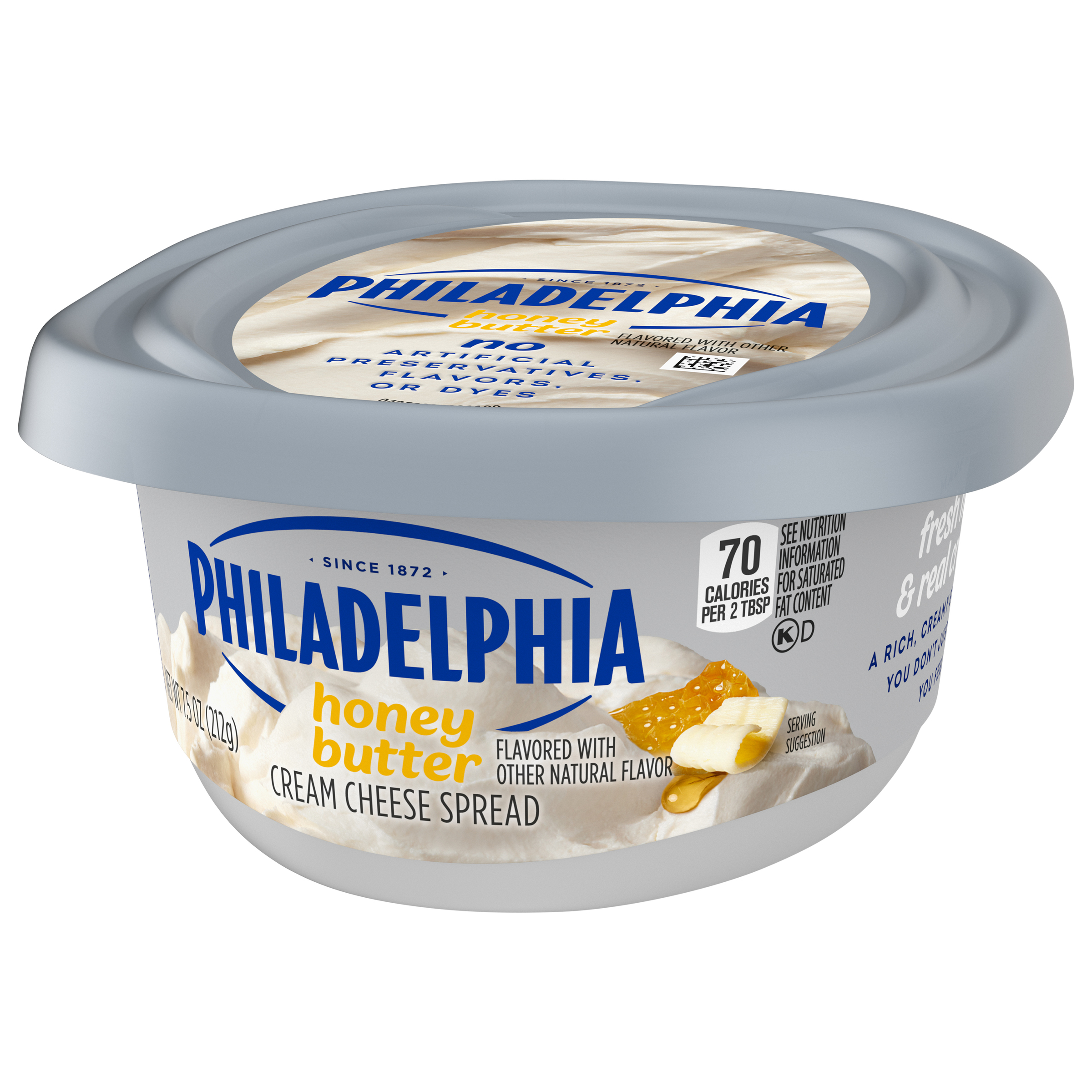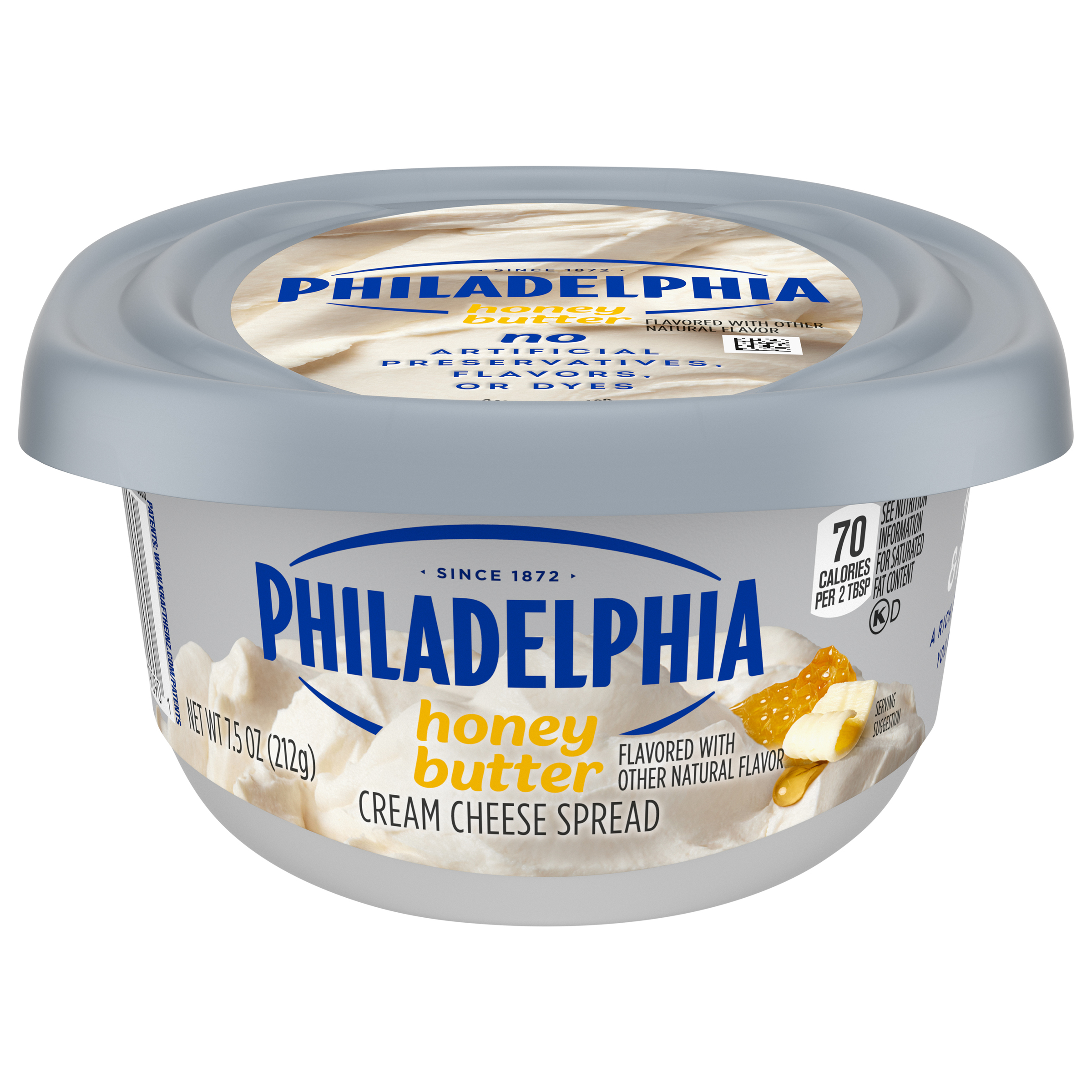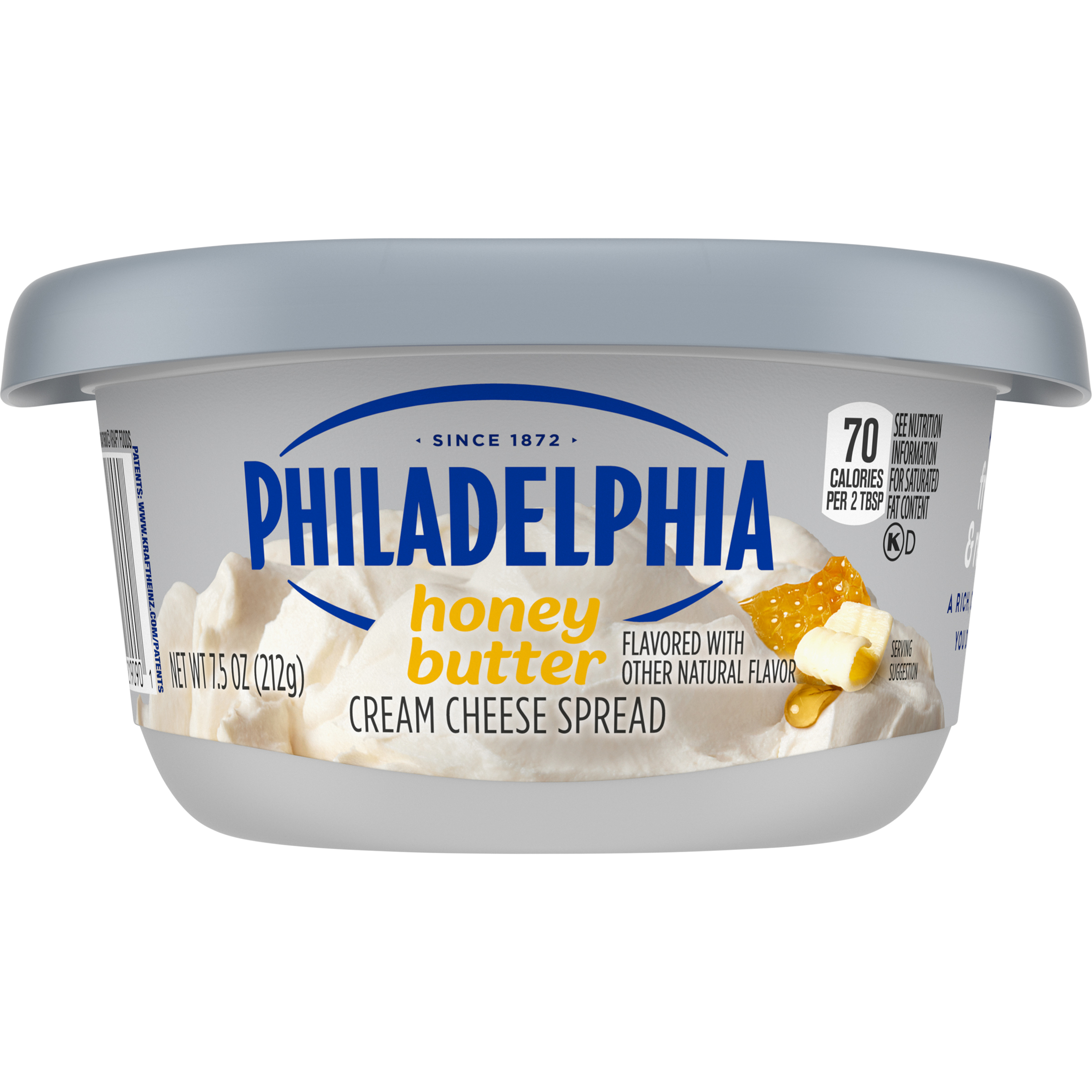 Product Description It's really Philly good. Philadelphia Honey Butter Flavored with Other Natural Flavor Cream Cheese Spread brings deliciously creamy texture and full flavor to your breakfast, snacks and recipes. Made with fresh milk, real cream, sweet honey and smooth butter, our flavored cream cheese spread is the perfect choice for adding to your morning bagel, topping warm rolls or crafting a decadent dessert. Looking for more ways to enjoy our cream cheese? The possibilities are endless. On the sweet side, our honey butter flavored with other natural flavor cream cheese spread is the perfect ingredient in desserts, frostings and creamy dips that everyone will love. Whether you're adding it to your favorite bagel, using it as a filling for stuffed French toast or topping desserts, our soft cream cheese spread does more than deliver — it elevates. Free from artificial preservatives, flavors and dyes, Philadelphia upholds a commitment to quality ingredients while giving you the consistency you expect. Packaged in a 7.5 oz tub, it's perfect for everyday use. Always have a tub on hand in the fridge so you're ready to whip up creamy creations. Keep refrigerated and do not freeze. For best quality, use within 10 days of opening. From classic spreads to creative twists, a tub of Philly cream cheese spread is a versatile staple. Add a creamy touch of magic with Philadelphia Cream Cheese.