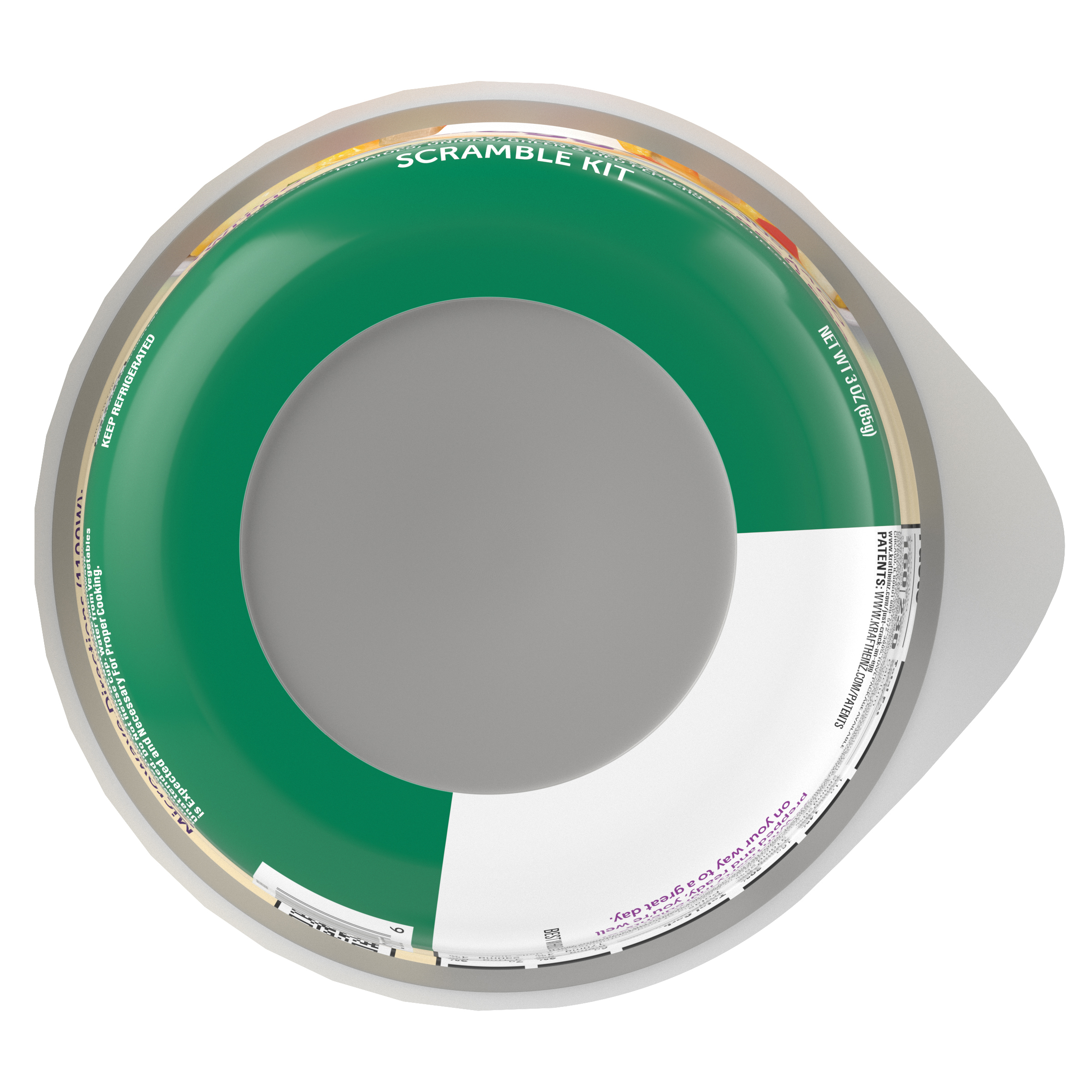 GTIN 00021000073276 Kraft Item Code (SKU) 00210000732770 Product Status Active Pack Level EACH Brand Name Just Crack An Egg Business Unit Meat Cheese Coffee & Snacks Catalog Platform Easy Ready Meals Product Category Just Crack an Egg Consumer Unit Size 3 Consumer Unit Size UOM OZ Packaging Type (Computed) Cup Packaging Type Code CUP Packaging Type Code Override (Manual) CUP Sub Units Per Item 1 Variant Veggie Lovers Global Product Classification Code 10006754 Computed Exports - Ingredients CHEDDAR CHEESE ([PASTEURIZED MILK, CHEESE CULTURE, SALT, ENZYMES, ANNATTO (COLOR)], MODIFIED FOOD STARCH ADDED TO PREVENT CAKING, NATAMYCIN [A NATURAL MOLD INHIBITOR]), LOW-MOISTURE PART-SKIM MOZZARELLA CHEESE ([PASTEURIZED PART-SKIM MILK, CHEESE CULTURE, SALT, ENZYMES], MODIFIED FOOD STARCH ADDED TO PREVENT CAKING, NATAMYCIN [A NATURAL MOLD INHIBITOR]), POTATOES, ONIONS, GREEN PEPPERS, RED PEPPERS, CITRIC ACID. Parent Reference 10021000073273 Quality Statement Best When Used By Storage Instructions Keep Refrigerated Customer Guarantee 30 Temperature Classification Code 02 Net Weight 0.188 Gross Weight 0.225 Weight UOM LB Height (in) 2.81 Length/Depth (in) 4.05 Width (in) 4.05 Case Cube 0.027 Parent Relation CASE_10021000073273 Parent Kraft Item Code (SKU) 00210000732700 Product Title Just Crack an Egg Veggie Lovers Scramble Kit, 3 oz Cup eCommerce Product Name (Generic Name) Veggie Lovers Scramble Kit Product Benefits (Includes Seasonal + Formatting) - One 3 oz cup of Just Crack an Egg Veggie Lovers Scramble Kit with cheddar cheese, low-moisture part-skim mozzarella cheese, potatoes, onions, green and red peppers