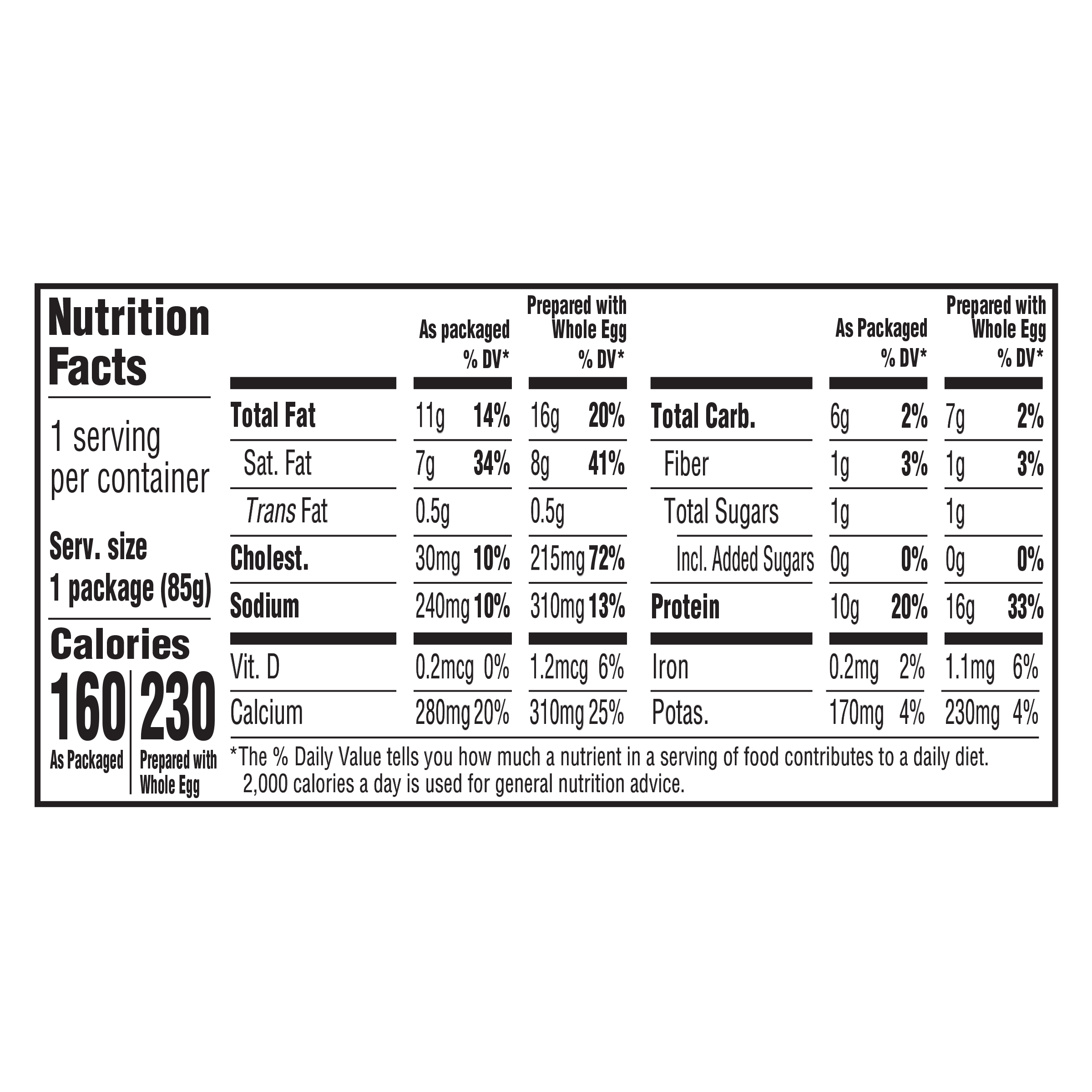 - Crack a fresh egg into the cup, add the contents of the pouches to the cup, stir until blended and microwave according to the instructions