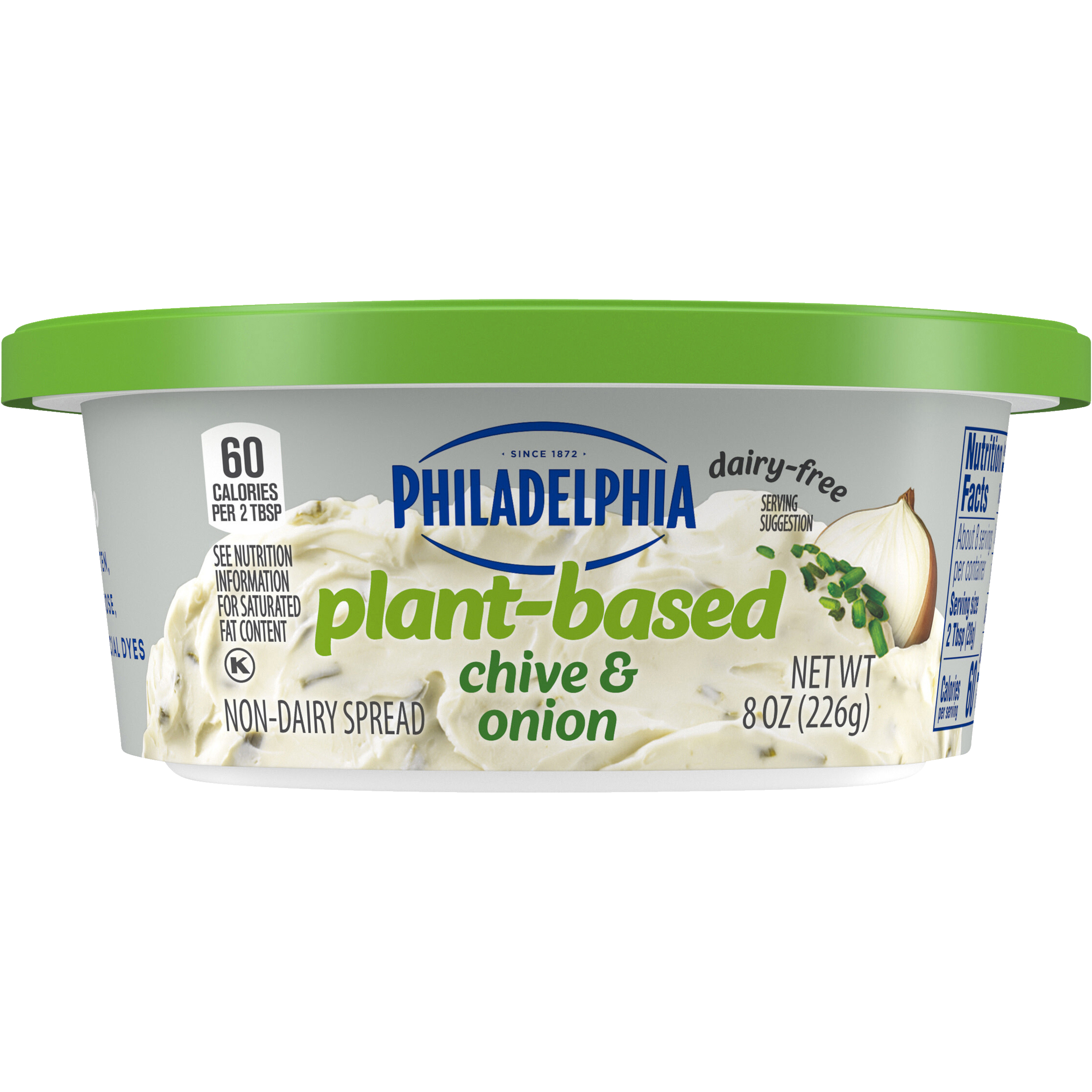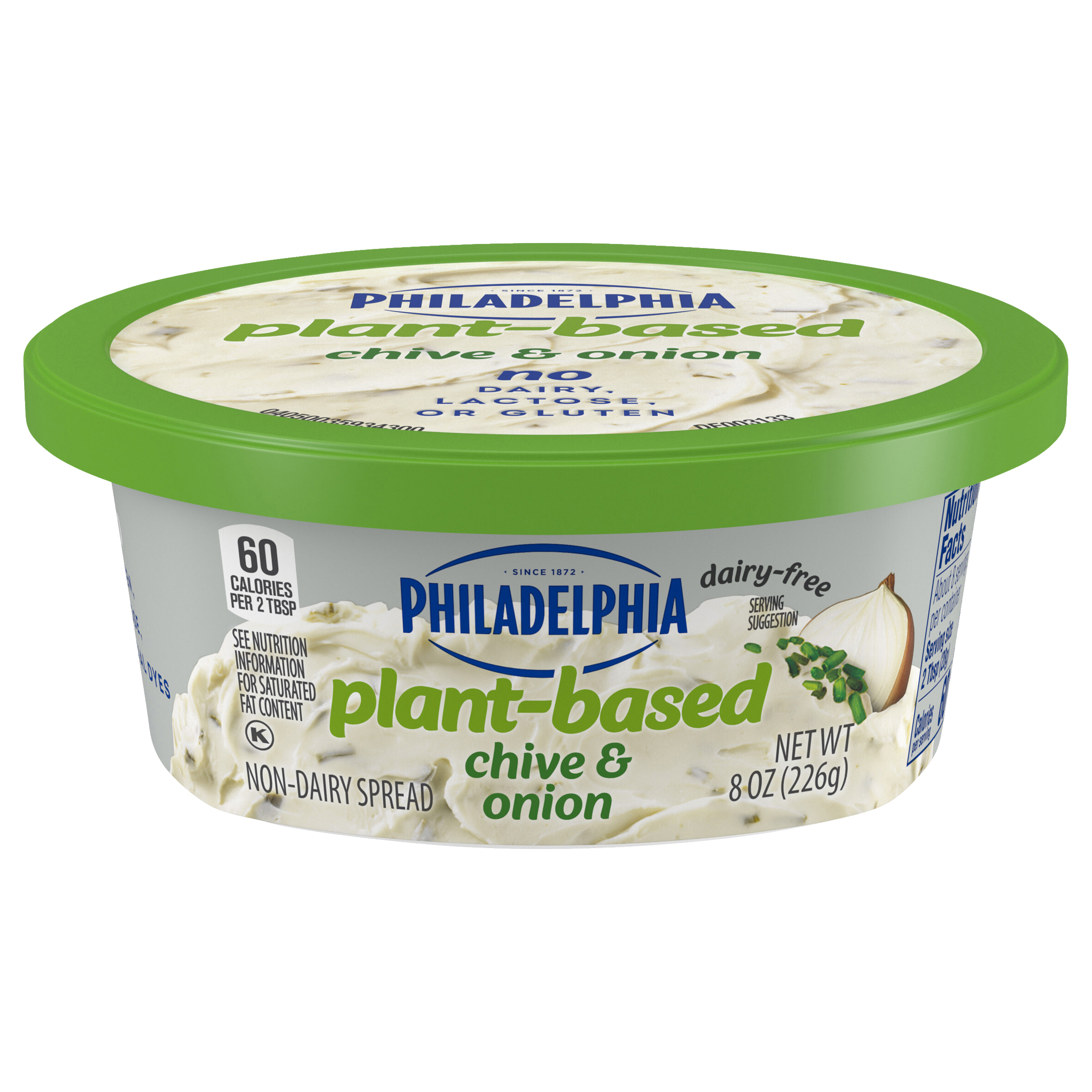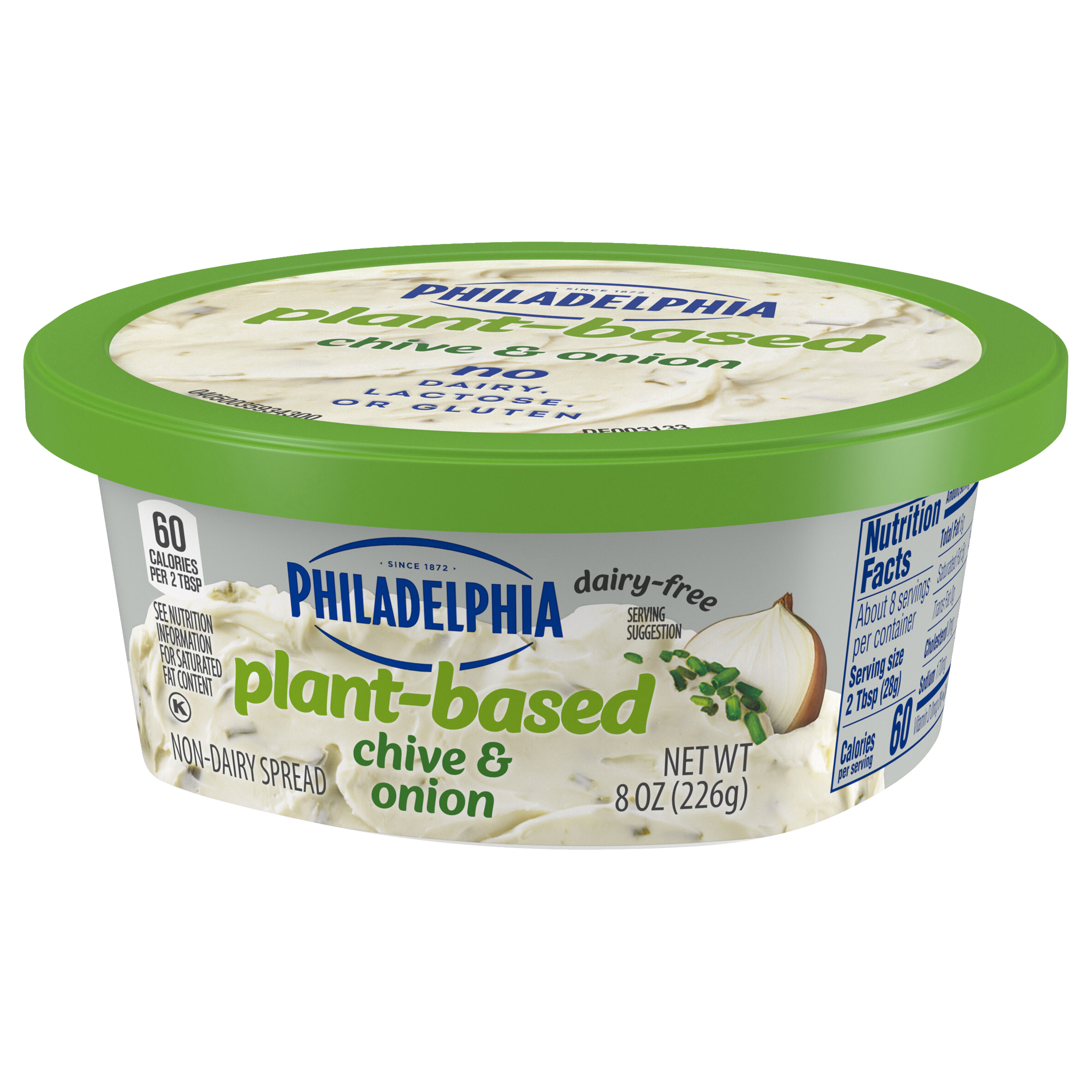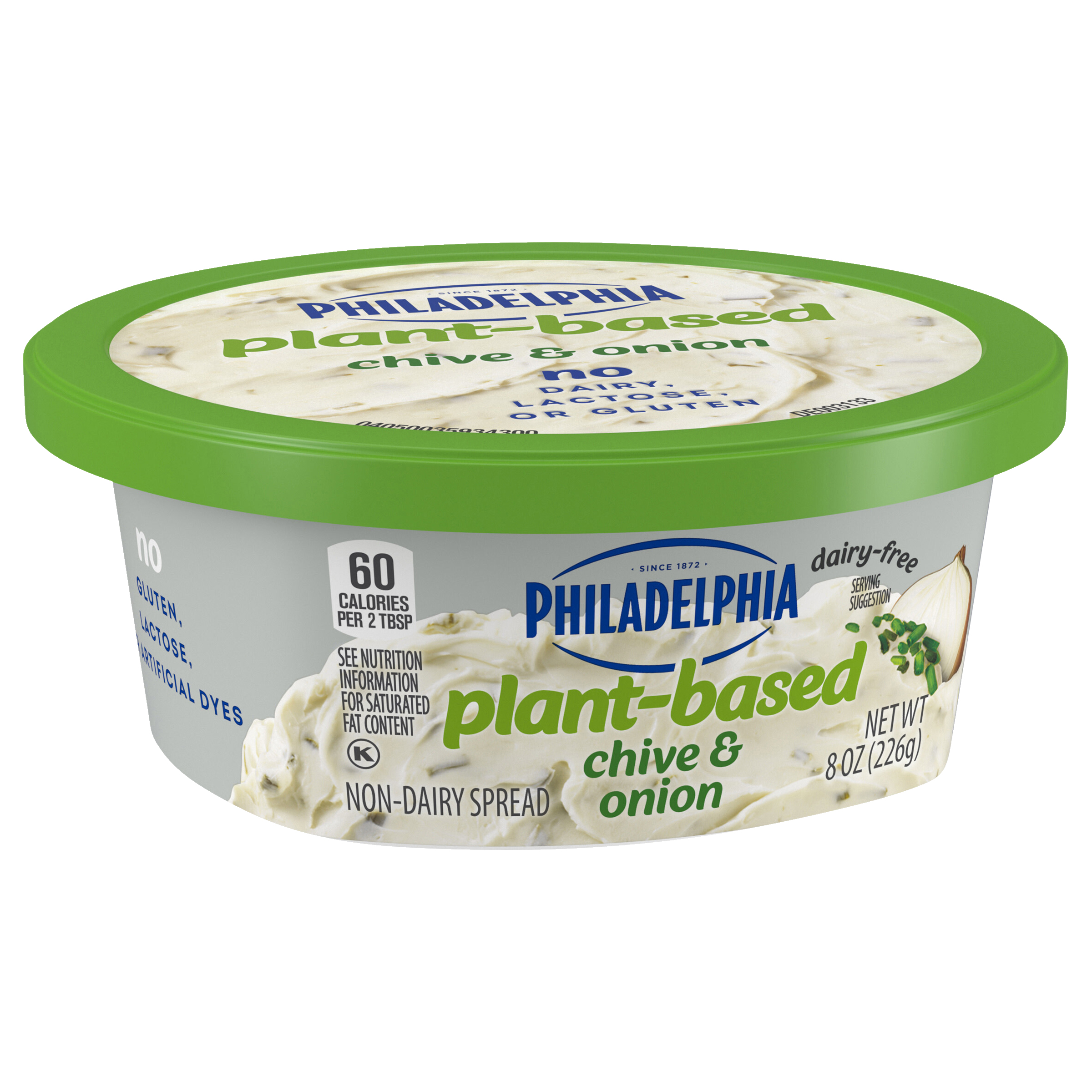 Product Description Dive into immersive pleasure. Philadelphia Plant-Based Chive & Onion Non-Dairy Spread is dairy-free, lactose-free and gluten-free while keeping an extra creamy, multi-dimensional taste you can add to any meal. We leave out artificial dyes at Philly. Our plant-based spread is easy to use, making it the perfect choice for adding to your morning bagel, crackers, toast or a vegetable wrap. Keep our 8 oz resealable container of spread refrigerated. With Philadelphia, enjoy a rich, creamy experience with every bite. You don't just taste it. You feel it.