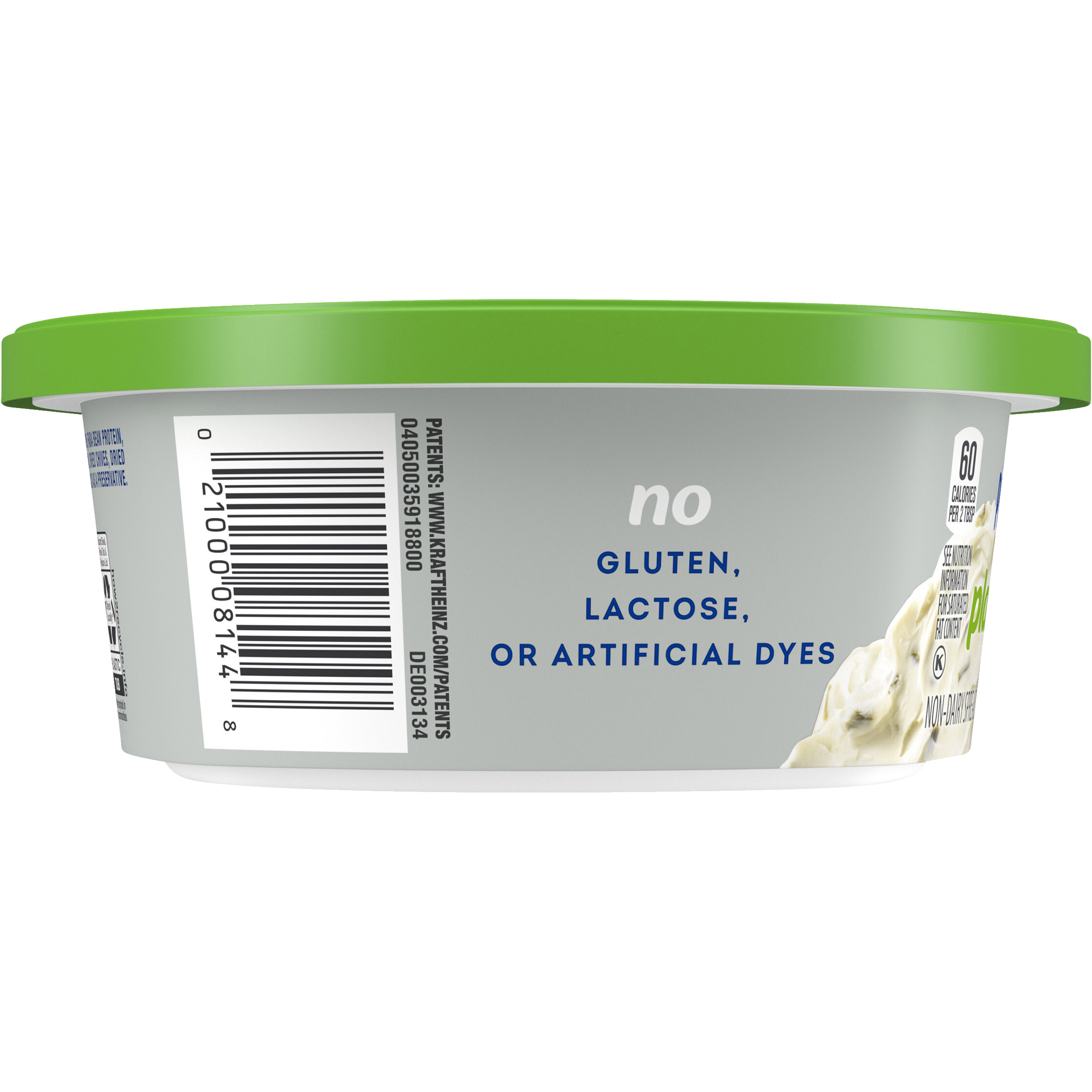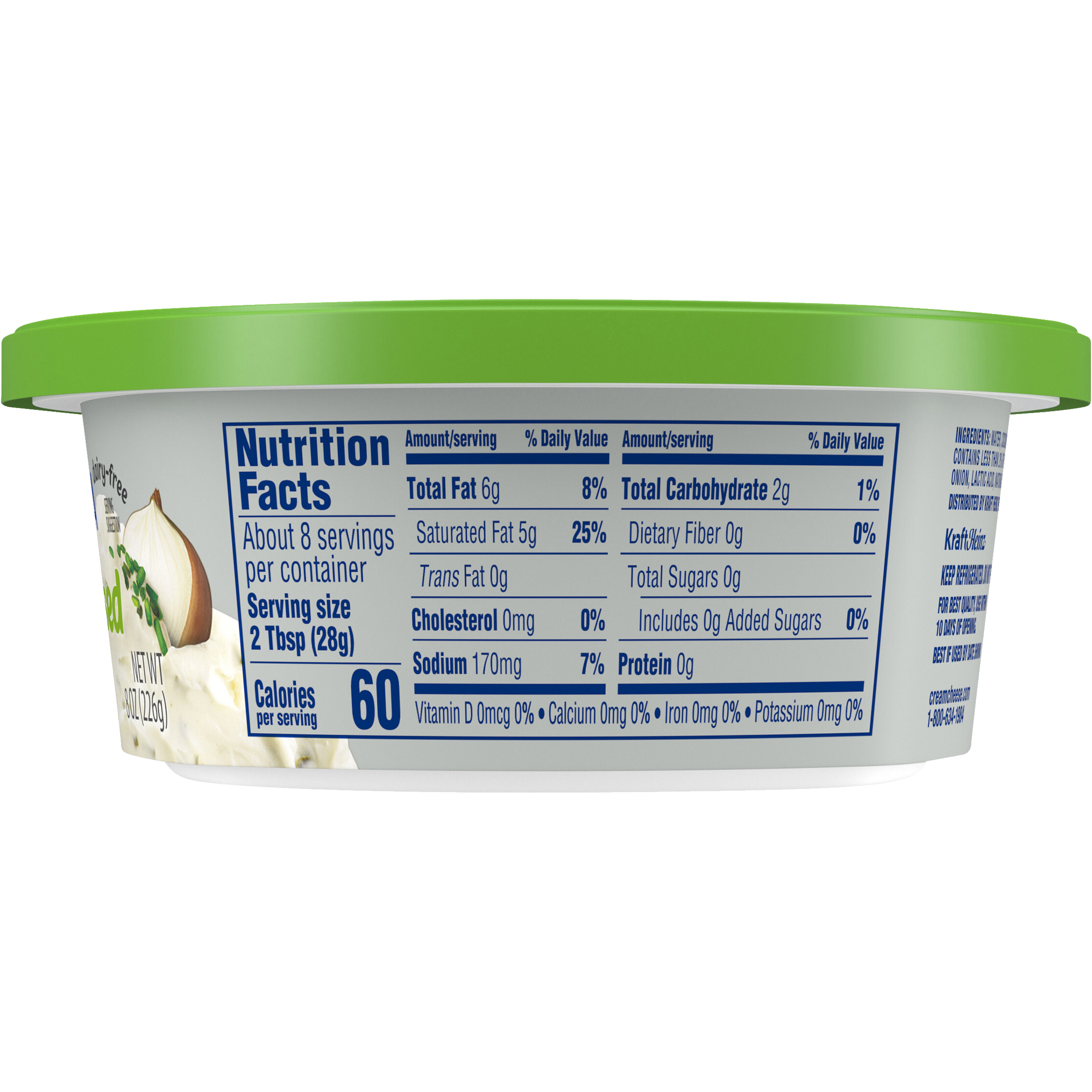 - Our chive and onion flavored plant-based spread contains no lactose, dairy or milk