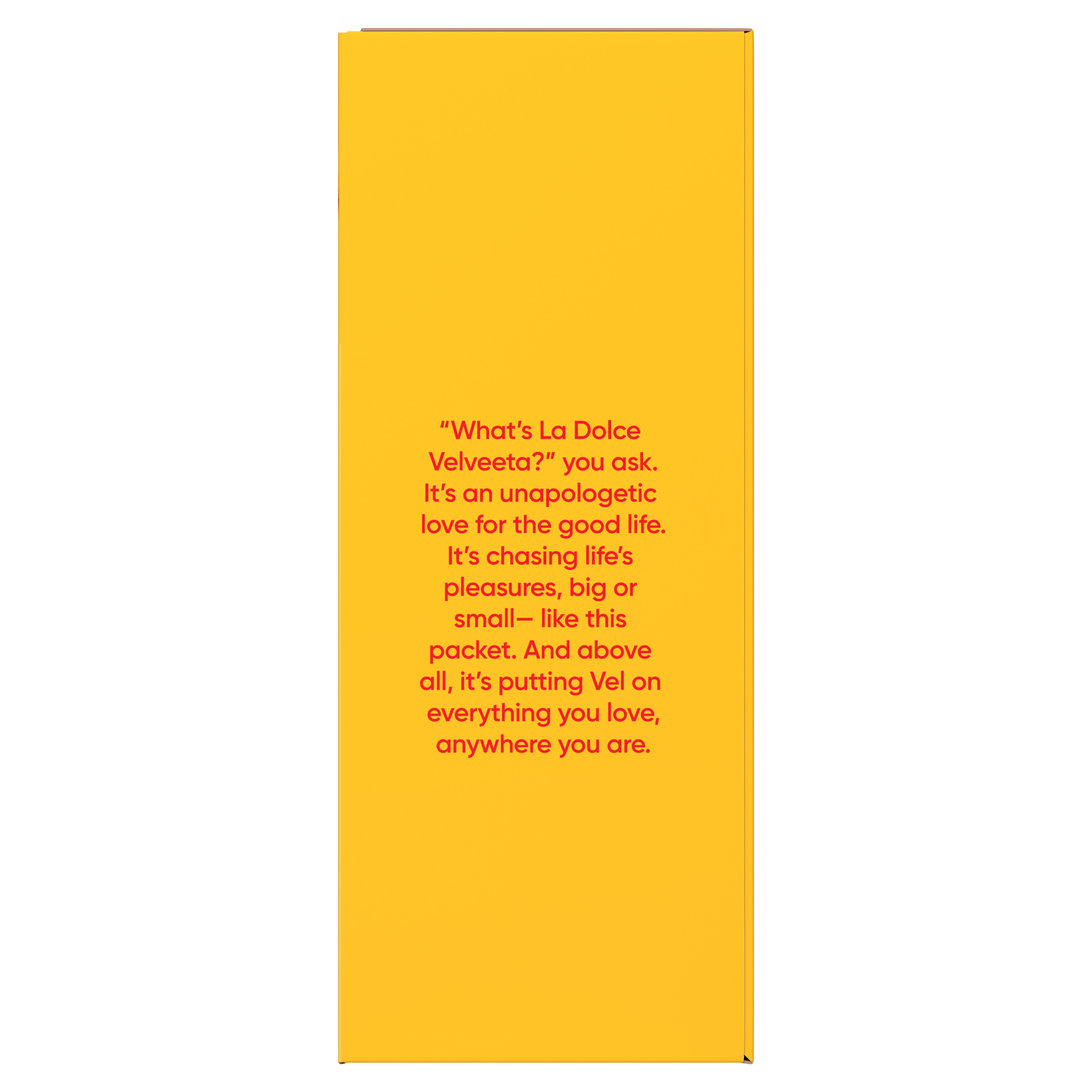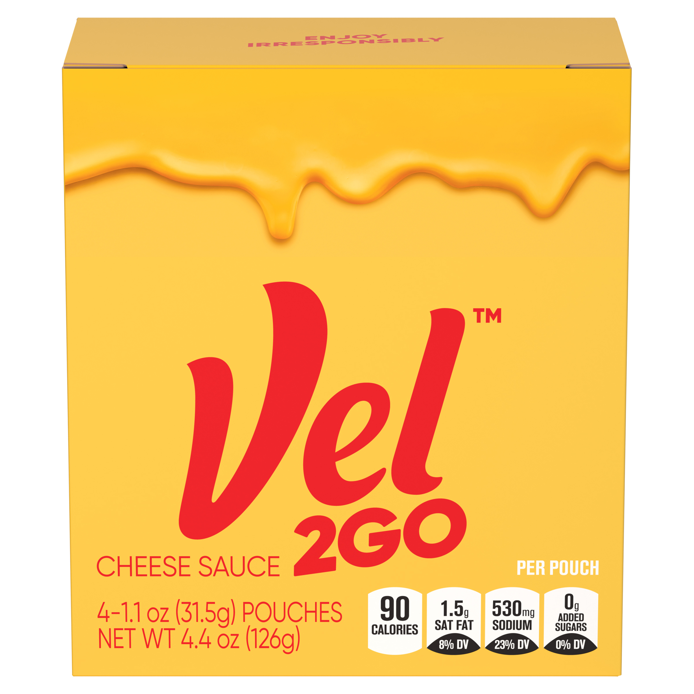 Product Description Live La Dolce Velveeta and indulge in cheesy pleasure with our limited-edition Velveeta Vel2Go Cheese Sauce Packets. Cheese lovers, this is the indulgence you've been waiting for. Now you can enjoy the deliciousness of Velveeta cheese on everything and anything—anytime and anywhere. Our perfectly portioned, ready-to-squeeze condiment pouches bring the rich, creamy Velveeta taste you crave to every moment, turning the everyday into something outrageously satisfying. Whether you're elevating a midday snack, adding indulgence to a stadium hot dog or enhancing drive-thru fries, Vel2Go makes living La Dolce Velveeta as effortless as it is delicious. Pair our cheesy goodness with crispy nacho chips and juicy burgers, drizzle over crunchy veggies and ramen, or savor it with soft pretzels and chicken nuggets—the possibilities are endless, and the pleasure knows no bounds. With Vel2Go, you can go all in on cheesy pleasure with every bite. Slip a convenient pouch into your bag and satisfy your cheesy cravings on the go. Unwrap, tear open and squeeze on everything to transform your food into a creamy, cheesy indulgence. Contains 3 cartons, each with 4 pouches, giving you 12 chances to enjoy our cheese dip irresponsibly anytime and anywhere. Just pure, decadent enjoyment. Pour on the cheese and embrace the outrageous pleasure. That’s La Dolce Velveeta.